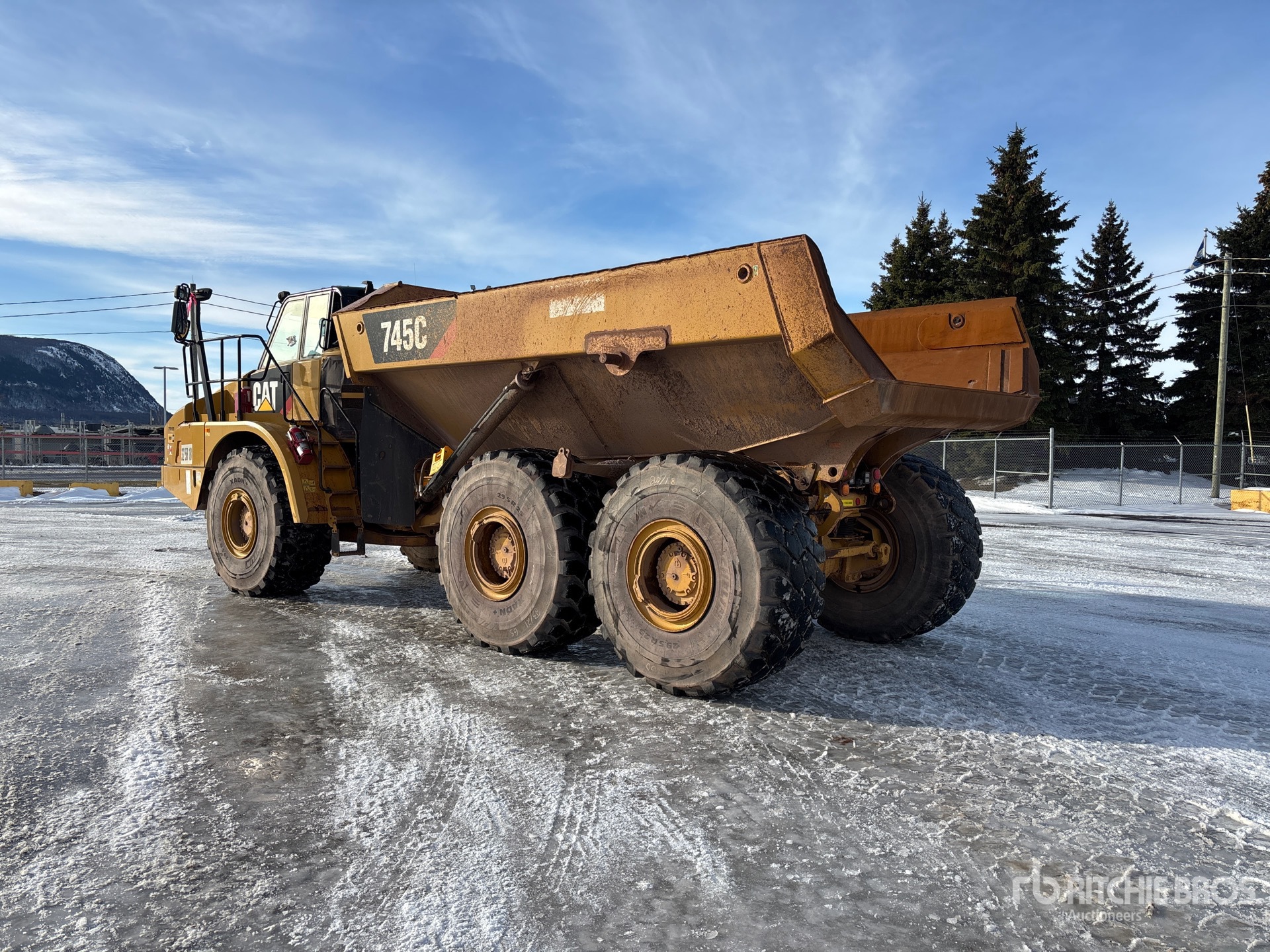 Maten worden slechts bij benadering gegeven. De werkelijke afmetingen onder belasting kunnen variëren afhankelijk van de hoogte van de vrachtwagen/aanhanger en de configuratie/positie van de geladen machine. Het is de verantwoordelijkheid van de koper om alle ladingen te meten voordat deze onze veilinglocatie verlaten, om te garanderen dat de lading veilig is voor transport. Alle maten moeten door de koper worden gecontroleerd. Vertrouw niet op deze maten voor transportdoeleinden.