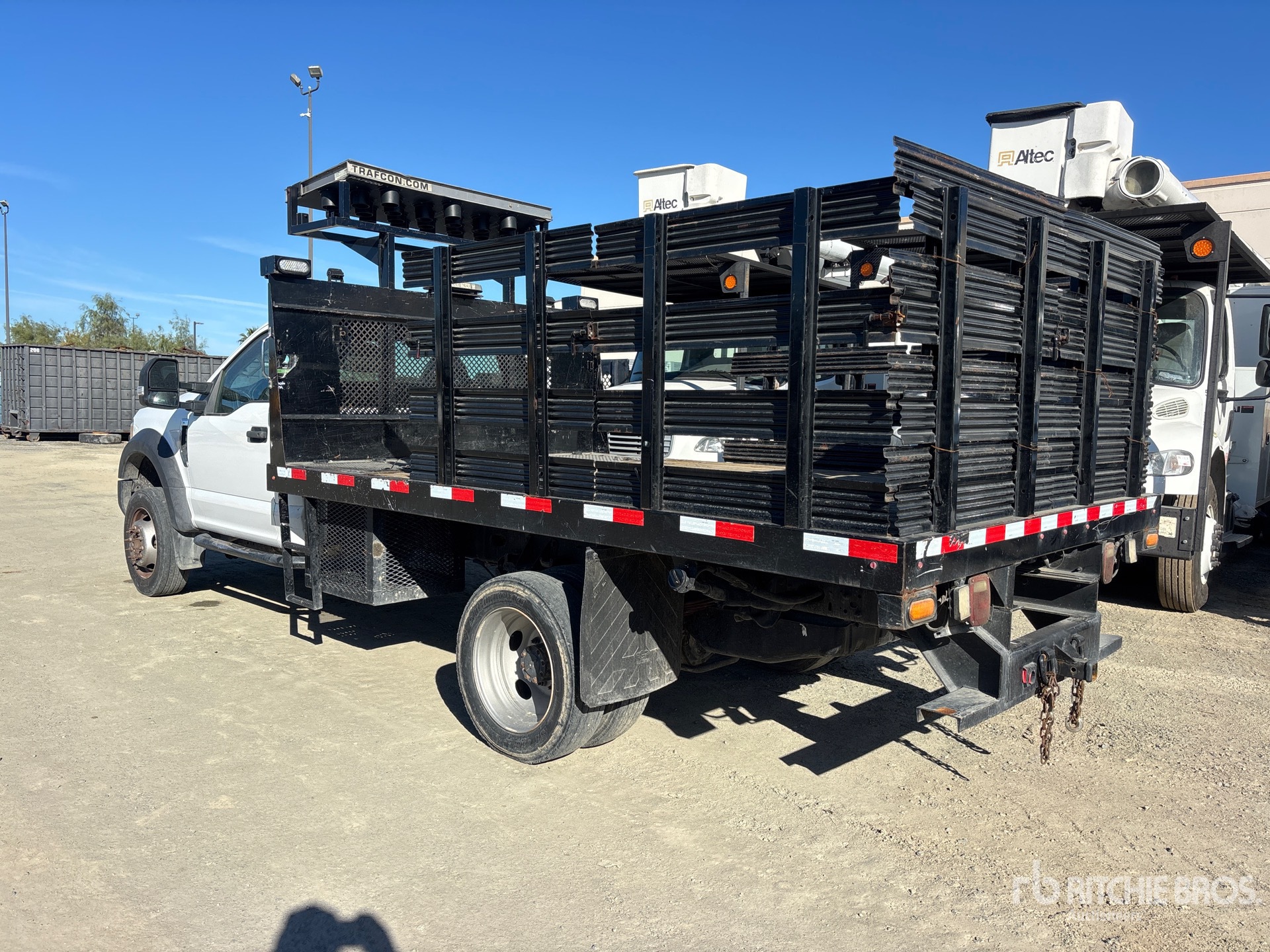 Maten worden slechts bij benadering gegeven. De werkelijke afmetingen onder belasting kunnen variëren afhankelijk van de hoogte van de vrachtwagen/aanhanger en de configuratie/positie van de geladen machine. Het is de verantwoordelijkheid van de koper om alle ladingen te meten voordat deze onze veilinglocatie verlaten, om te garanderen dat de lading veilig is voor transport. Alle maten moeten door de koper worden gecontroleerd. Vertrouw niet op deze maten voor transportdoeleinden.