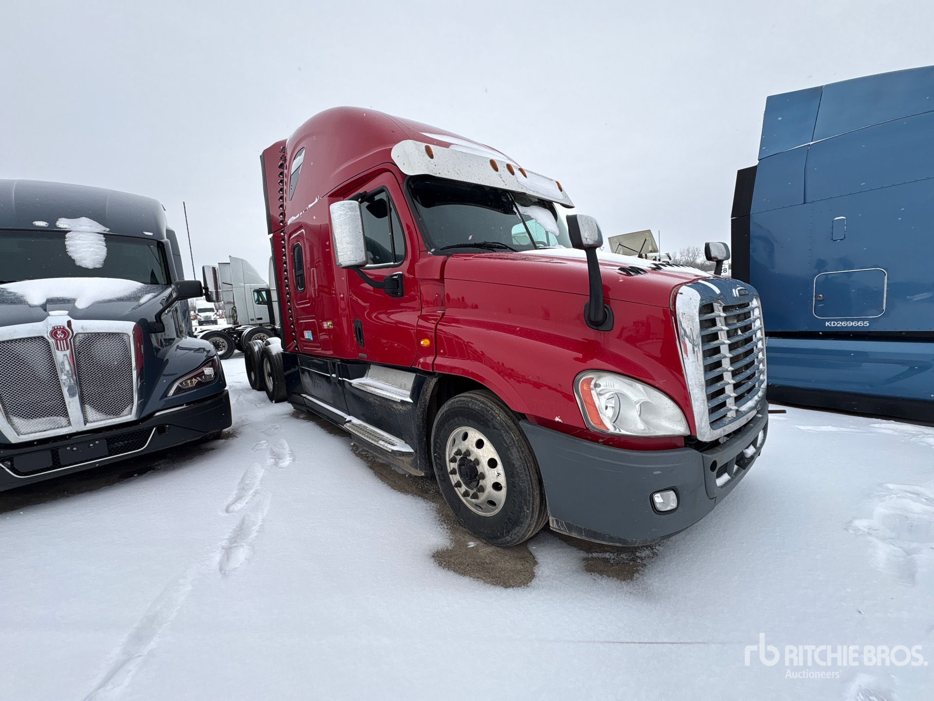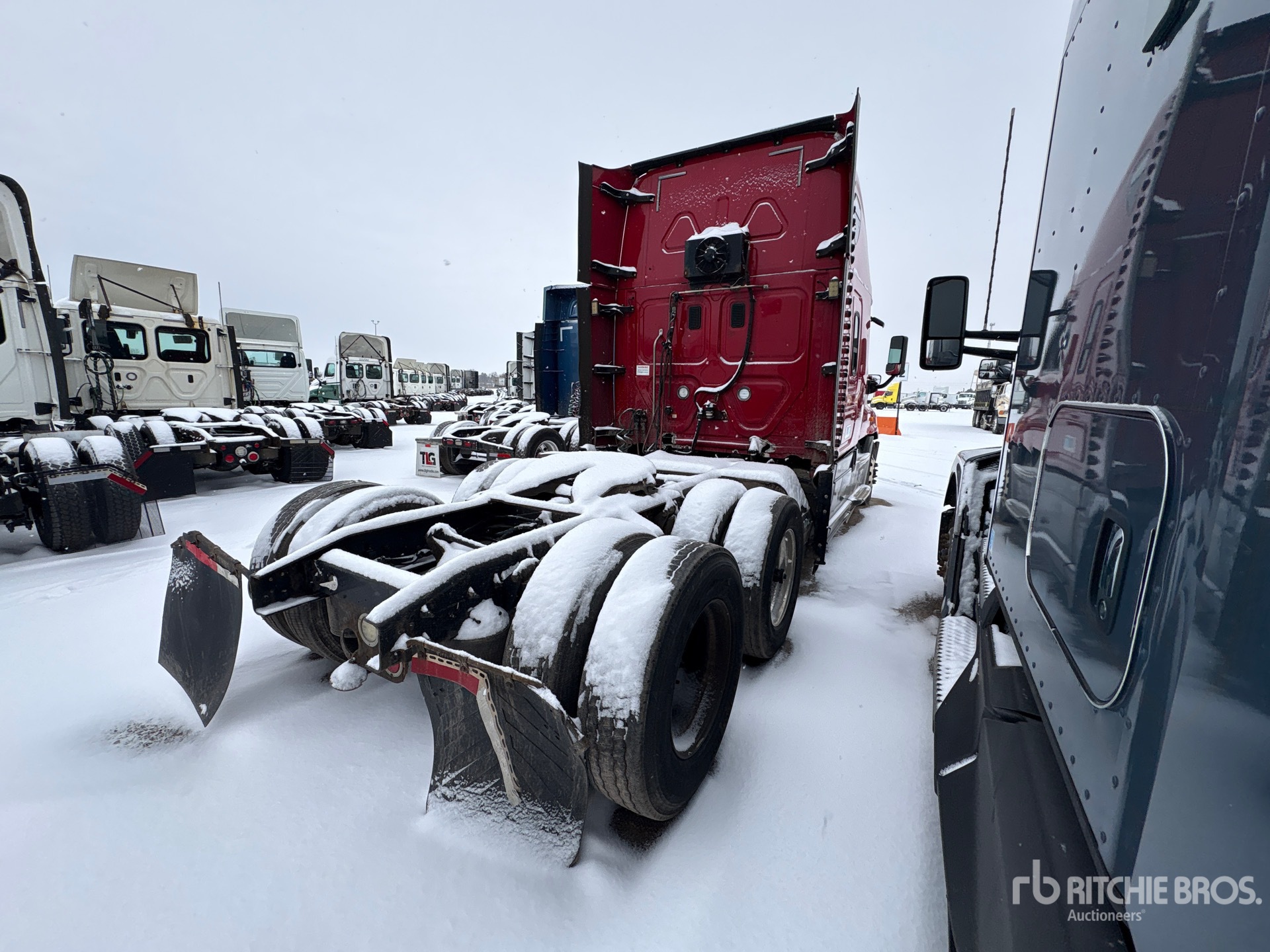 Located in Lane 24 Spot 18, Detroit DD15 455 hp Engine, 26043 Engine hrs, Detroit DT12-DA-1750 12-Speed Automated Transmission, 13000 lb Front Axle, 40000 lb Rears, 53000 lb GVWR, 58 in High Rise Sleeper Cab, Bunk Beds, Auxiliary Power Unit, 234 in Wheelbase, Air Suspension, Aluminum Wheels, 295/75R22.5, Air Sliding 5th Wheel, Dual Fuel Tanks