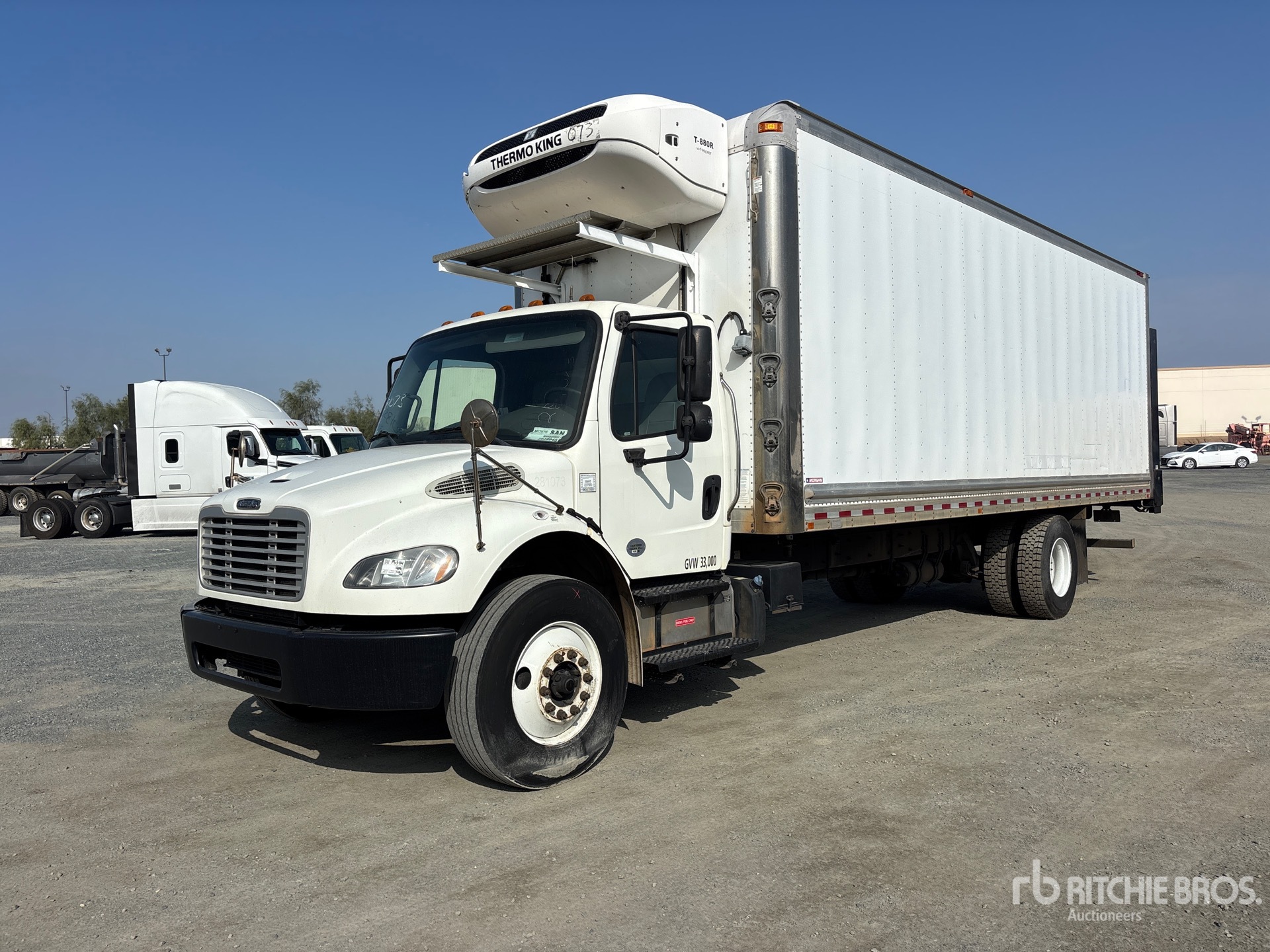 Cummins ISB 6 Cylinder 6.7 L Diesel Engine, 2016 US EPA Label, Requires Diesel Exhaust Fluid, 10498 Engine hrs, Exhaust Brake, Automatic Transmission, 12000 lb Front Axle, 21000 lb Rears, 33000 lb GVWR, Air Ride Cab, 11R22.5 Front Tires, 11R22.5 Rear Tires, Airliner Air Ride Suspension, 271 in Wheelbase, Thermo King T-880R Reefer Unit, 29301 Reefer Engine Hours:, Morgan 26 ft x 102 in Wide x 102 in High Body, Curbside Door, Liftgate, Professionally-maintained-fleet-vehicle-pag