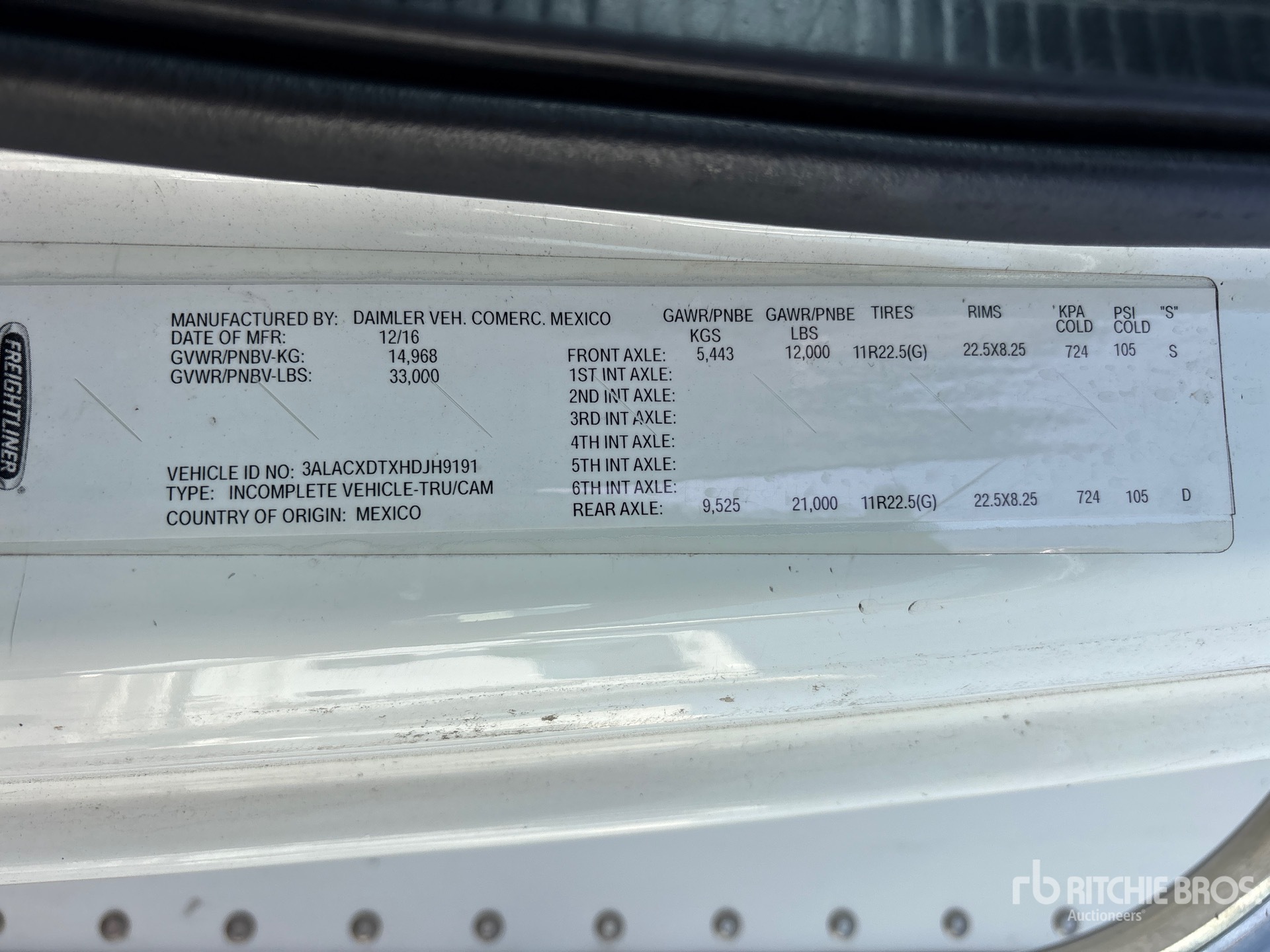 Materieel wordt niet getest onder belasting of gebruikt in alle beschikbare versnellingen. Wij geven geen verklaring of garantie dat het materieel volgens de specificaties van de fabrikant werkt. Er is geen inspectie uitgevoerd aan enig ander functionaliteitsaspect dan uitdrukkelijk in dit document vermeld. Er zijn alleen selecte foto's beschikbaar voor afzonderlijke onderdelen van het onderstel, en deze zijn mogelijk niet representatief voor de staat van het gehele onderstel.