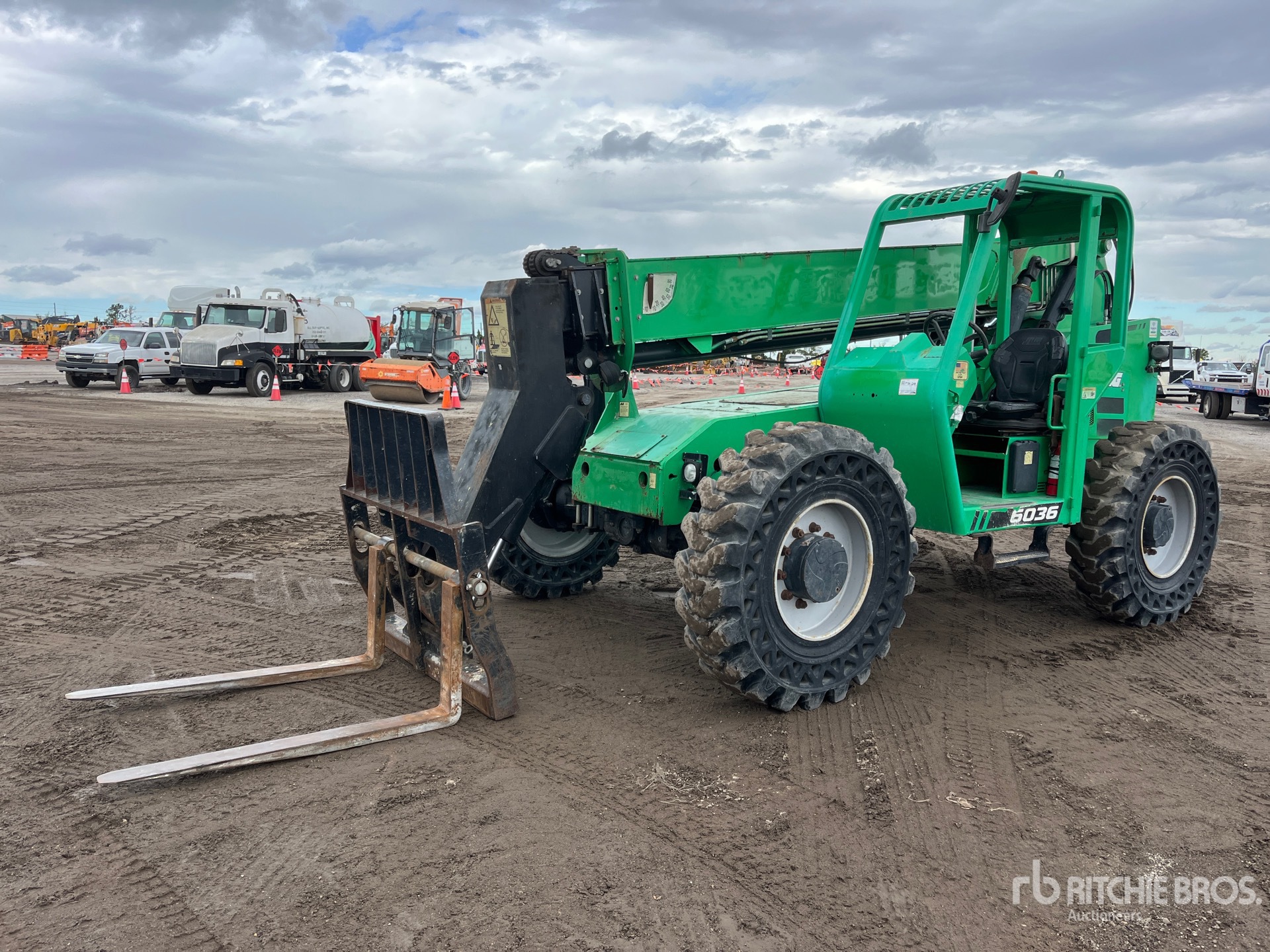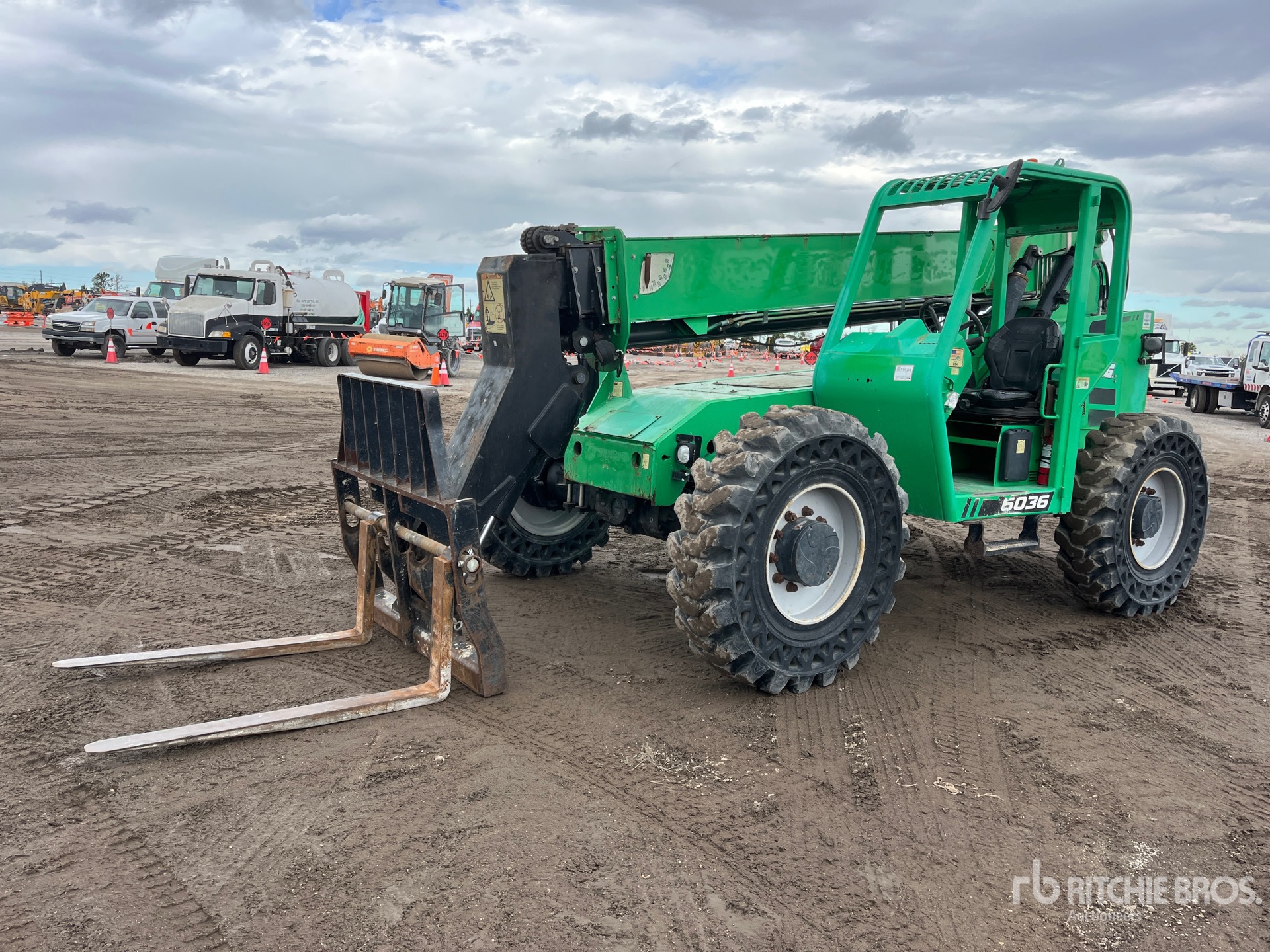 Maten worden slechts bij benadering gegeven. De werkelijke afmetingen onder belasting kunnen variëren afhankelijk van de hoogte van de vrachtwagen/aanhanger en de configuratie/positie van de geladen machine. Het is de verantwoordelijkheid van de koper om alle ladingen te meten voordat deze onze veilinglocatie verlaten, om te garanderen dat de lading veilig is voor transport. Alle maten moeten door de koper worden gecontroleerd. Vertrouw niet op deze maten voor transportdoeleinden.