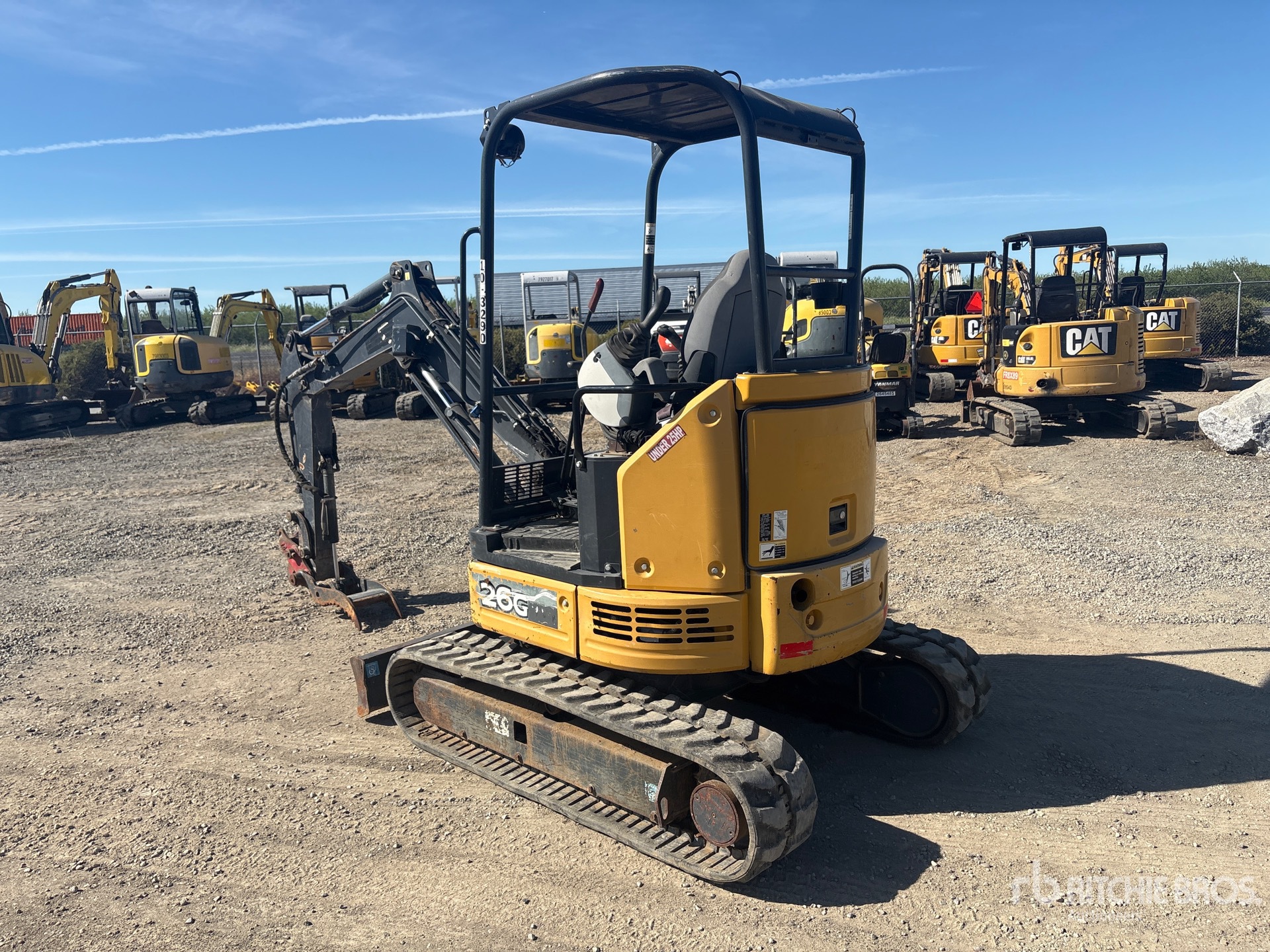 Swing Boom, 4 ft Stick, Backfill Blade, 12 in Rubber Tracks, Manual Quick Coupler, Hydraulic Thumb