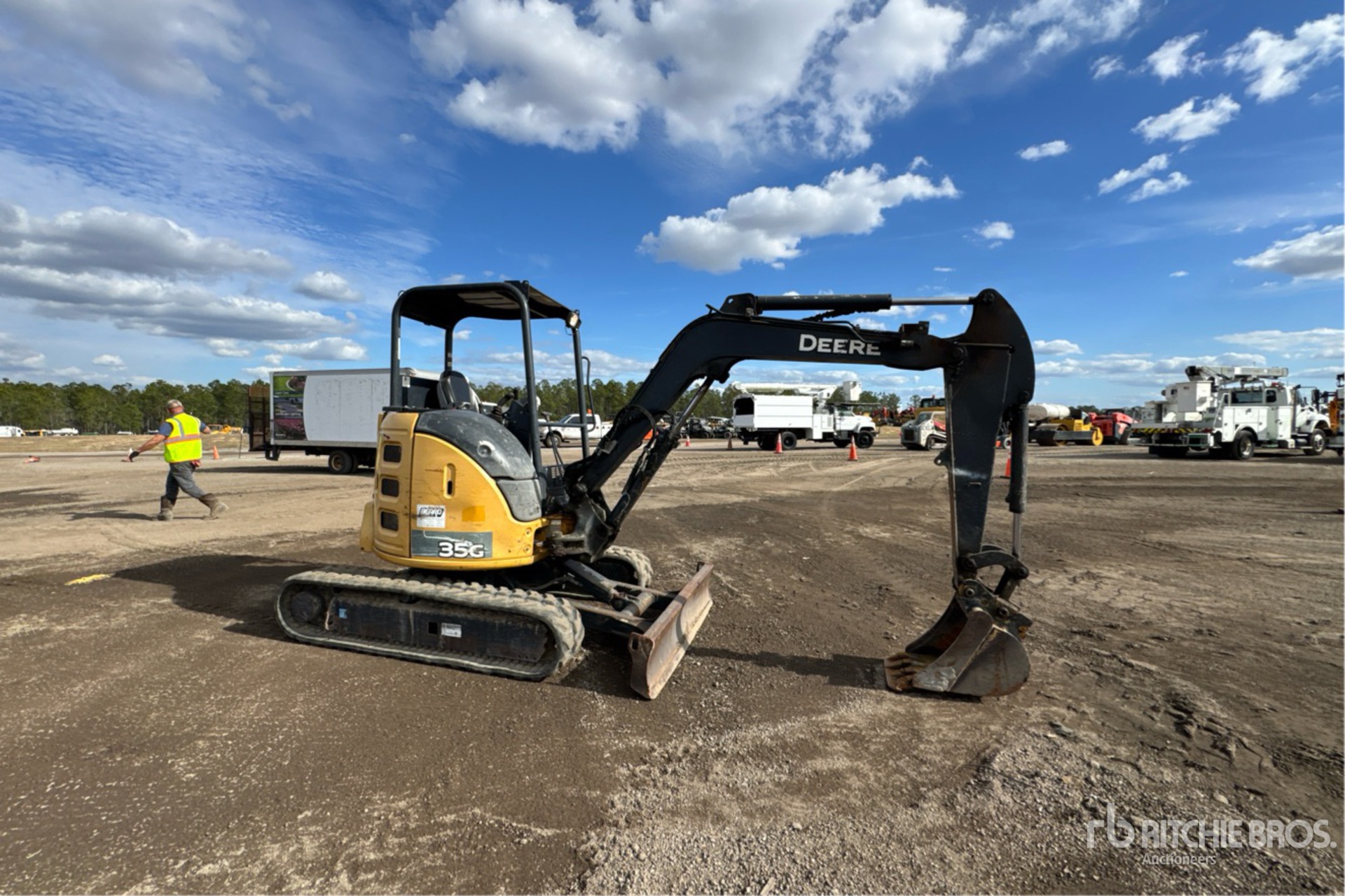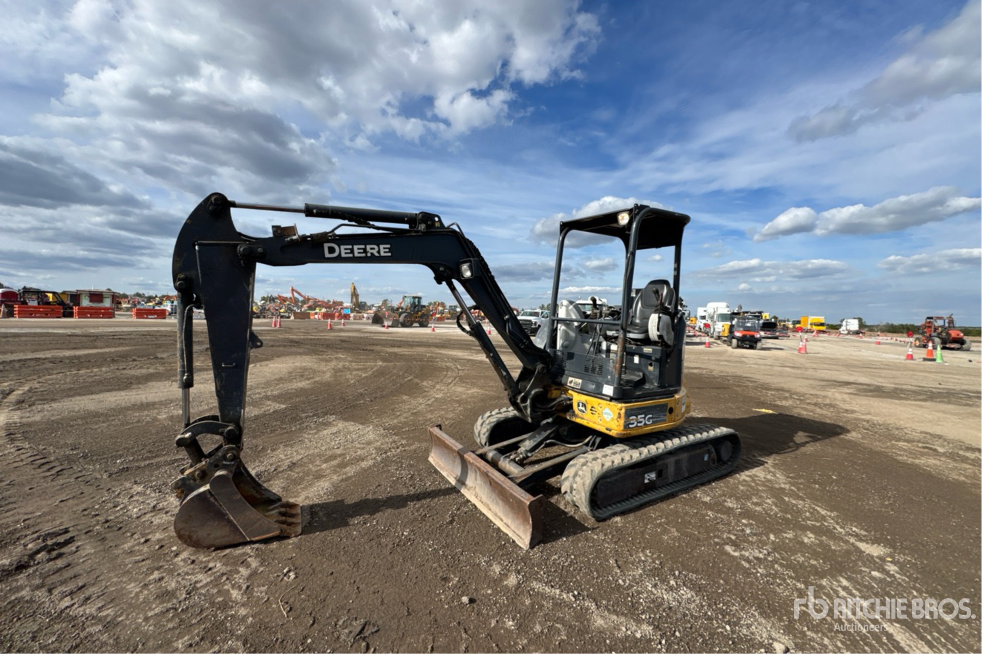 Swing Boom, 4 ft 4 in Stick, Auxiliary Hydraulic Plumbing, Backfill Blade, 11.5 in Rubber Tracks, Manual Quick Coupler, 17 in Digging Bucket, Thumb Bracket