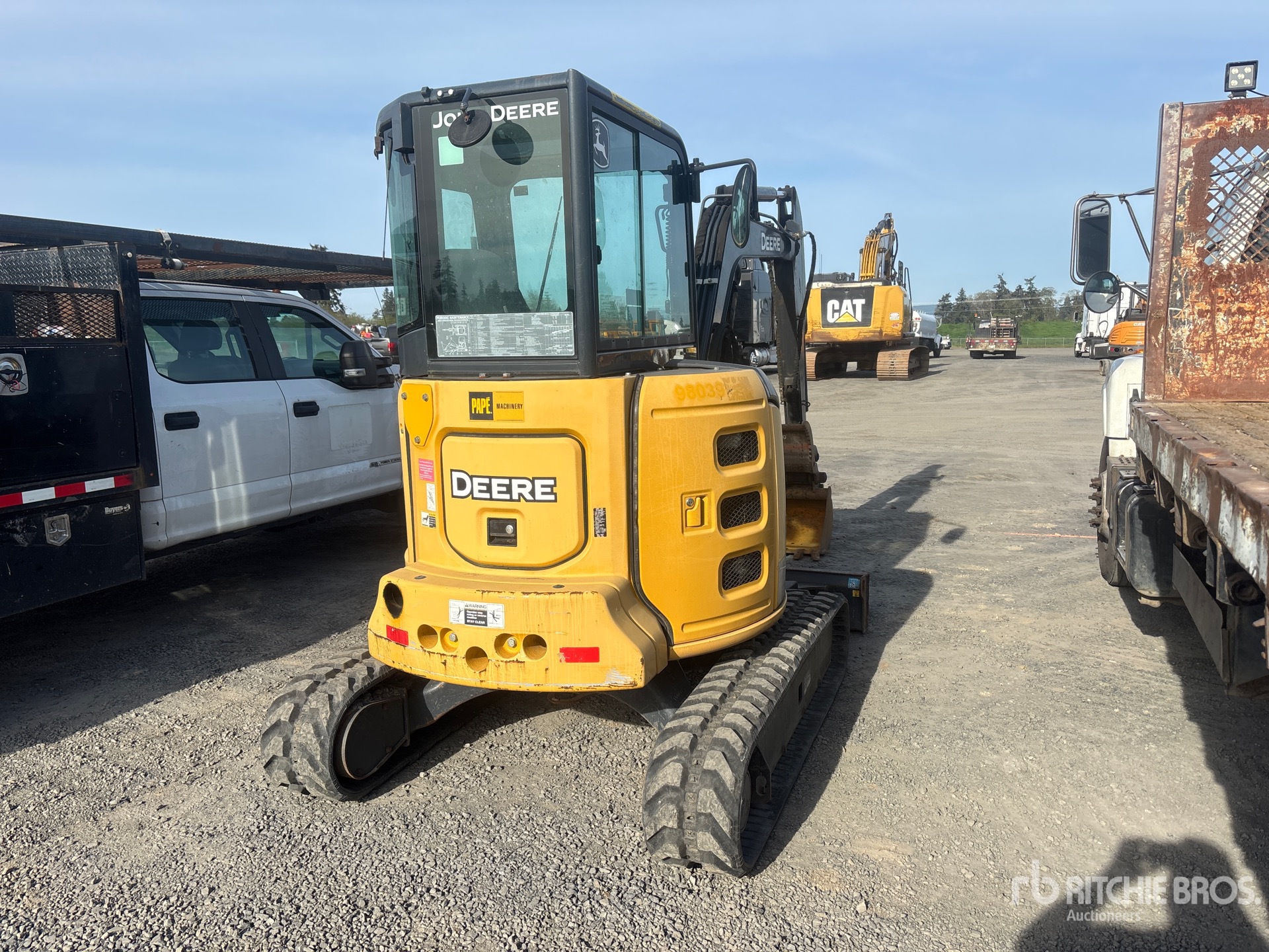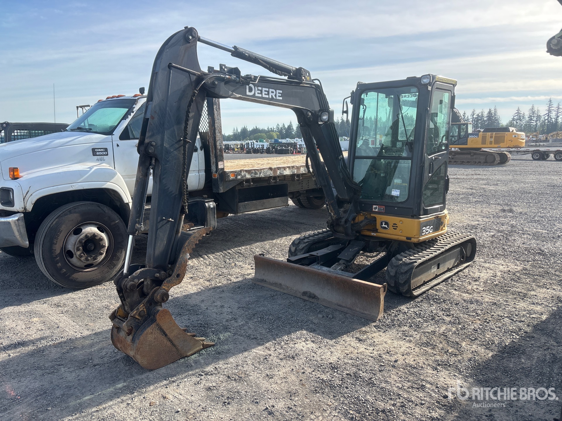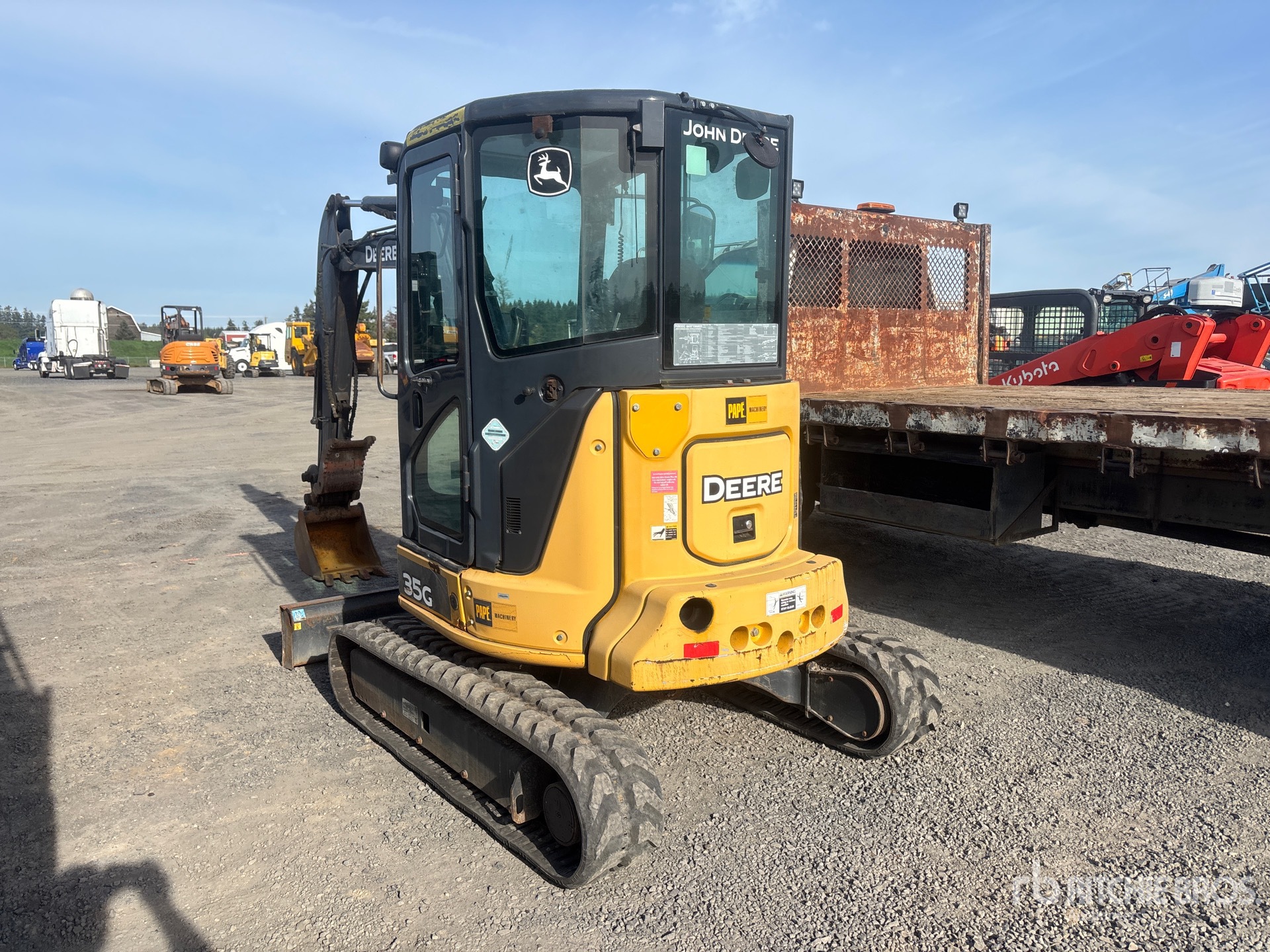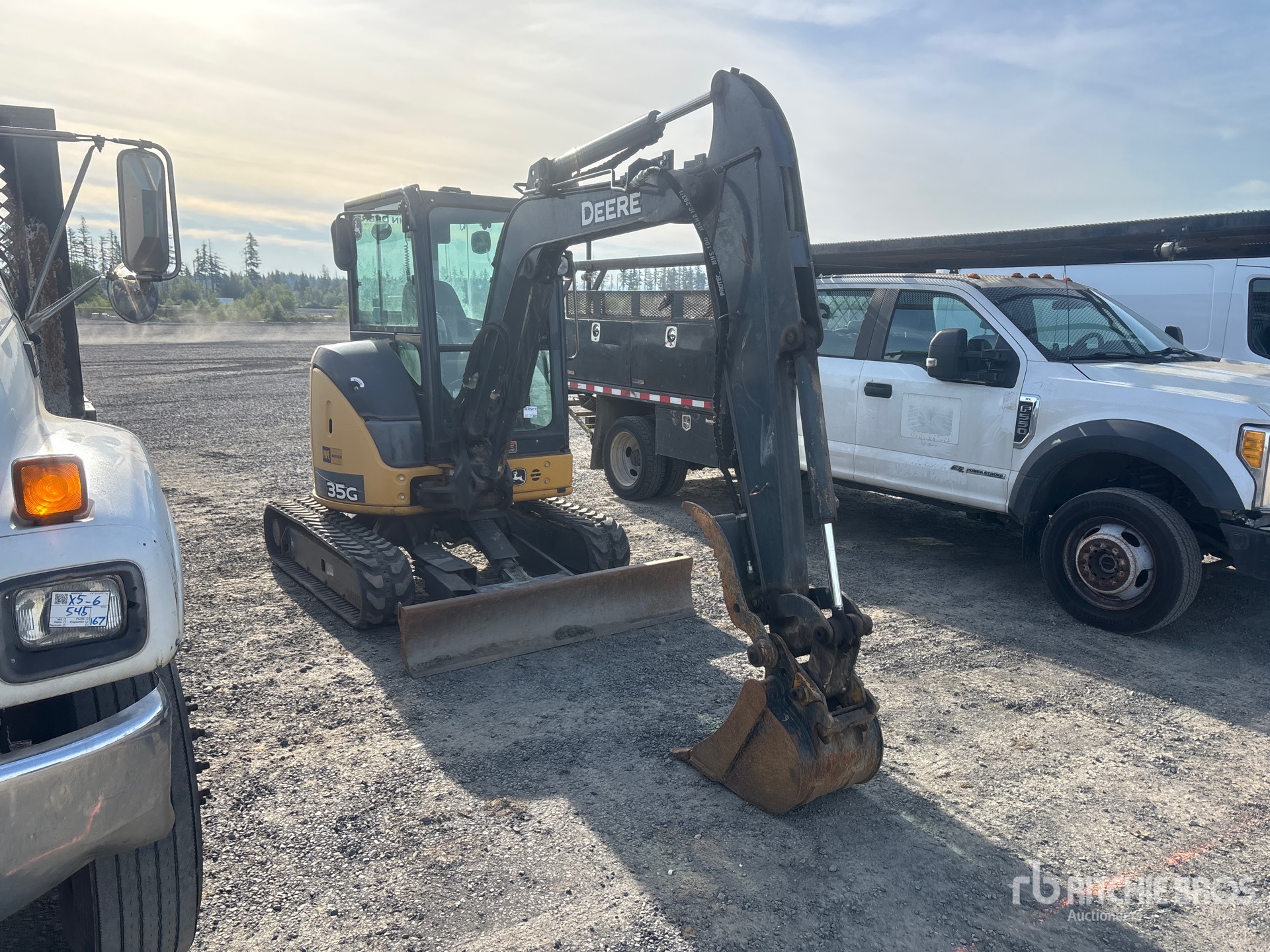 Enclosed Cab, Air Conditioner, Swing Boom, 5 ft 6 in Stick, Auxiliary Hydraulic Plumbing, Power Angle Blade, 12 in Rubber Tracks, 17 in Digging Bucket, Hydraulic Thumb