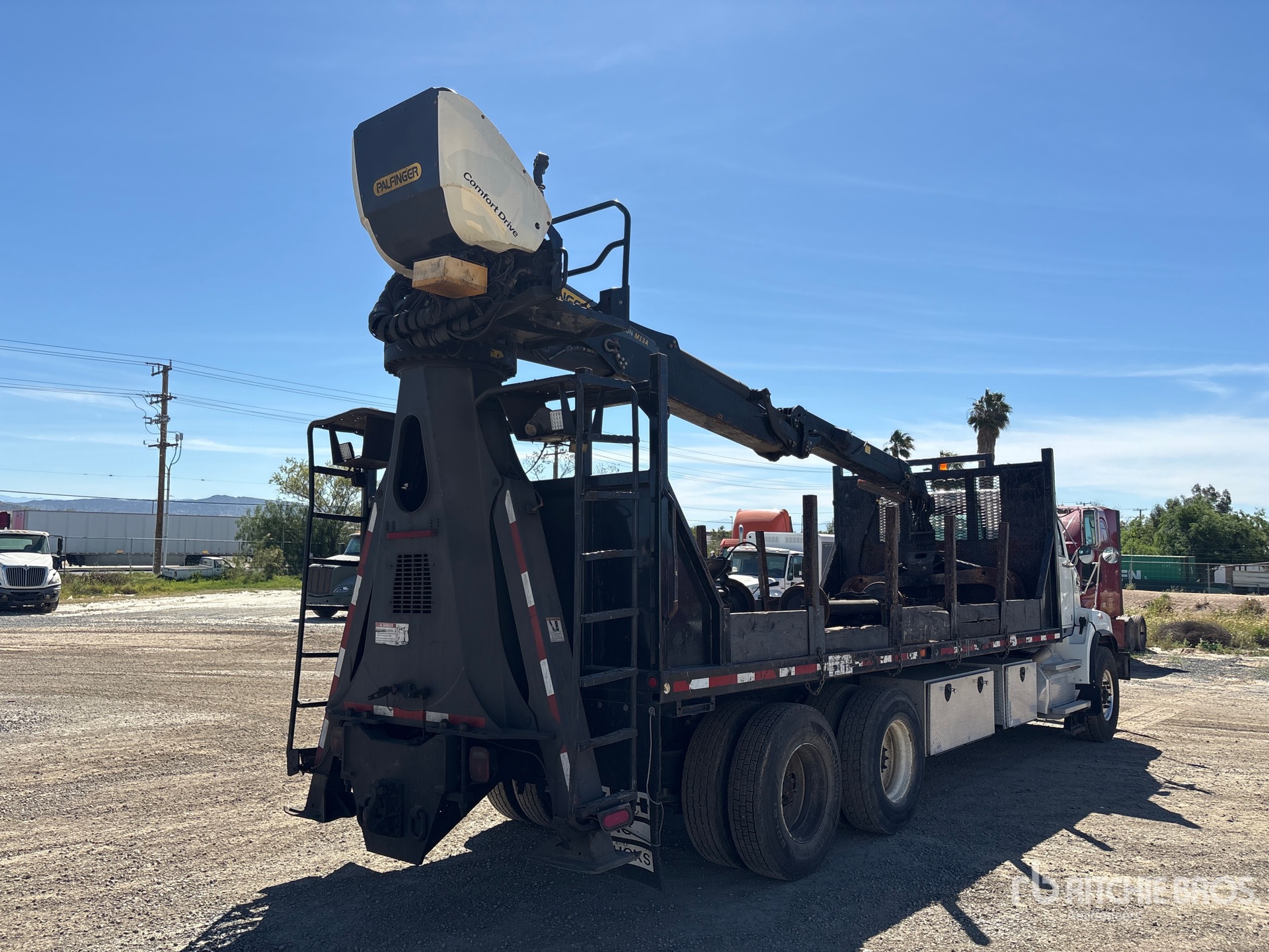 Located in Lane 1 Spot 51, Detroit DD13 6 Cylinder 12.8 L Diesel 470 hp Engine, 2017 US EPA Label, Requires Diesel Exhaust Fluid, 9080.7 Engine hrs, Engine Brake, Eaton Fuller 10-Speed Manual Transmission, 20000 lb Front Axle, 46000 lb Rears, Meritor RT-46-160P Drive Axles, 3.73:1 Axle Ratio, 66000 lb GVWR, Air Ride Cab, Aluminum Front Wheels, 425/65R22.5 Front Tires, 11R22.5 Rear Tires, Dual Steering Boxes, Double Frame, Airliner Air Ride Suspension, 255 in Wheelbase, PTO, 32 ft 3 Section Boom, A-Outriggers, 18 ft x 96 in Bed, Pintle Hitch, High Rail System Dismounted