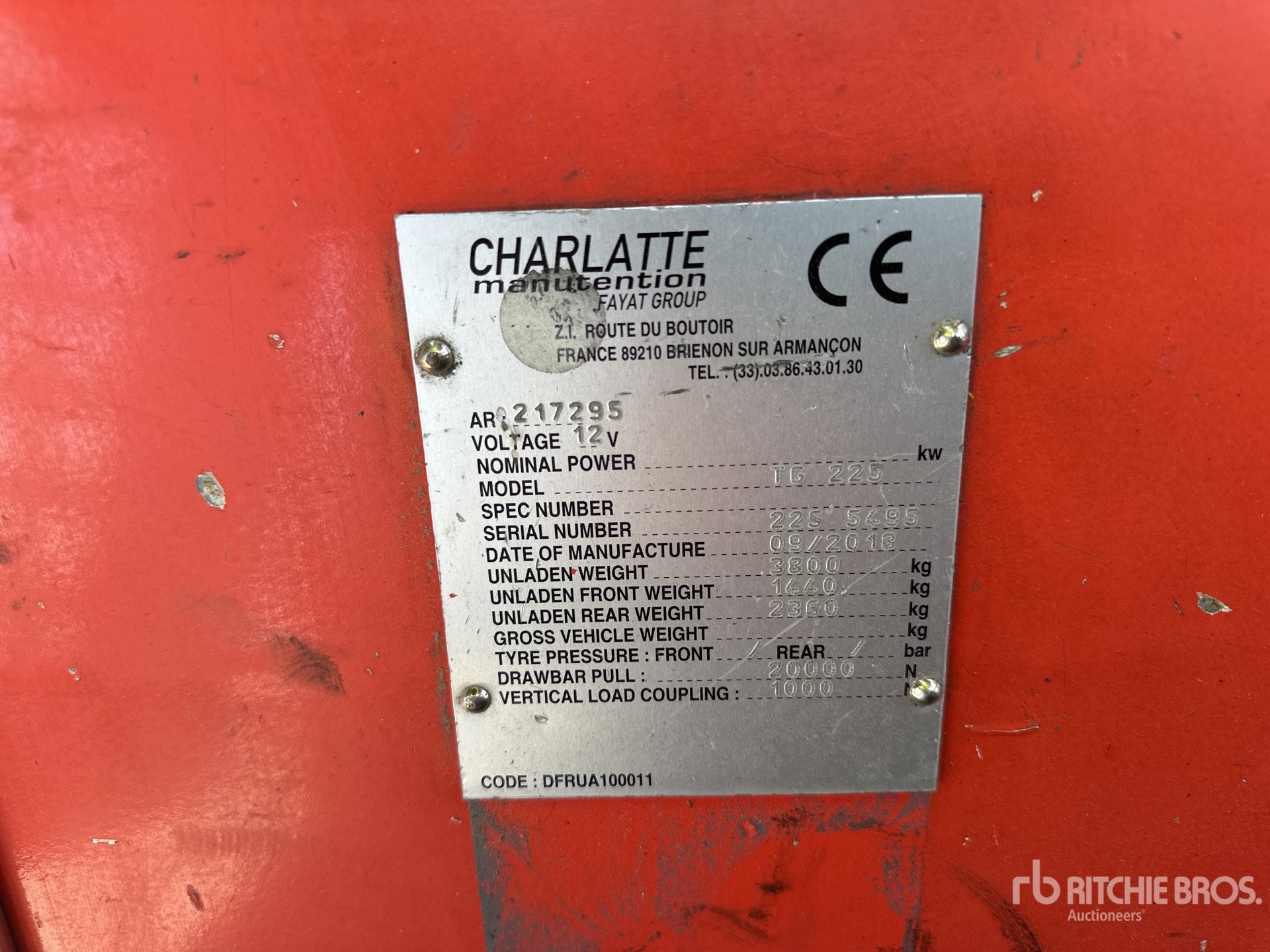 De gedetailleerde informatie over het materieel is beperkt, en Ritchie Bros. Auctioneers heeft geen andere aspecten of onderdelen van het materieel geïnspecteerd dan uitdrukkelijk in dit document vermeld. Tenzij uitdrukkelijk vermeld, geven wij geen verklaringen of garanties, expliciet of impliciet, met betrekking tot het materieel of de onderdelen ervan, met inbegrip van, maar niet beperkt tot, verklaringen of garanties met betrekking tot functionaliteit, conformiteit of naleving van veiligheidsnormen of -vereisten van een toepasselijke autoriteit of regelgevende instantie, geschiktheid voor een bepaald doel of verkoopbaarheid. U wordt ten zeerste aangeraden uw eigen gedetailleerde inspectie van het materieel uit te voeren voordat u een bod plaatst.