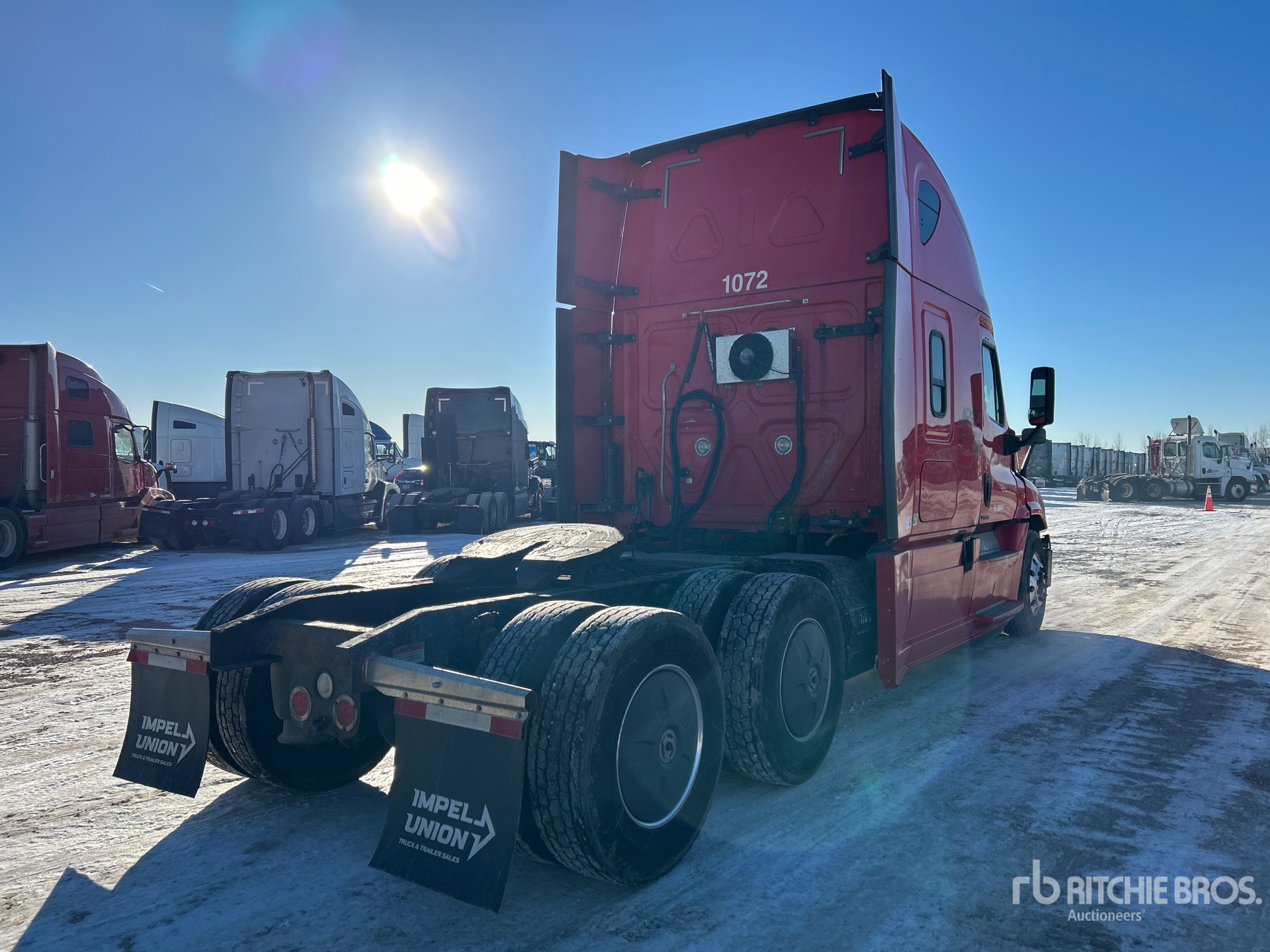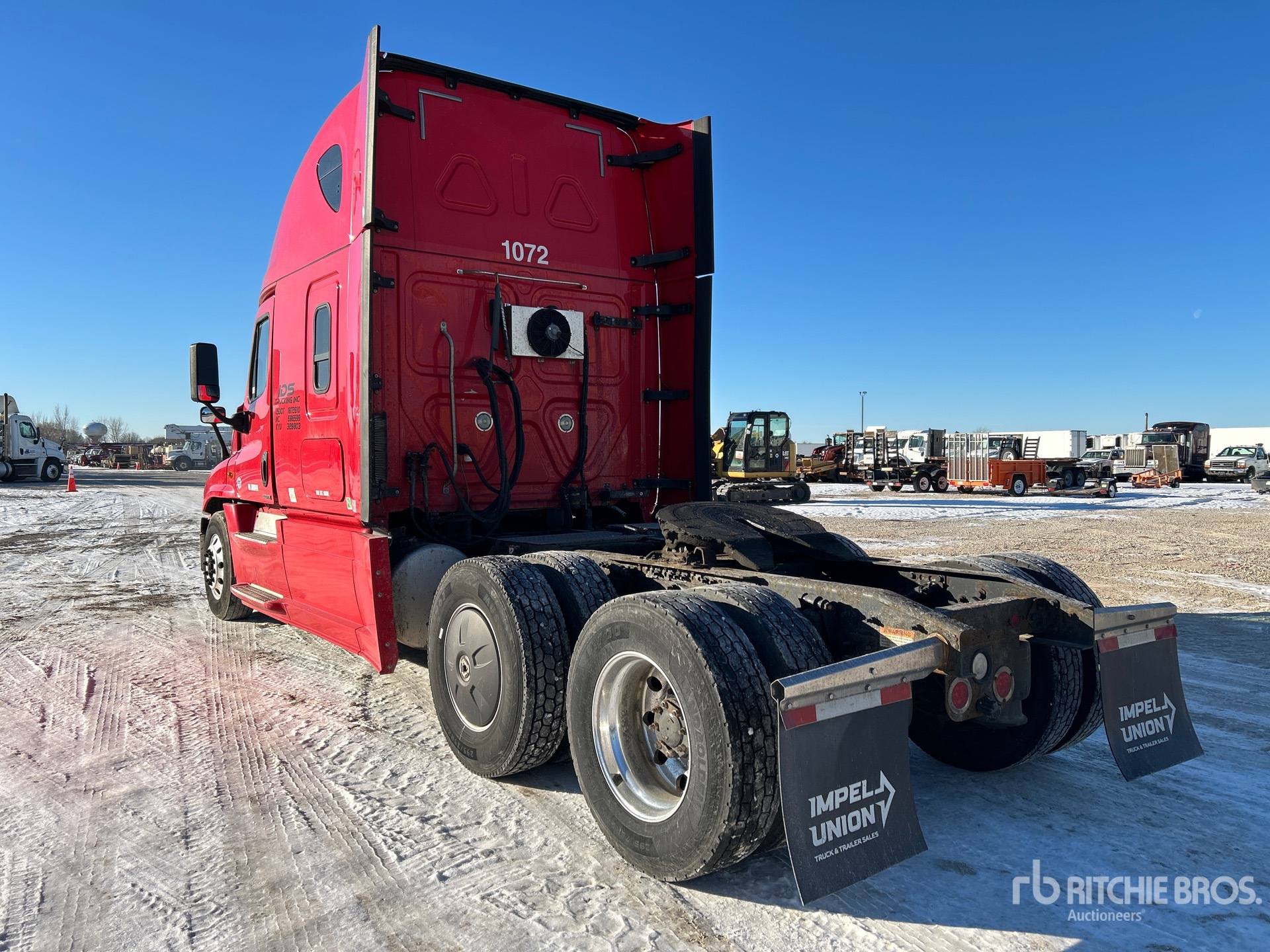 Located in Lane 19 Spot 37, Detroit DD15 400 hp Engine, 2017 US EPA Label, 21495 Engine hrs, Detroit DT12-DA-1750 12-Speed Automated Transmission, 12350 lb Front Axle, 40000 lb Rears, 52350 lb GVWR, Engine Brake, 72 in High Rise Sleeper Cab, Bunk Beds, Auxiliary Power Unit, 228 in Wheelbase, Air Suspension, Aluminum Wheels, 295/75R22.5 Front Tires, 295/75R22.5 Rear Tires, Air Sliding 5th Wheel, Dual Fuel Tanks