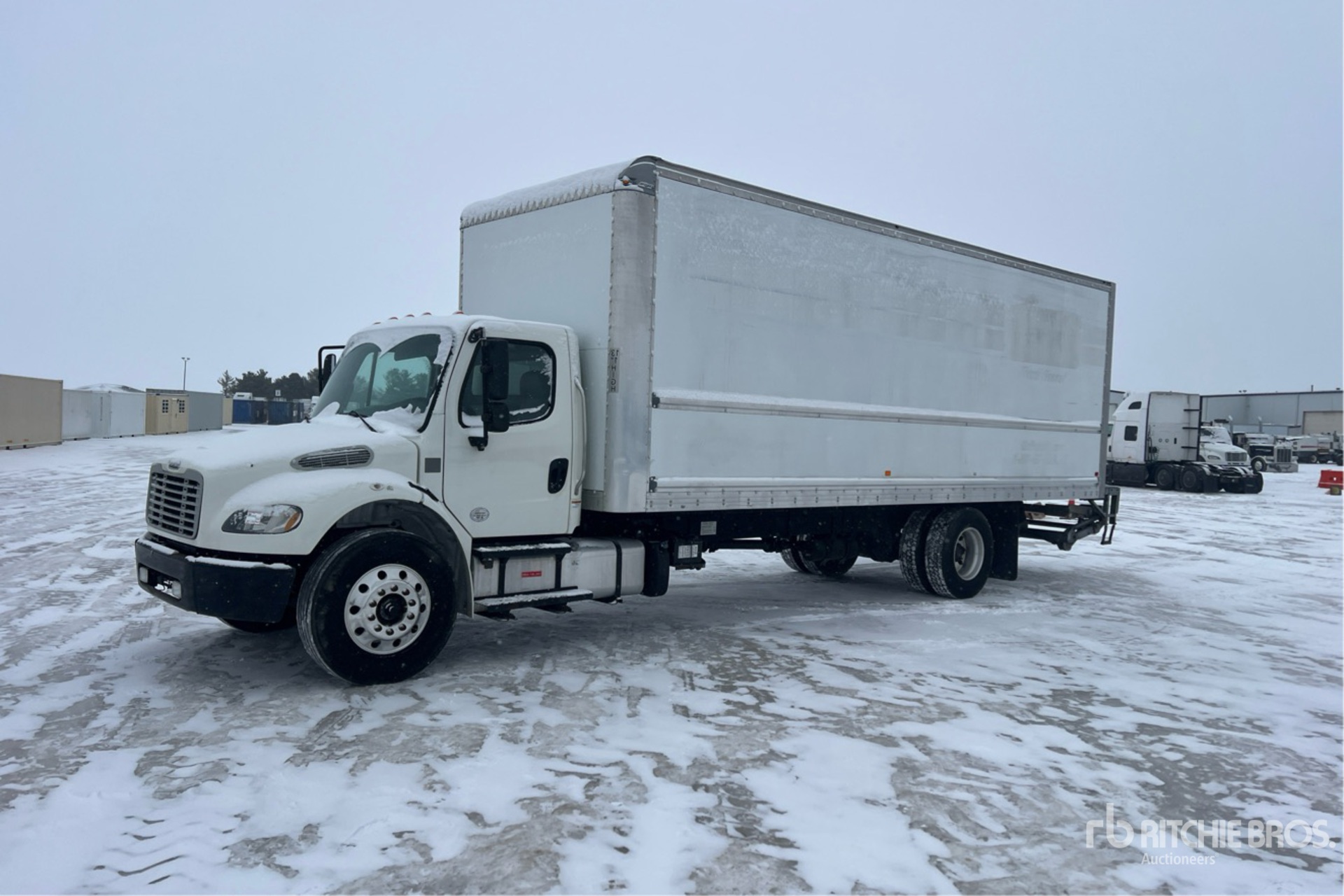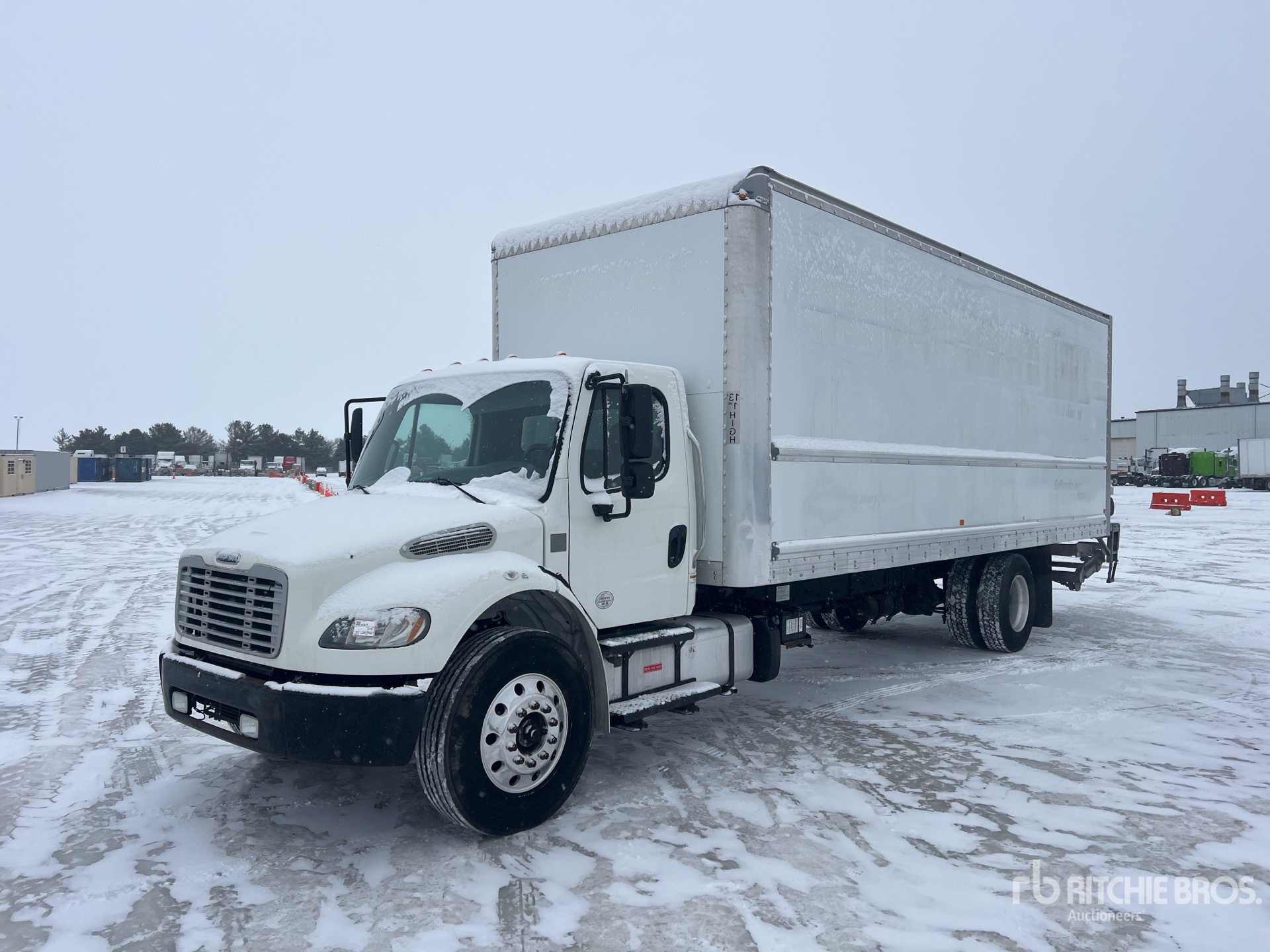 Located in Lane 11 Spot 28, Cummins B6.7 6 Cylinder 6.7 L Diesel 220 hp Engine, 2017 US EPA Label, Requires Diesel Exhaust Fluid, 8465. Engine hrs, Eaton Fuller EDCO-6F107A Automatic Transmission, 10000 lb Front Axle, 19000 lb Rears, 5.56:1 Axle Ratio, 26000 lb GVWR, Aluminum Wheels, 11R22.5, Air Ride Suspension, 270 in Wheelbase, Mulitvans 26 ft x 102 in Wide x 102 in High Body, Liftgate