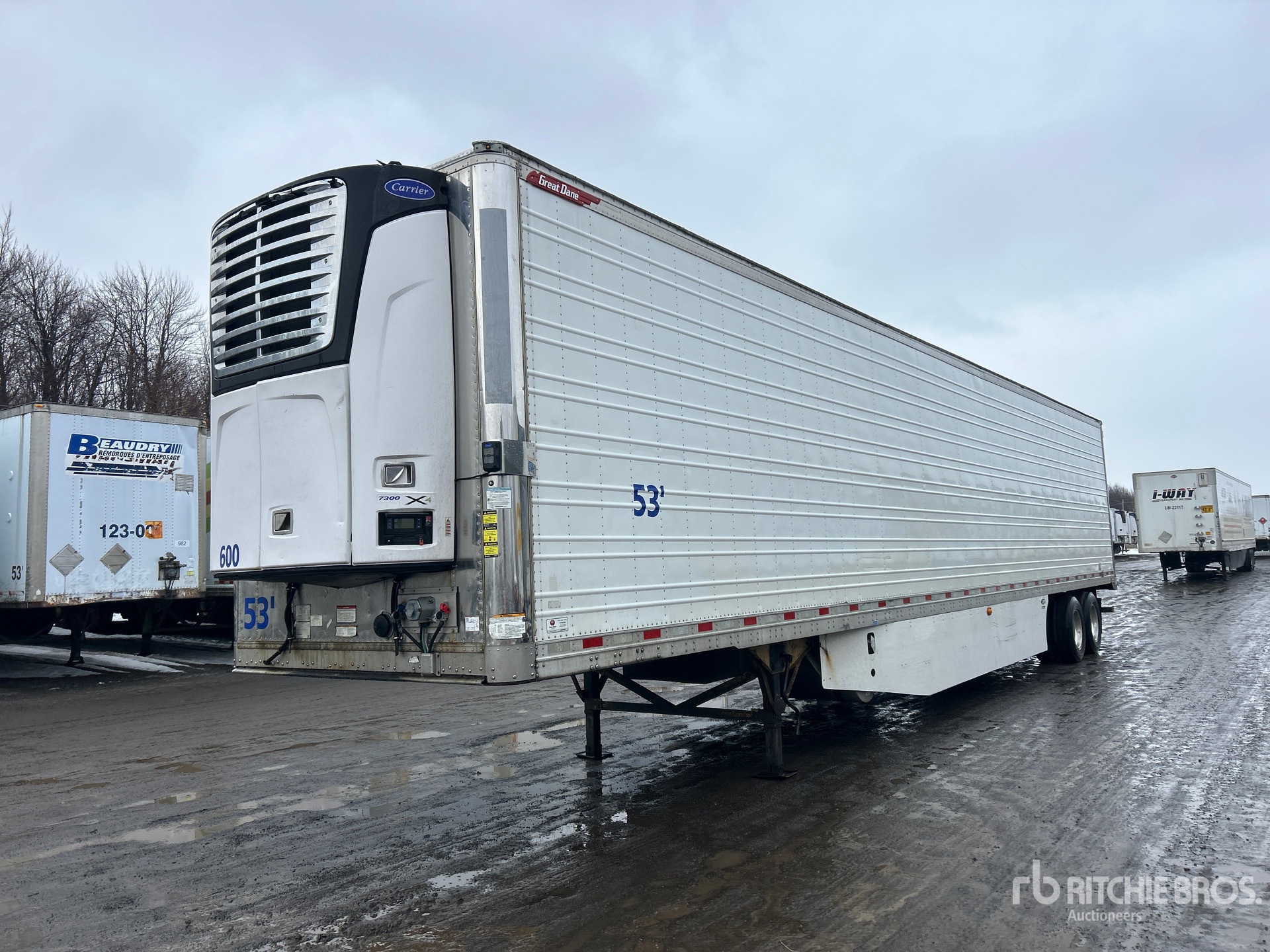 Carrier 7300 X4 Refrigeration Unit, Aluminum/Steel Combination Frame, Air Ride Sliding Suspension, Side Skirts, Ducted Floor, Swing Door, 11R22.5 Tires, 30844 kg GVWR