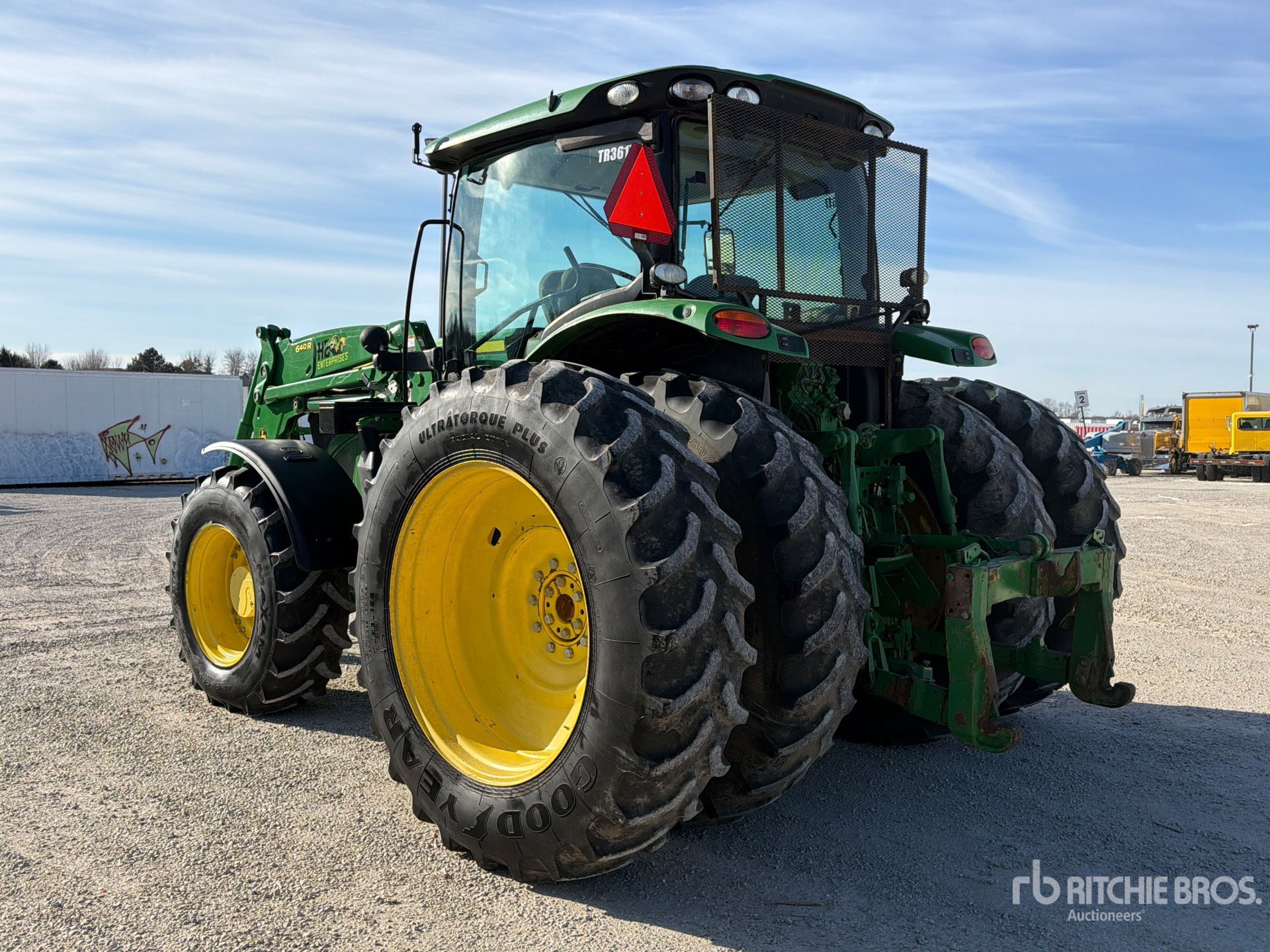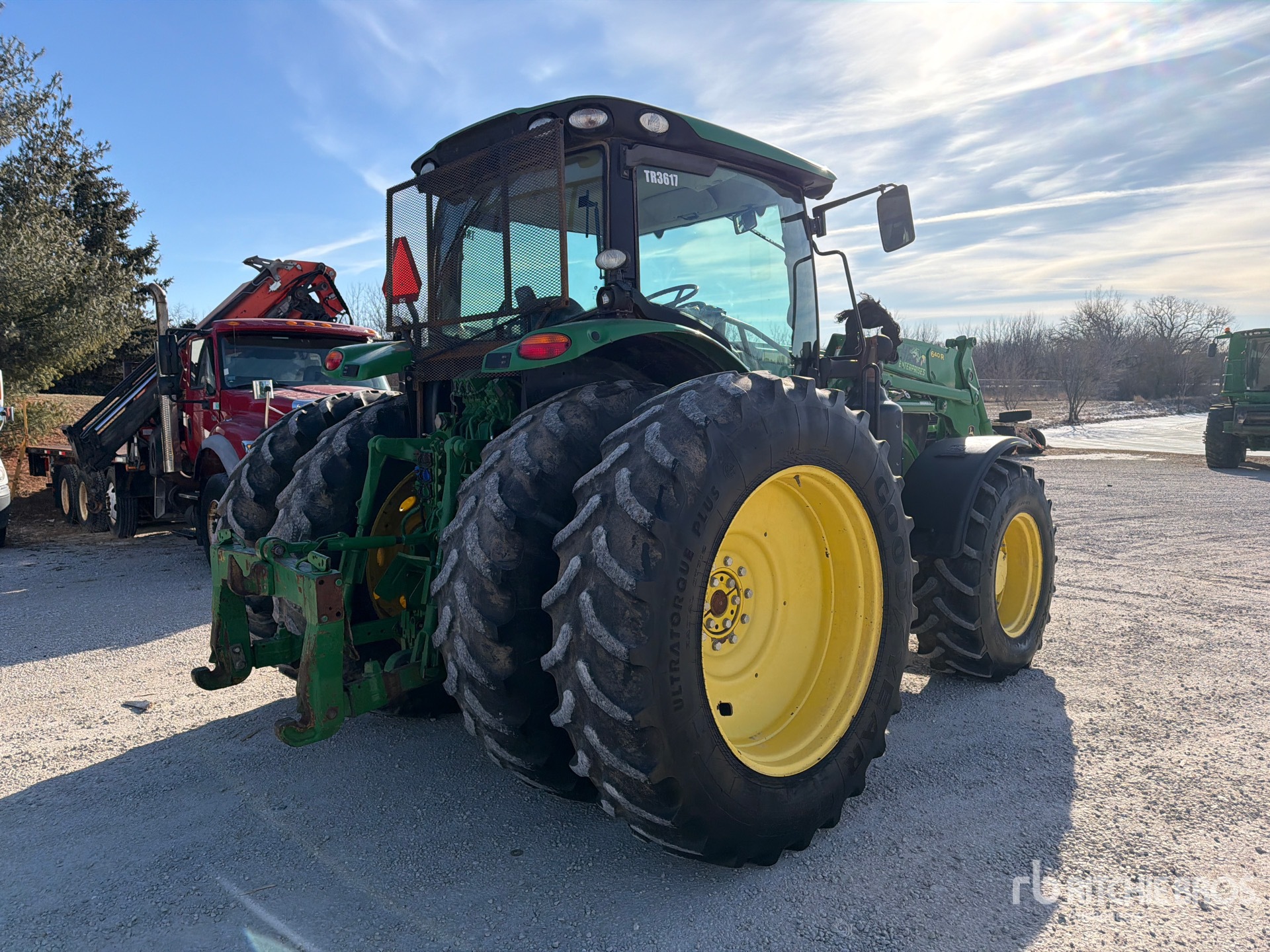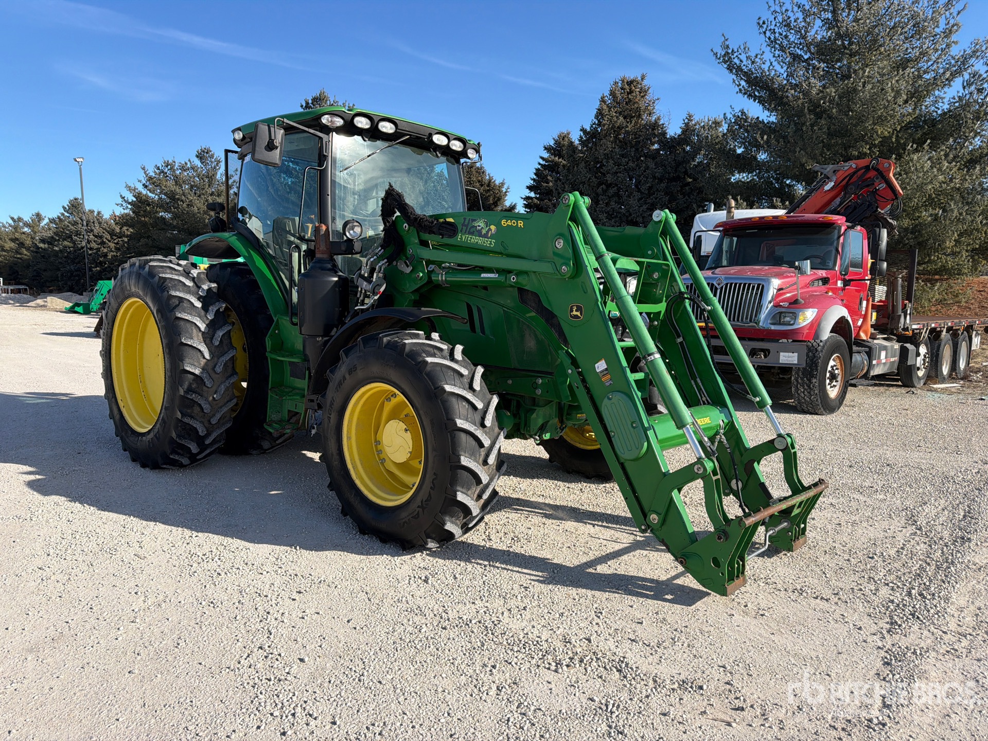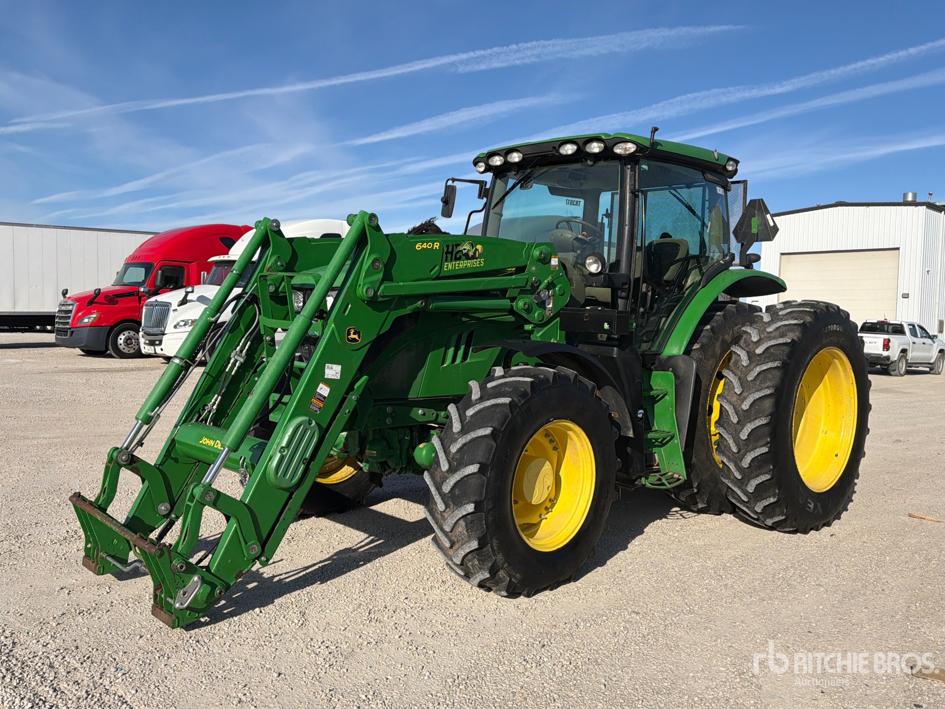 Enclosed Cab, Air Conditioner, Air Ride Seat, 5 Forward 5 Reverse, John Deere 640R Loader w/Joystick, Quick Coupler, HID Lights, 6 Rear Remotes, 1000 PTO, 3-Point Hitch, Trailer Hitch, 16.9R28 Front Tires, Dual 18.4x42 Rear Tires