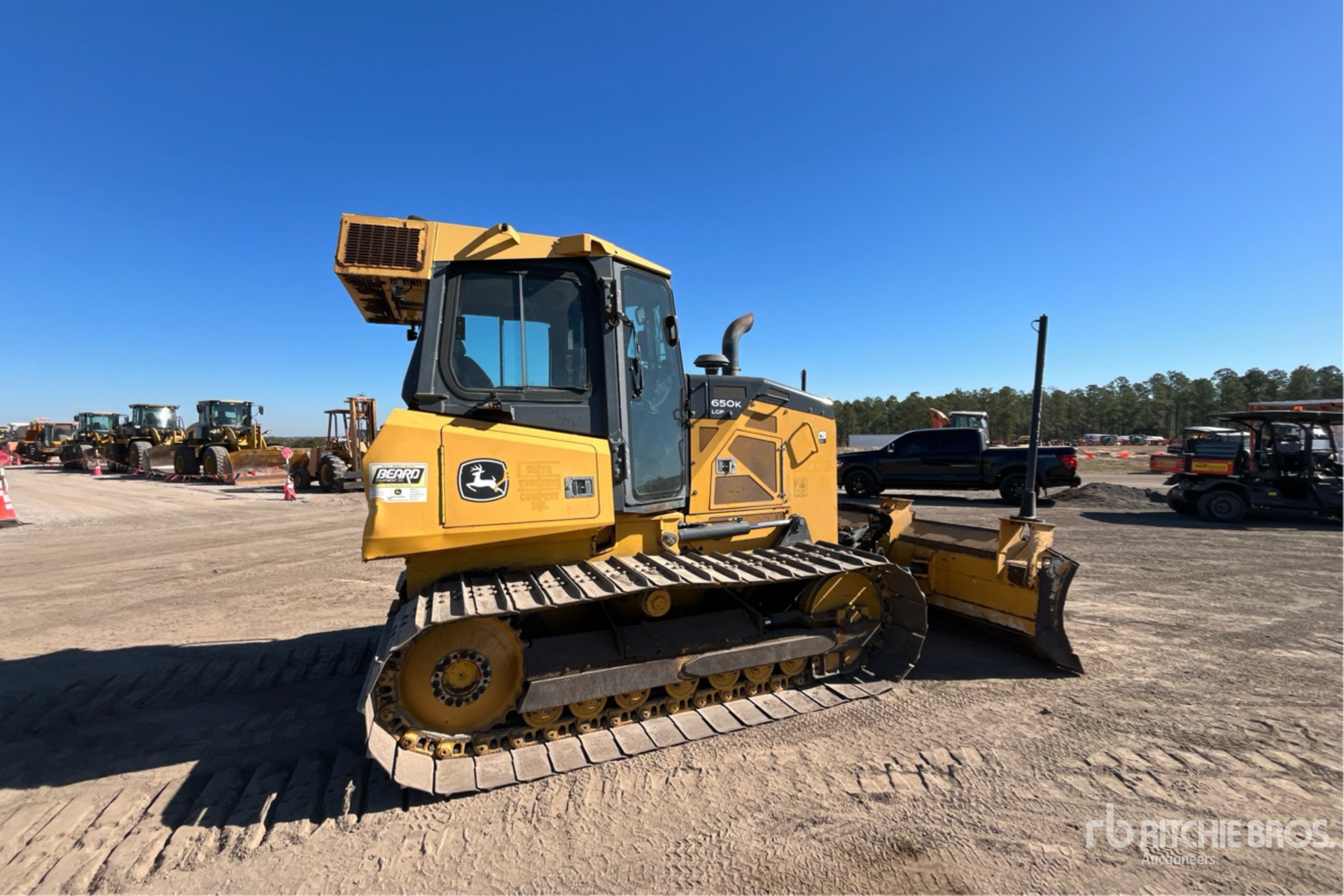 Located in Spot 212, Enclosed Cab, Air Conditioner, Pre-Wired for Grade Control, US EPA Label, Requires Diesel Exhaust Fluid, 122 in Wide PAT Blade, 27 in Single Grouser Track Shoes, Drawbar