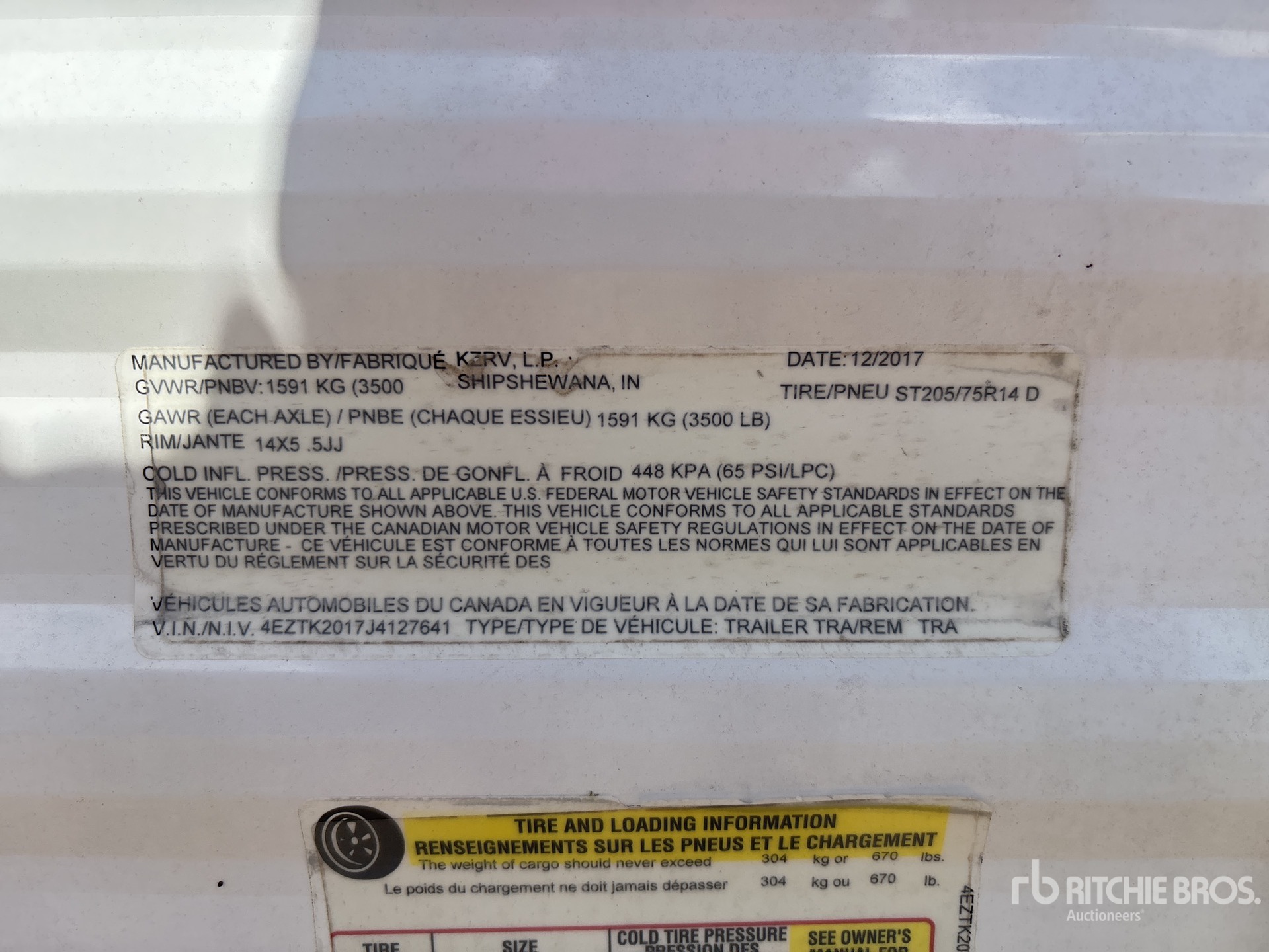 3500 lb GVWR, Power Awning, Bumper Pull, Spring Suspension, Electric Brakes, 205/75R14 Tires