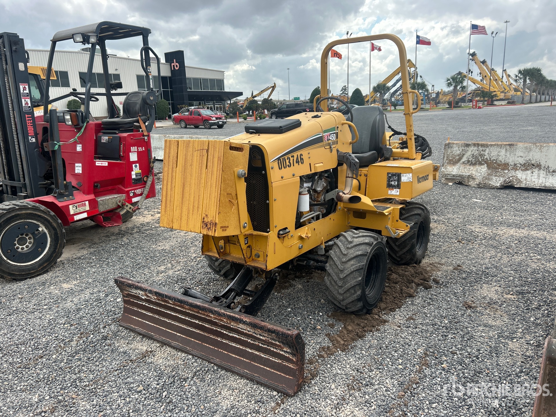 Maten worden slechts bij benadering gegeven. De werkelijke afmetingen onder belasting kunnen variëren afhankelijk van de hoogte van de vrachtwagen/aanhanger en de configuratie/positie van de geladen machine. Het is de verantwoordelijkheid van de koper om alle ladingen te meten voordat deze onze veilinglocatie verlaten, om te garanderen dat de lading veilig is voor transport. Alle maten moeten door de koper worden gecontroleerd. Vertrouw niet op deze maten voor transportdoeleinden.