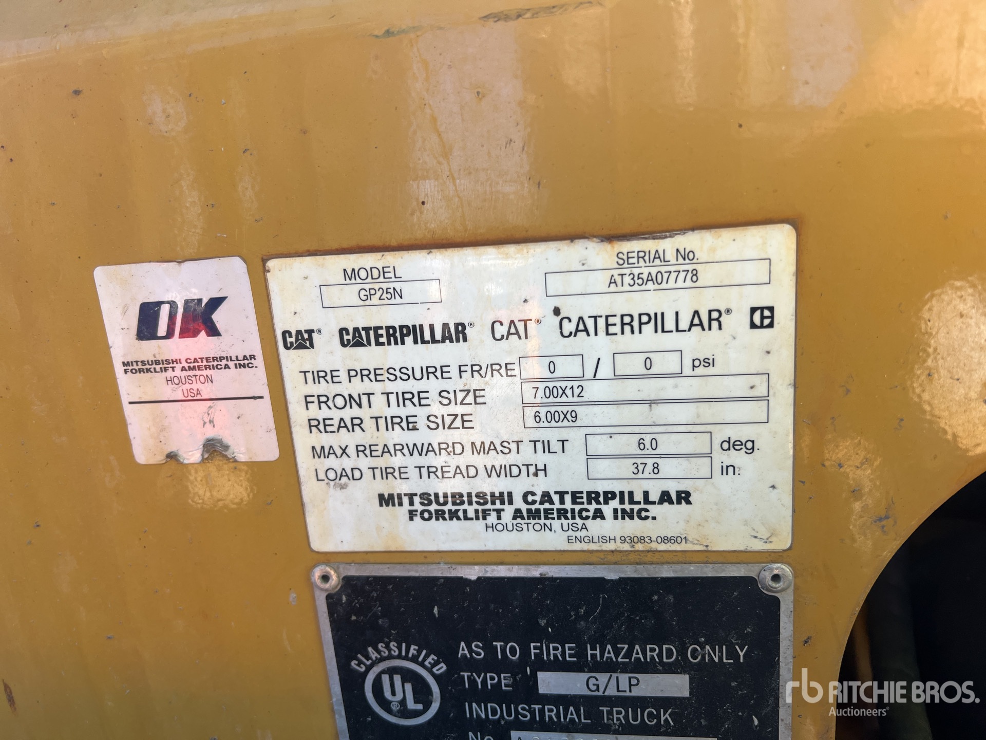 3 Stage Mast, 188 in Max Lift Height, 80 in Lowered Mast Height, 41 in Forks, Side Shift, Solid Pneumatic Tires, Tier 2, 2018 US EPA Label, GLOBAL COMPONENT TECHNOLOGIES GK25 4 Cylinder 2.5 L Dual Fuel Engine
