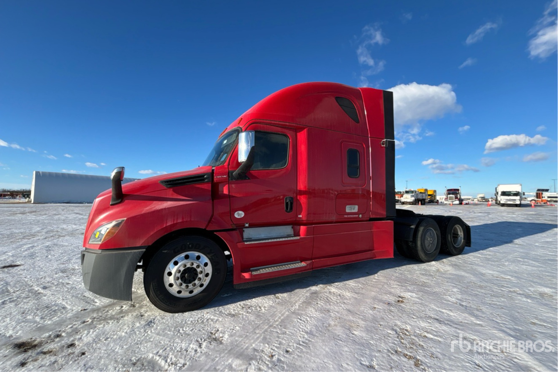 Detroit DD15 505 hp Engine, 2018 US EPA Label, Detroit DT12-1750-OH1 12-Speed Automated Transmission, 13200 lb Front Axle, Meritor MT-40-14XP Drive Axles, 3.08:1 Axle Ratio, 40000 lb Rears, 53200 lb GVWR, Engine Brake, Double Differential Locks, 60 in High Rise Sleeper Cab, Bunk Beds, Bunk Heater, Thermo King Sleeper Air Conditioner, 237 in Wheelbase, Air Suspension, Aluminum Wheels, 11R22.5, Air Sliding 5th Wheel, Dual Fuel Tanks