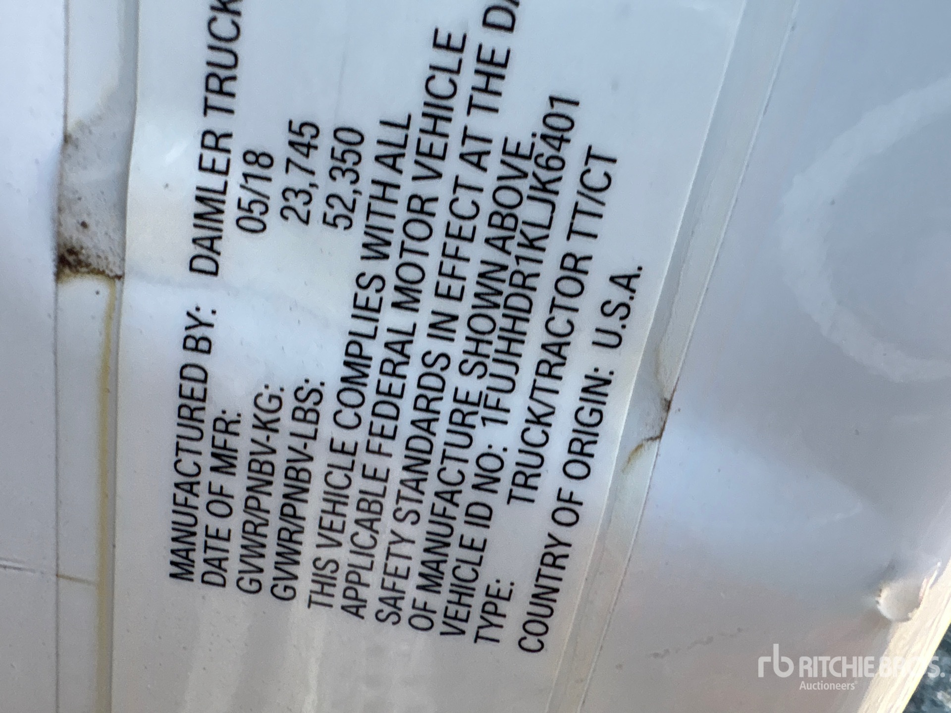 Detroit DD15 400 hp Engine, 2018 US EPA Label, Detroit DT12-1750-DH1 12-Speed Automated Transmission, 12350 lb Front Axle, 40000 lb Rears, 52350 lb GVWR, Engine Brake, 70 in High Rise Sleeper Cab, Bunk Beds, Bunk Heater, 227 in Wheelbase, Air Suspension, 295/75R22.5, Air Sliding 5th Wheel, Dual Fuel Tanks