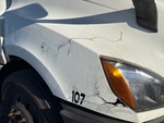 The engine started and ran. The stop engine light is on. The check engine light is on. The engine hood is damaged.