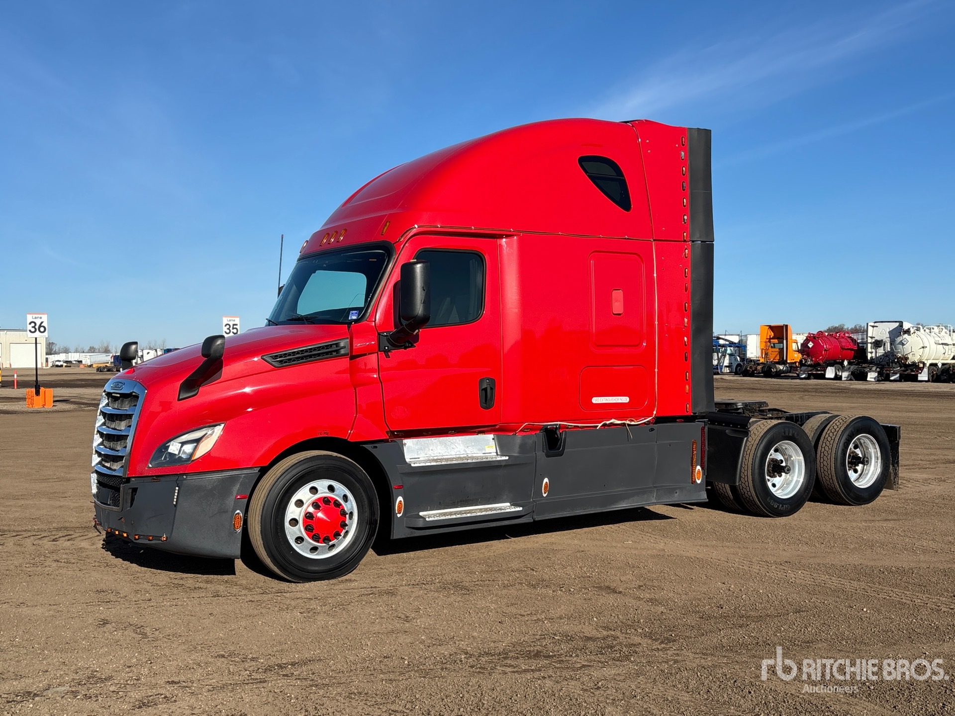 Located in Lane 8 Spot 6, Detroit DD15 400 hp Engine, 2018 US EPA Label, 24475 Engine hrs, Detroit DT12-1750-DH1 12-Speed Automated Transmission, 12350 lb Front Axle, 40000 lb Rears, 52350 lb GVWR, Engine Brake, 70 in High Rise Sleeper Cab, Bunk Beds, 229 in Wheelbase, Air Suspension, Aluminum Wheels, 295/75R22.5, Air Sliding 5th Wheel, Dual Fuel Tanks