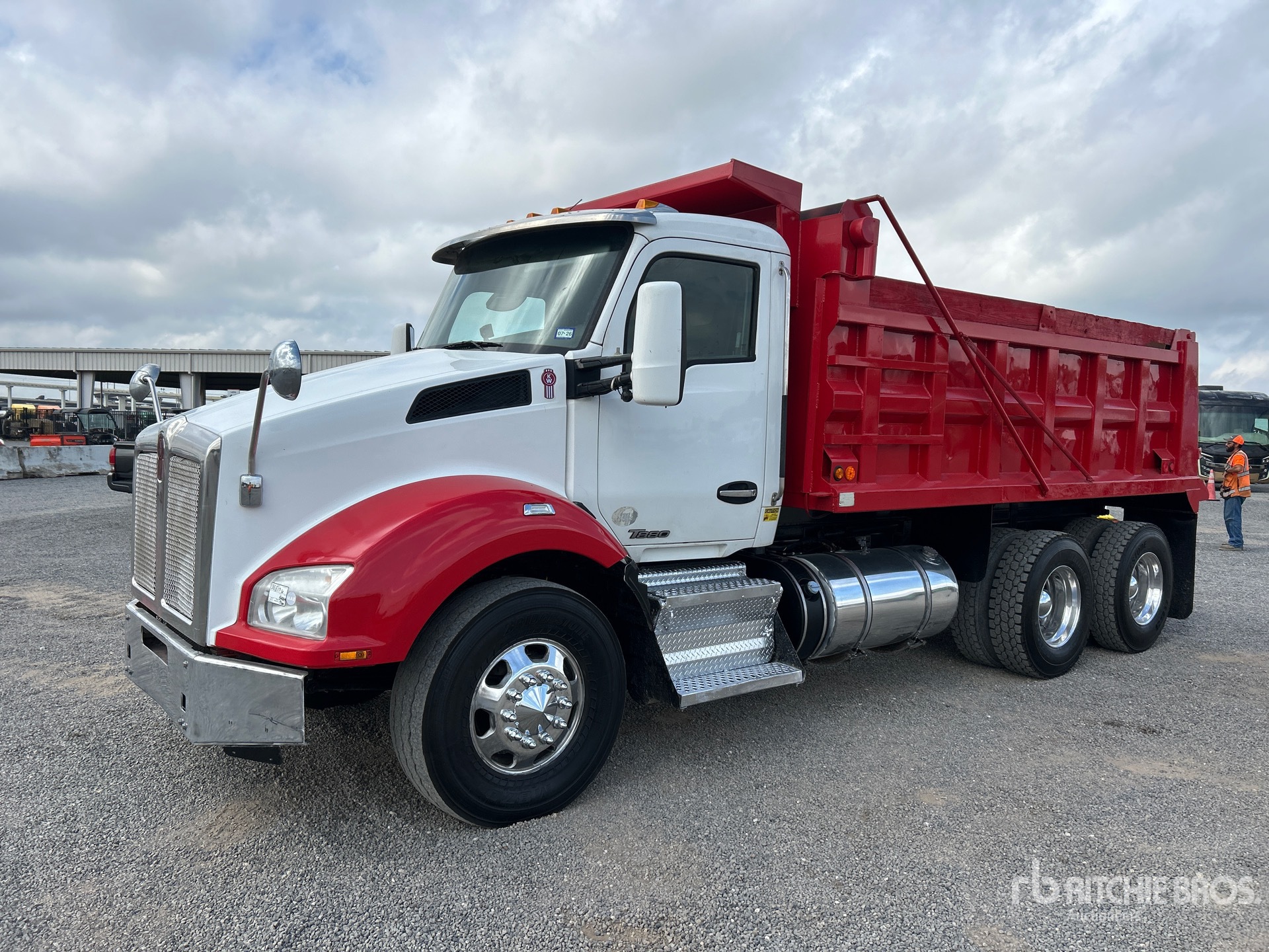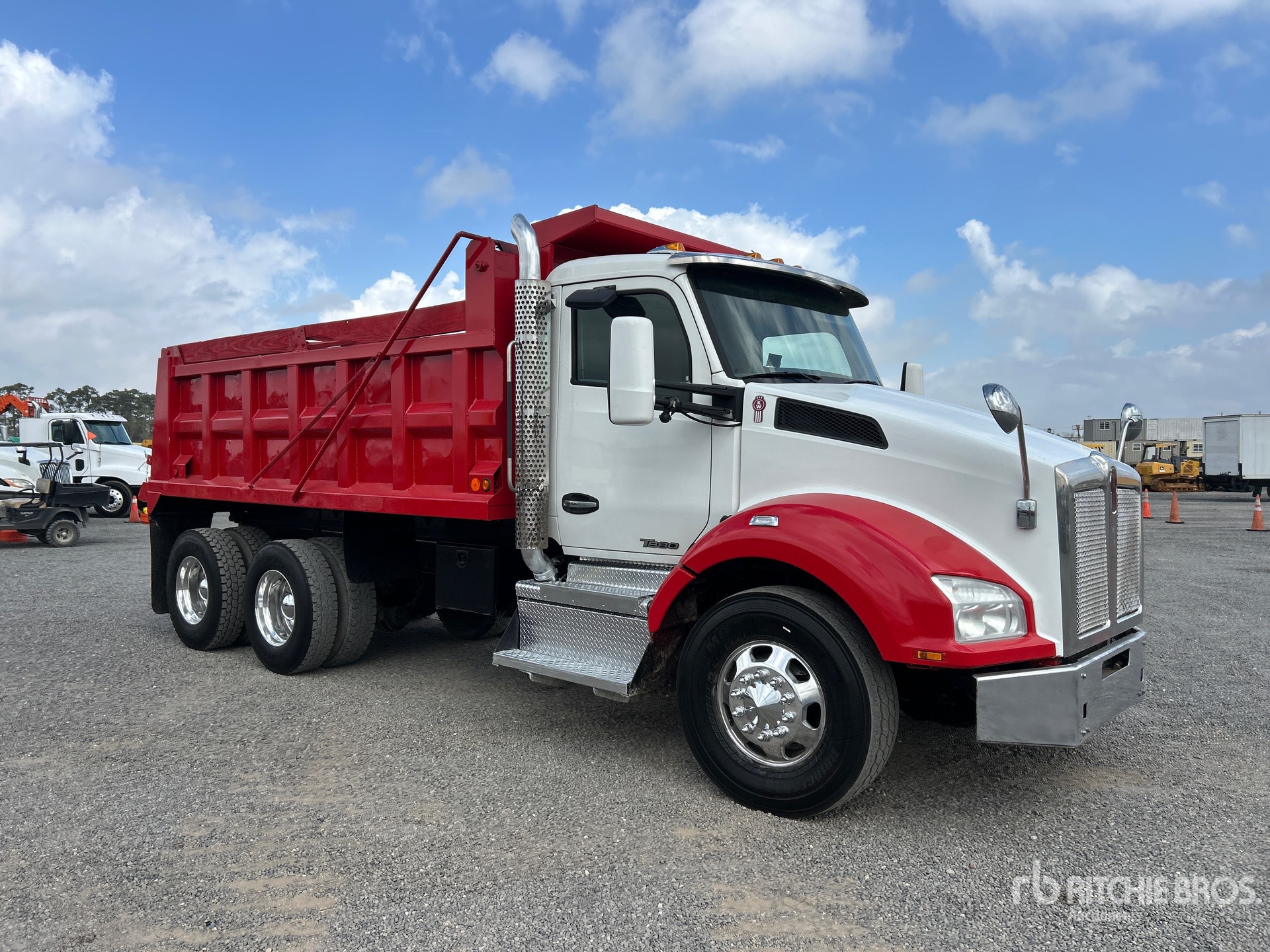 Located in Lane 33 Spot 27, Paccar 6 Cylinder 12.9 L Diesel Engine, 2019 US EPA Label, Eaton Fuller 15-Speed Manual Transmission, 13200 lb Front Axle, 40000 lb Rears, 53200 lb GVWR, Aluminum Wheels, 11R22.5, Air Ride Suspension, 200 in Wheelbase, PTO, 15 ft Long x 4 ft High Steel Body, Electric Roll Tarp
