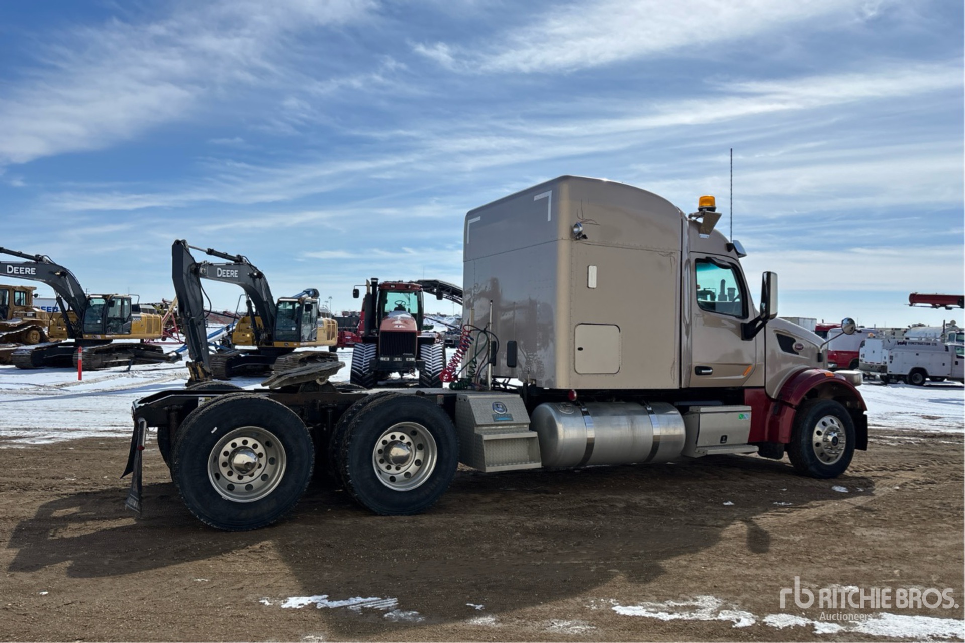 Paccar MX-13 510 hp Engine, Engine Coolant Heater, 2018 US EPA Label, 19399 Engine hrs, Paccar Automatic Transmission, 12000 lb Front Axle, 34000 lb Rears, 50000 lb GVWR, Engine Brake, 63 in Mid Roof Sleeper Cab, Bunk Heater, 244 in Wheelbase, Air Suspension, Aluminum Outer Wheels, 11R22.5, Dual Fuel Tanks