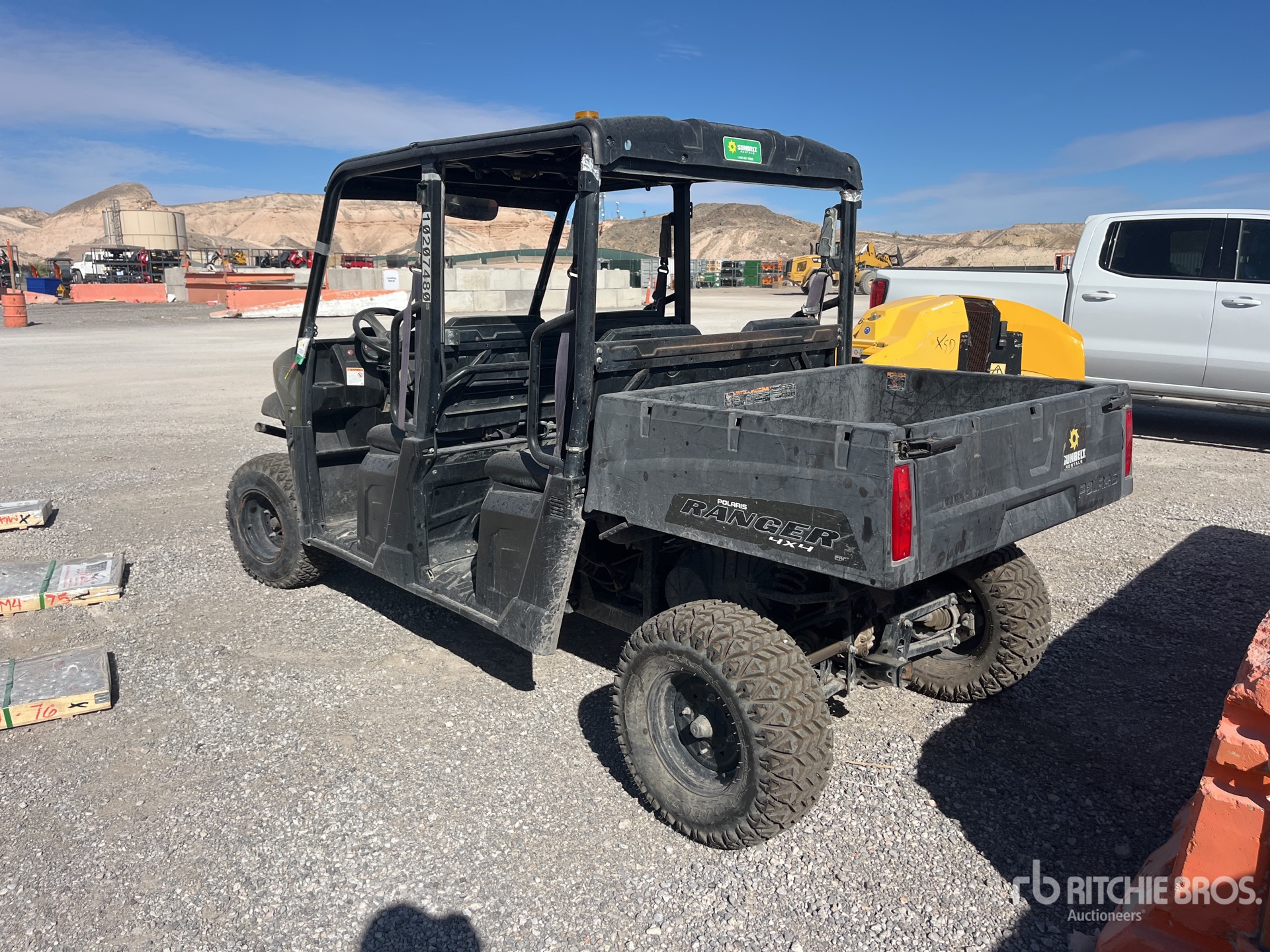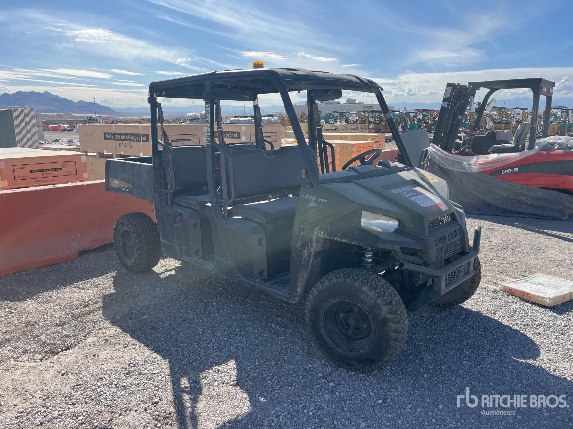 Canopy, 4 Passenger, Brush Guard, Hitch Receiver, Manual Dump Bed, Polaris Gasoline Engine