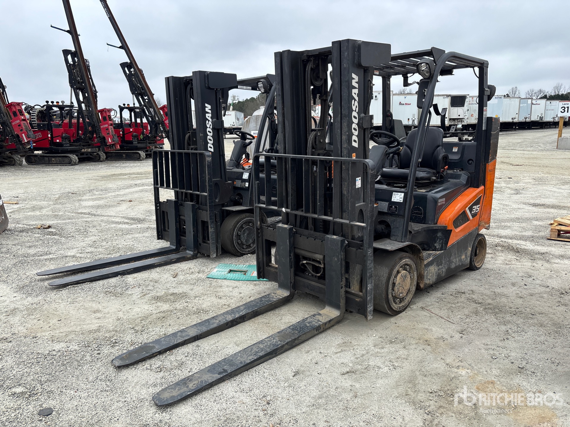 Maten worden slechts bij benadering gegeven. De werkelijke afmetingen onder belasting kunnen variëren afhankelijk van de hoogte van de vrachtwagen/aanhanger en de configuratie/positie van de geladen machine. Het is de verantwoordelijkheid van de koper om alle ladingen te meten voordat deze onze veilinglocatie verlaten, om te garanderen dat de lading veilig is voor transport. Alle maten moeten door de koper worden gecontroleerd. Vertrouw niet op deze maten voor transportdoeleinden.
