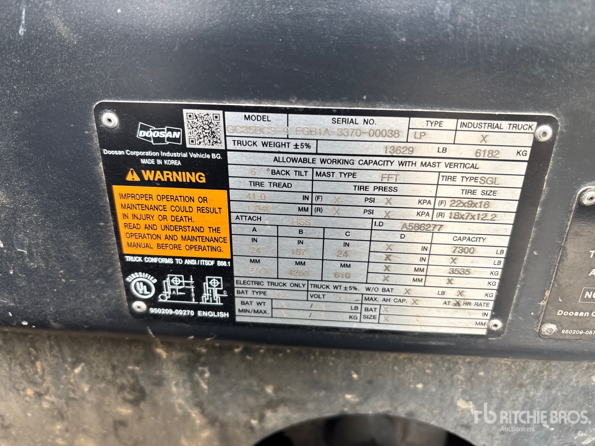 De gedetailleerde informatie over het materieel is beperkt, en Ritchie Bros. Auctioneers heeft geen andere aspecten of onderdelen van het materieel geïnspecteerd dan uitdrukkelijk in dit document vermeld. Tenzij uitdrukkelijk vermeld, geven wij geen verklaringen of garanties, expliciet of impliciet, met betrekking tot het materieel of de onderdelen ervan, met inbegrip van, maar niet beperkt tot, verklaringen of garanties met betrekking tot functionaliteit, conformiteit of naleving van veiligheidsnormen of -vereisten van een toepasselijke autoriteit of regelgevende instantie, geschiktheid voor een bepaald doel of verkoopbaarheid. U wordt ten zeerste aangeraden uw eigen gedetailleerde inspectie van het materieel uit te voeren voordat u een bod plaatst.