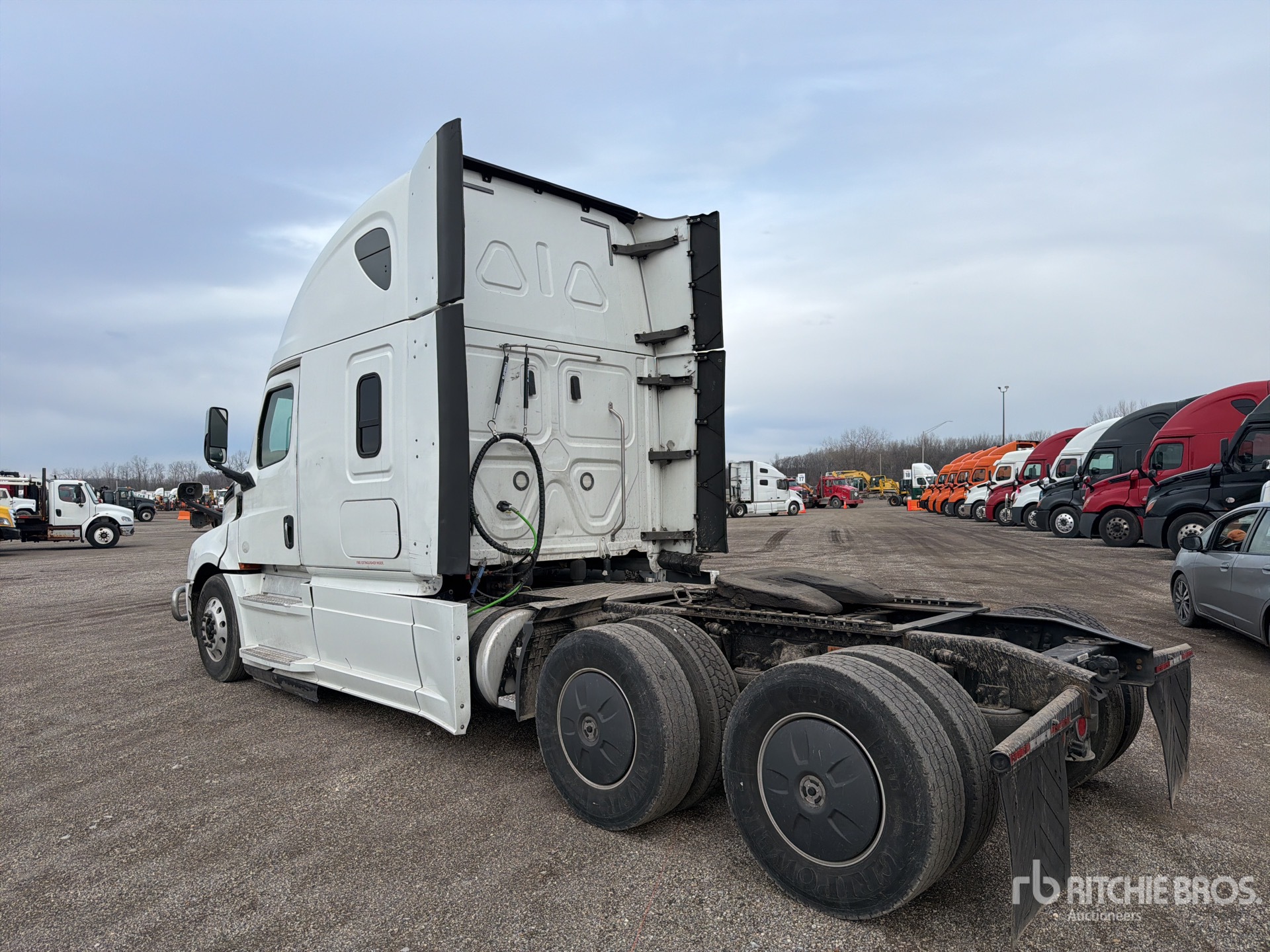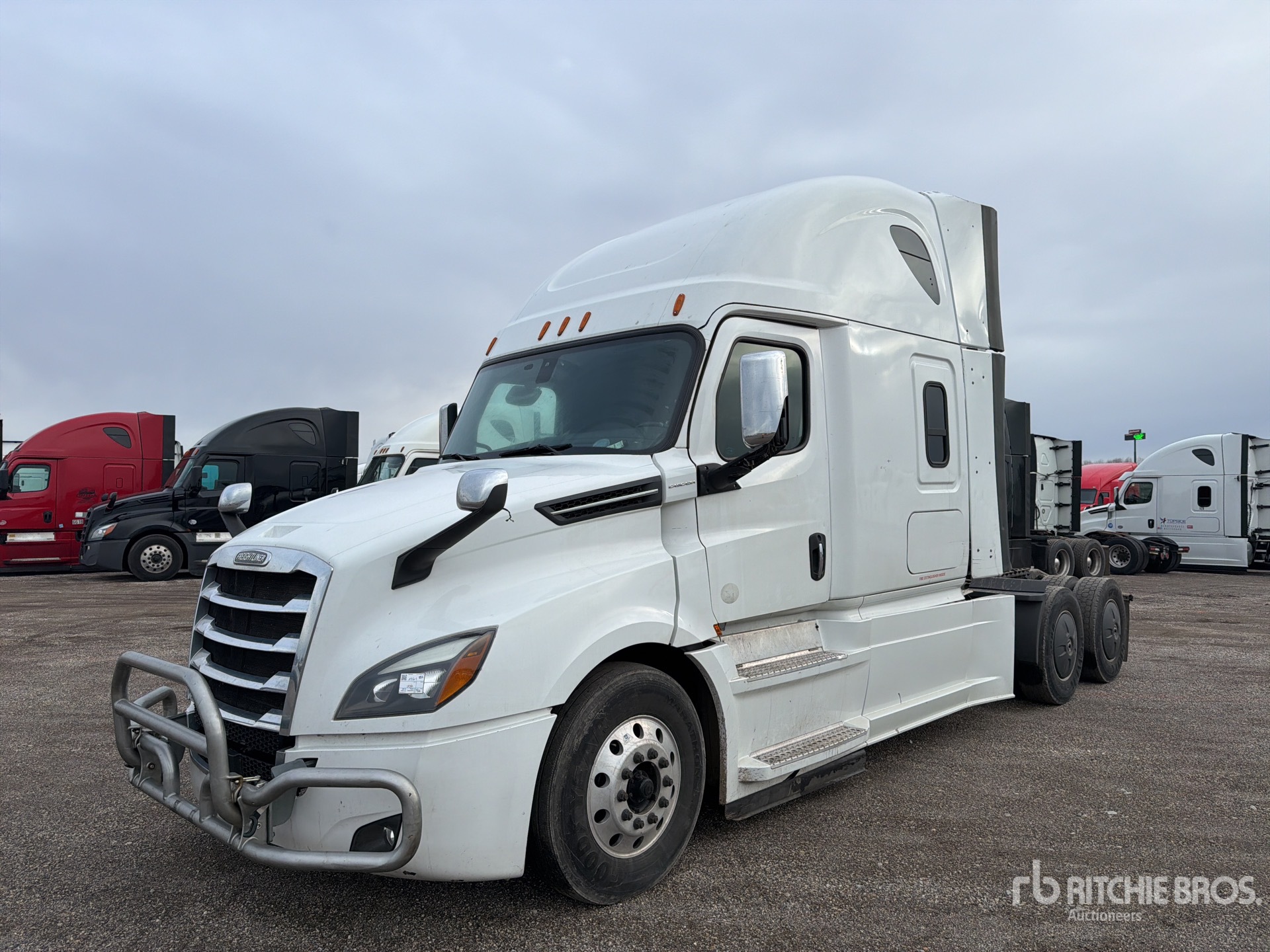 Detroit DD15 505 hp Engine, US EPA Label, 26357.0 Engine hrs, Detroit DT12-1750-OH1 12-Speed Automated Transmission, 12000 lb Front Axle, 40000 lb Rears, 52350 lb GVWR, Engine Brake, Differential Lock, 60 in High Rise Sleeper Cab, Bunk Beds, 231 in Wheelbase, Air Suspension, Aluminum Wheels, 295/75R22.5 Front Tires, 295/75R22.5 Rear Tires, Air Sliding 5th Wheel, Dual Fuel Tanks