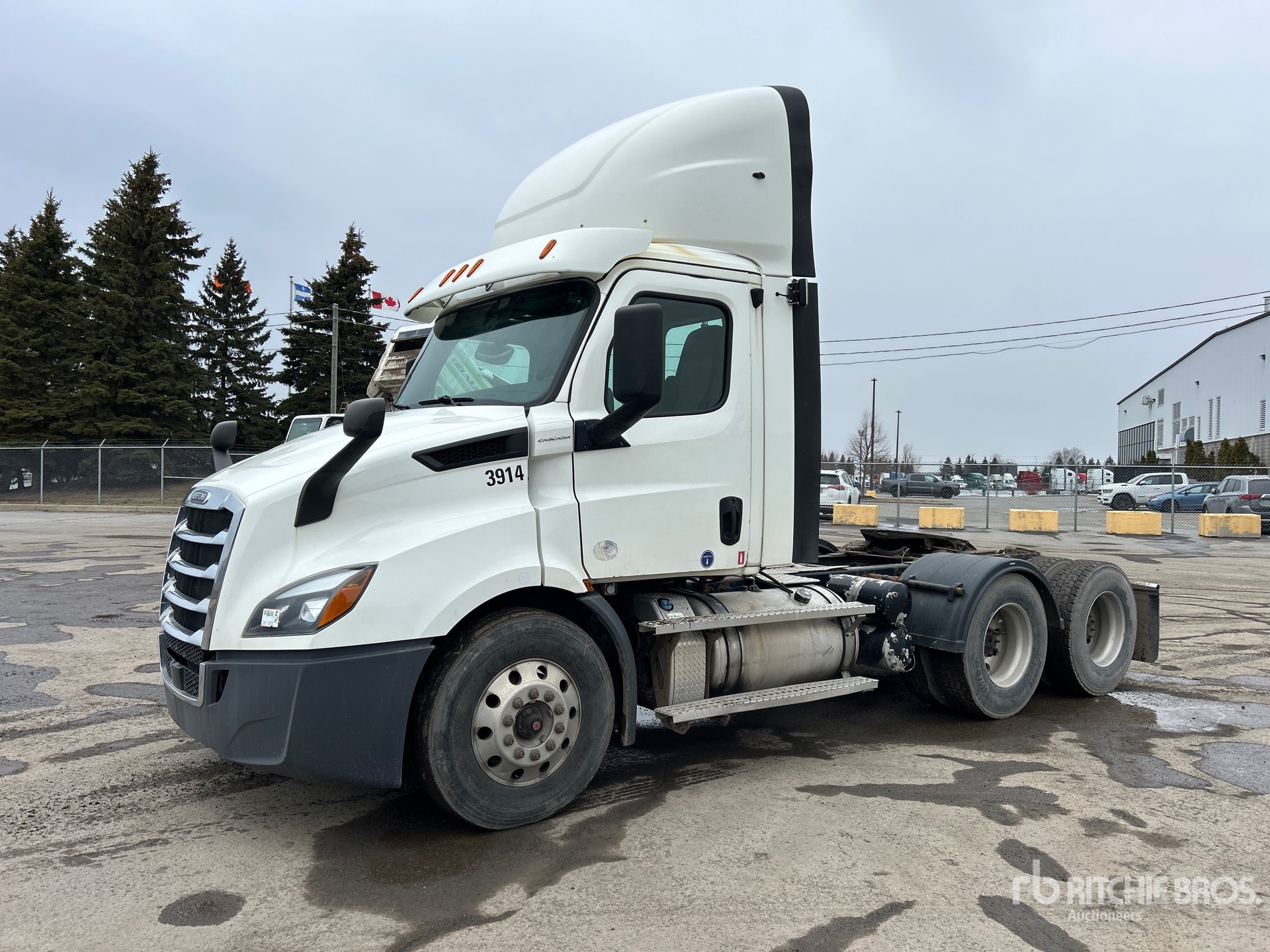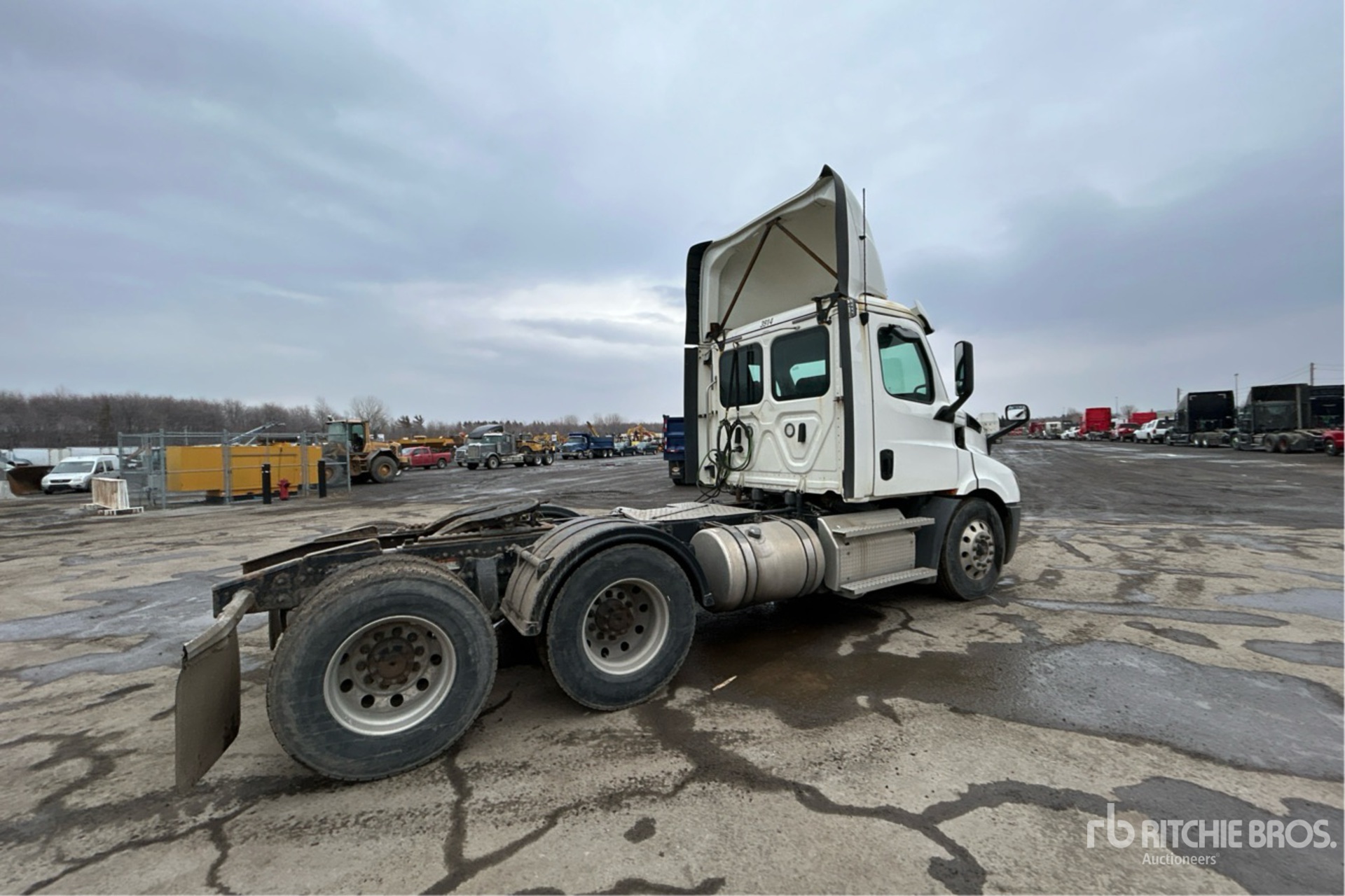 Detroit DD13 450 hp Engine, 12548 Engine hrs, Detroit DT12-1550-OH1 12-Speed Automated Transmission, 12350 lb Front Axle, 40000 lb Rears, 52350 lb GVWR, Engine Brake, Differential Lock, 176 in Wheelbase, Air Suspension, Aluminum Wheels, 11R22.5, Air Sliding 5th Wheel, Dual Fuel Tanks