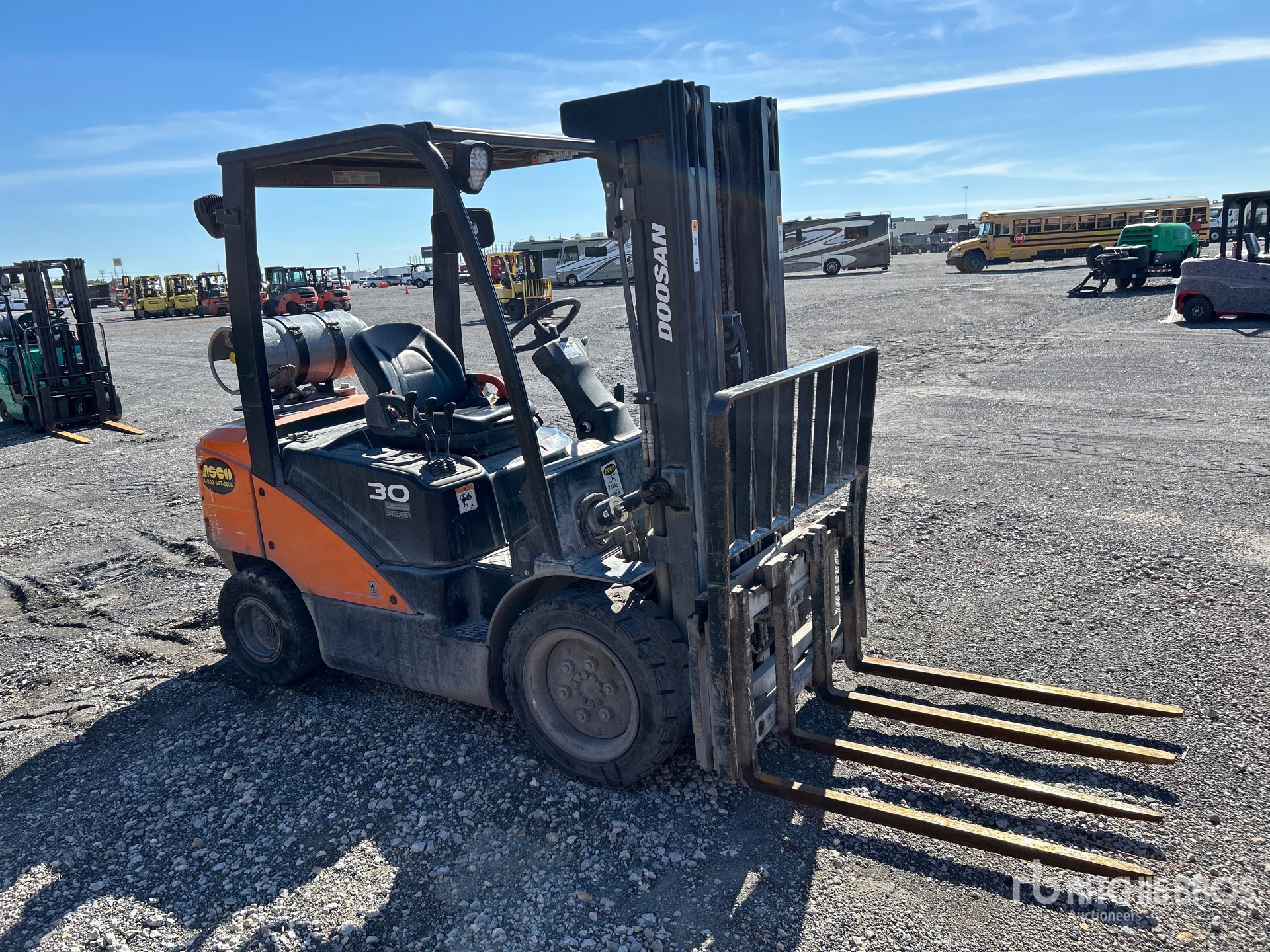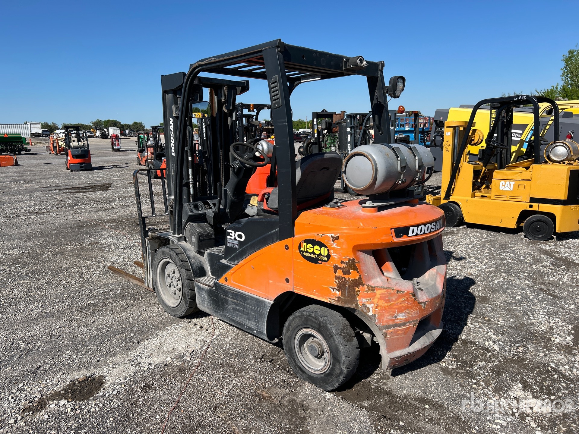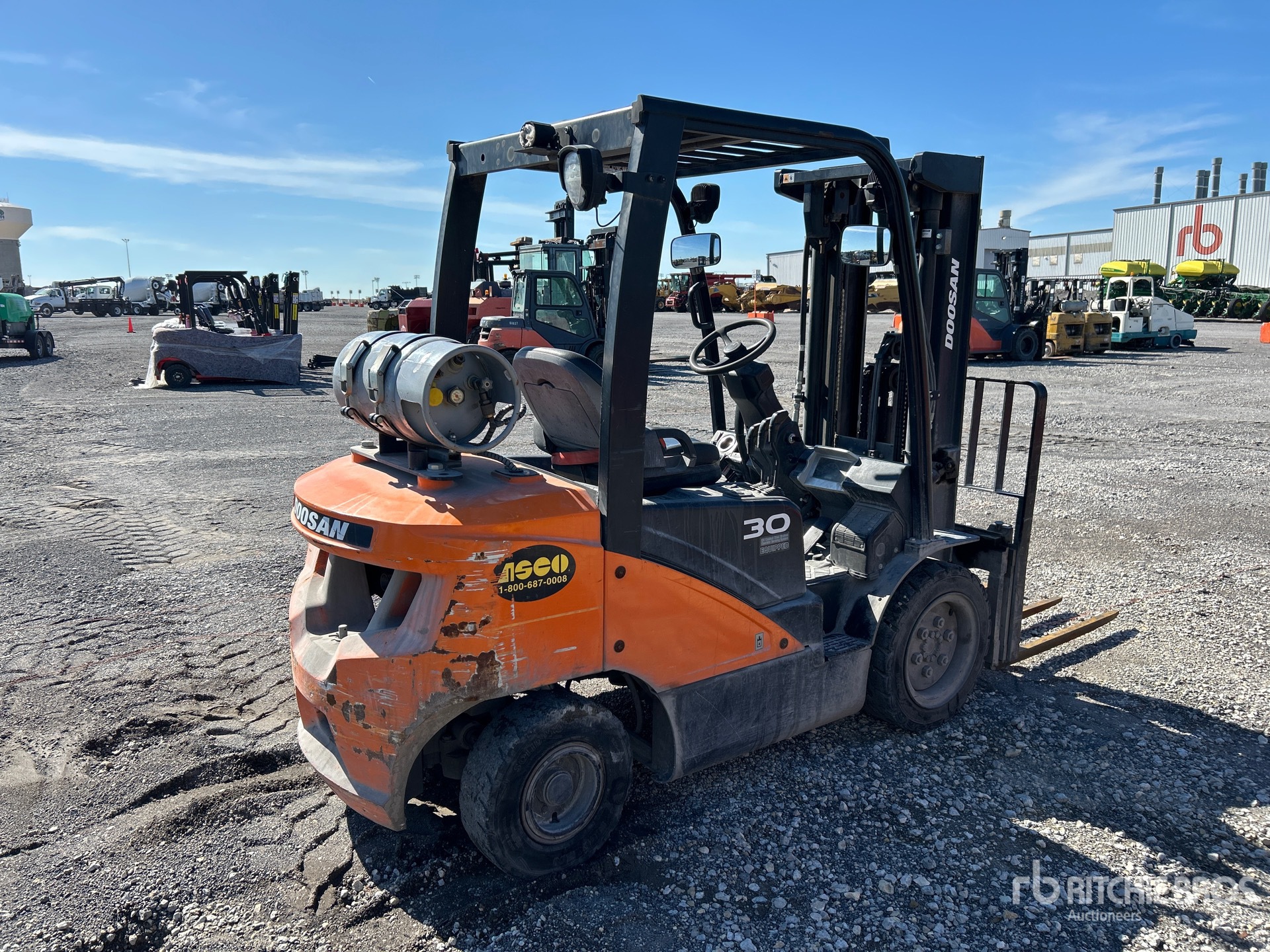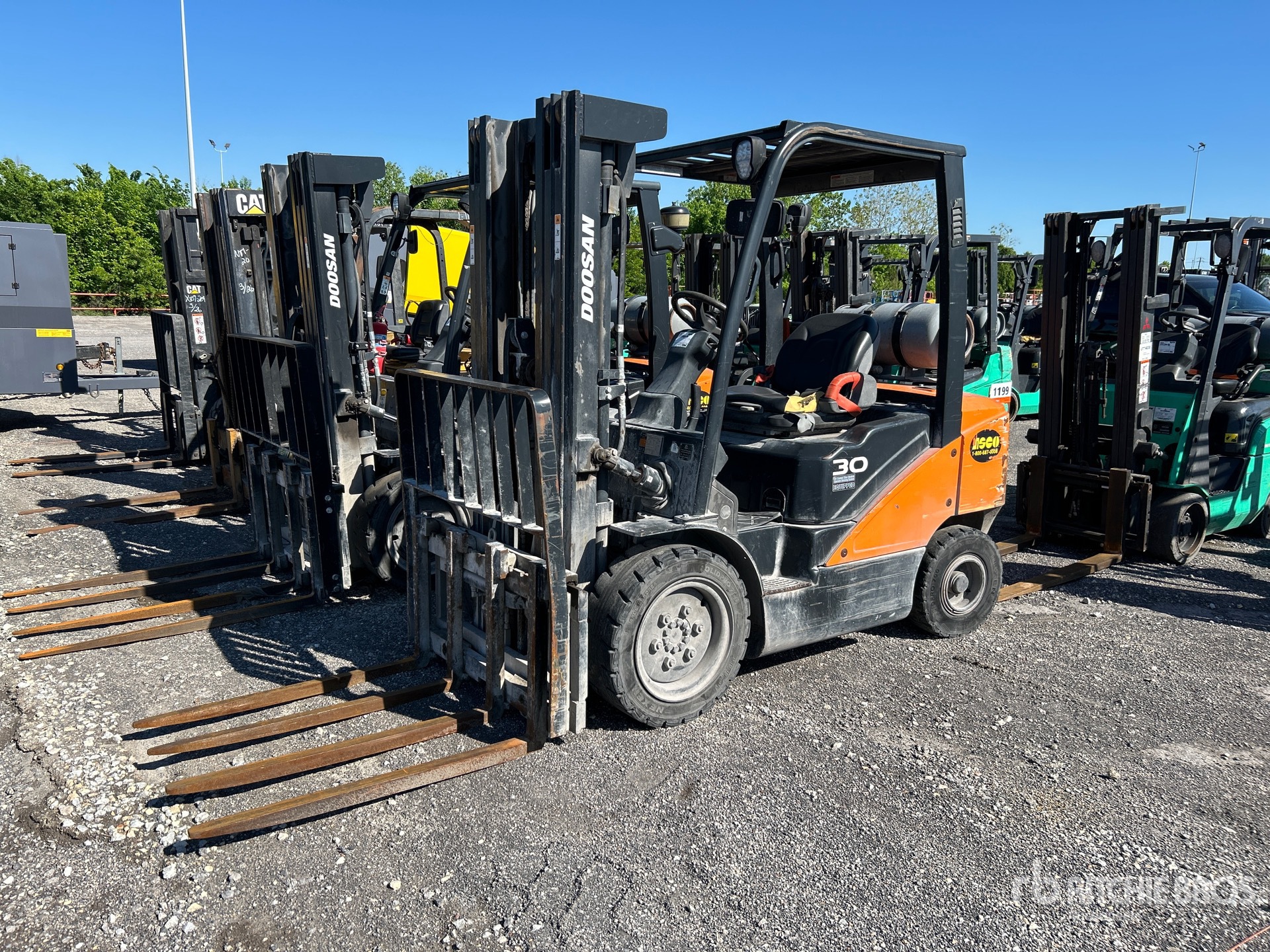 Located in Lane 53, 3 Stage Mast, Full Free Lift, 189 in Max Lift Height, 52 in Lowered Mast Height, 42 in Forks, Side Shift, Block Forks, Solid Pneumatic Tires, 2020 US EPA Label, 4 Cylinder 2.5 L LPG Engine