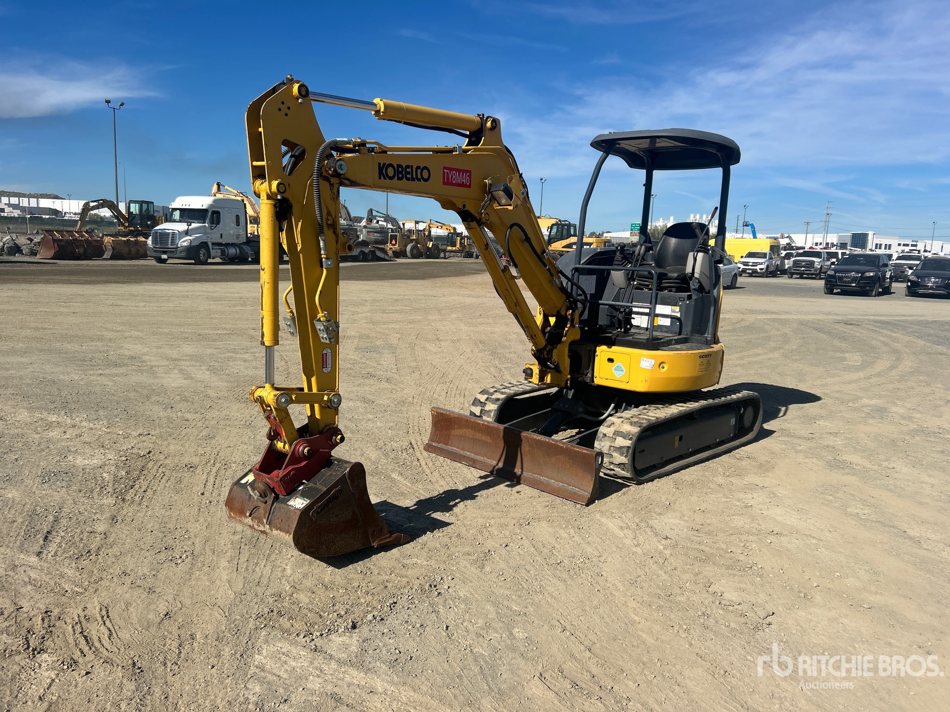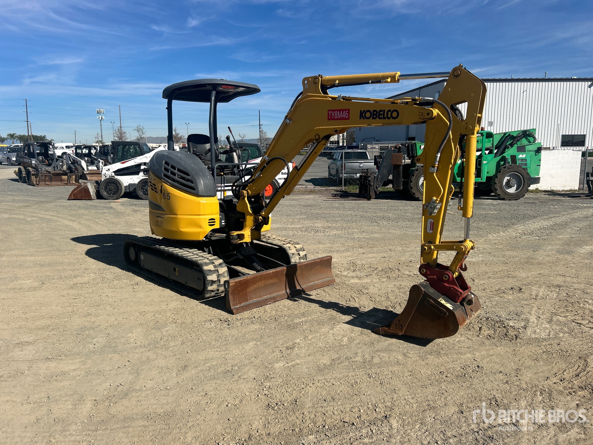 Swing Boom, 4 ft 4 in Stick, Auxiliary Hydraulic Plumbing, Backfill Blade, 12 in Rubber Tracks, Manual Quick Coupler, 24 in Digging Bucket, Thumb Bracket