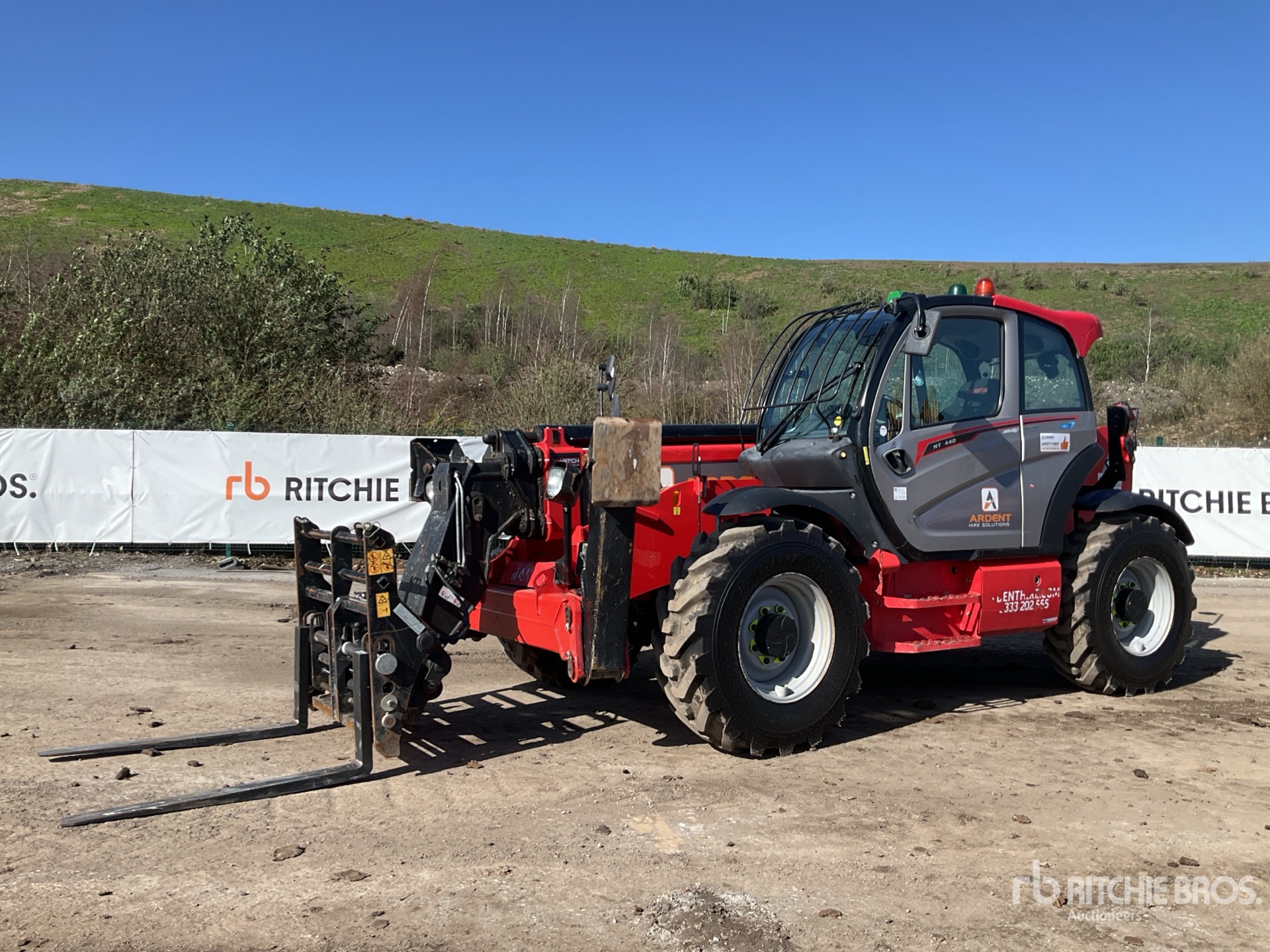 Enclosed Cab, Air Conditioner, Rear View Camera, Load Moment Indicator, 13.55 m Max Lift Height, 4000 kg Max Lift Capacity, 1200 mm Forks, Fork Positioner, Manual Coupler, Outriggers, Frame Leveling, Auxiliary Hydraulic Plumbing, 400/80-24 Tires
