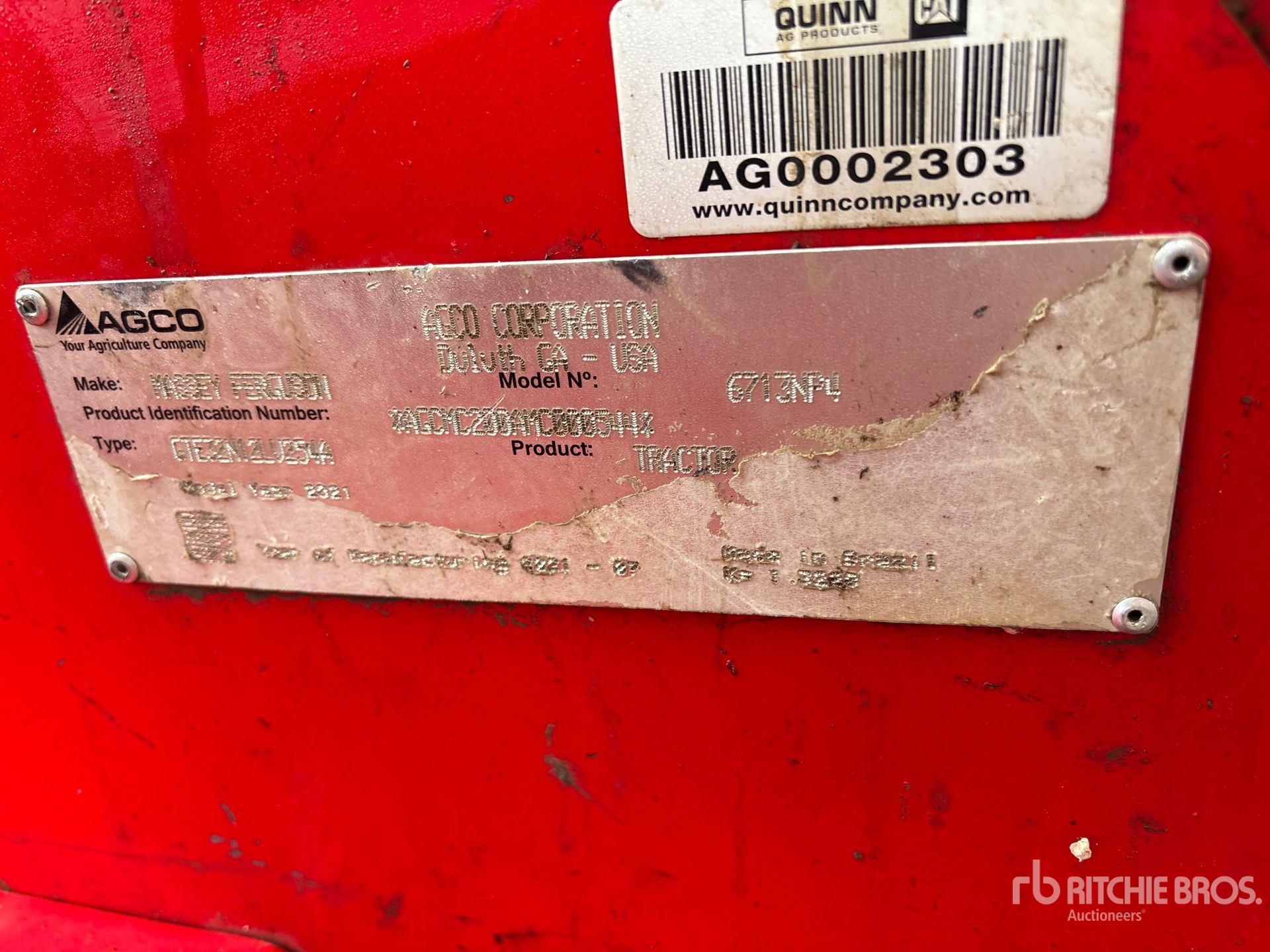 De gedetailleerde informatie over het materieel is beperkt, en Ritchie Bros. Auctioneers heeft geen andere aspecten of onderdelen van het materieel geïnspecteerd dan uitdrukkelijk in dit document vermeld. Tenzij uitdrukkelijk vermeld, geven wij geen verklaringen of garanties, expliciet of impliciet, met betrekking tot het materieel of de onderdelen ervan, met inbegrip van, maar niet beperkt tot, verklaringen of garanties met betrekking tot functionaliteit, conformiteit of naleving van veiligheidsnormen of -vereisten van een toepasselijke autoriteit of regelgevende instantie, geschiktheid voor een bepaald doel of verkoopbaarheid. U wordt ten zeerste aangeraden uw eigen gedetailleerde inspectie van het materieel uit te voeren voordat u een bod plaatst.