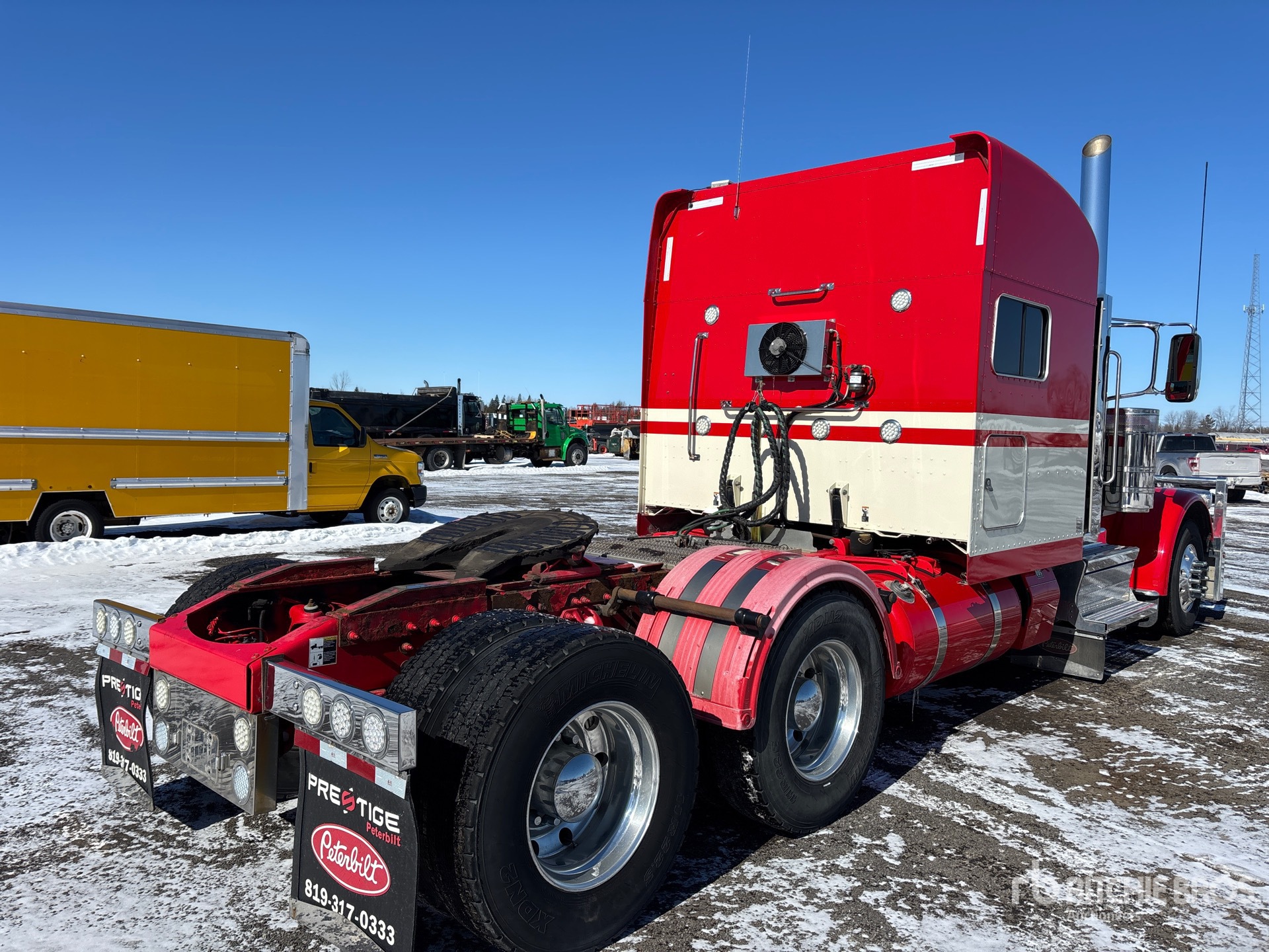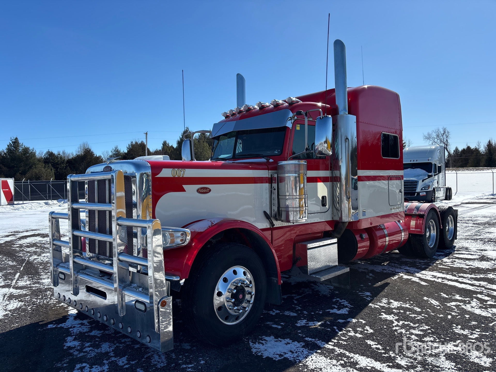 Cummins X15 565 hp Engine, 2020 US EPA Label, 10852 Engine hrs, Eaton Fuller 18-Speed Manual Transmission, 12350 lb Front Axle, 40000 lb Rears, 52350 lb GVWR, Engine Brake, Double Differential Locks, 72 in Mid Roof Sleeper Cab, Bunk Beds, 260 in Wheelbase, Air Suspension, Aluminum Wheels, 11R22.5, Air Sliding 5th Wheel, Dual Fuel Tanks