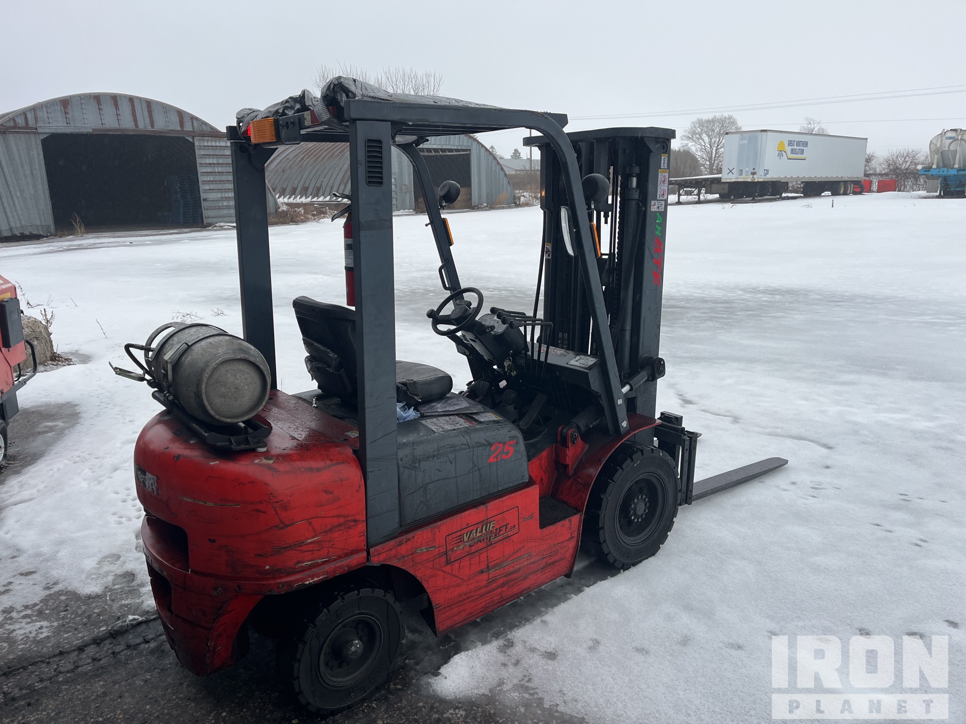 3 Stage Mast, 400 in Max Lift Height, 82.5 in Lowered Mast Height, 48 in Forks, Side Shift, Nissan 4 Cylinder LPG Engine