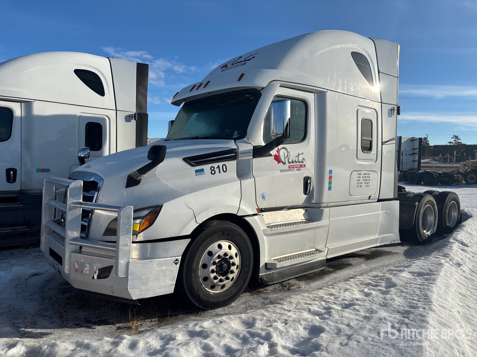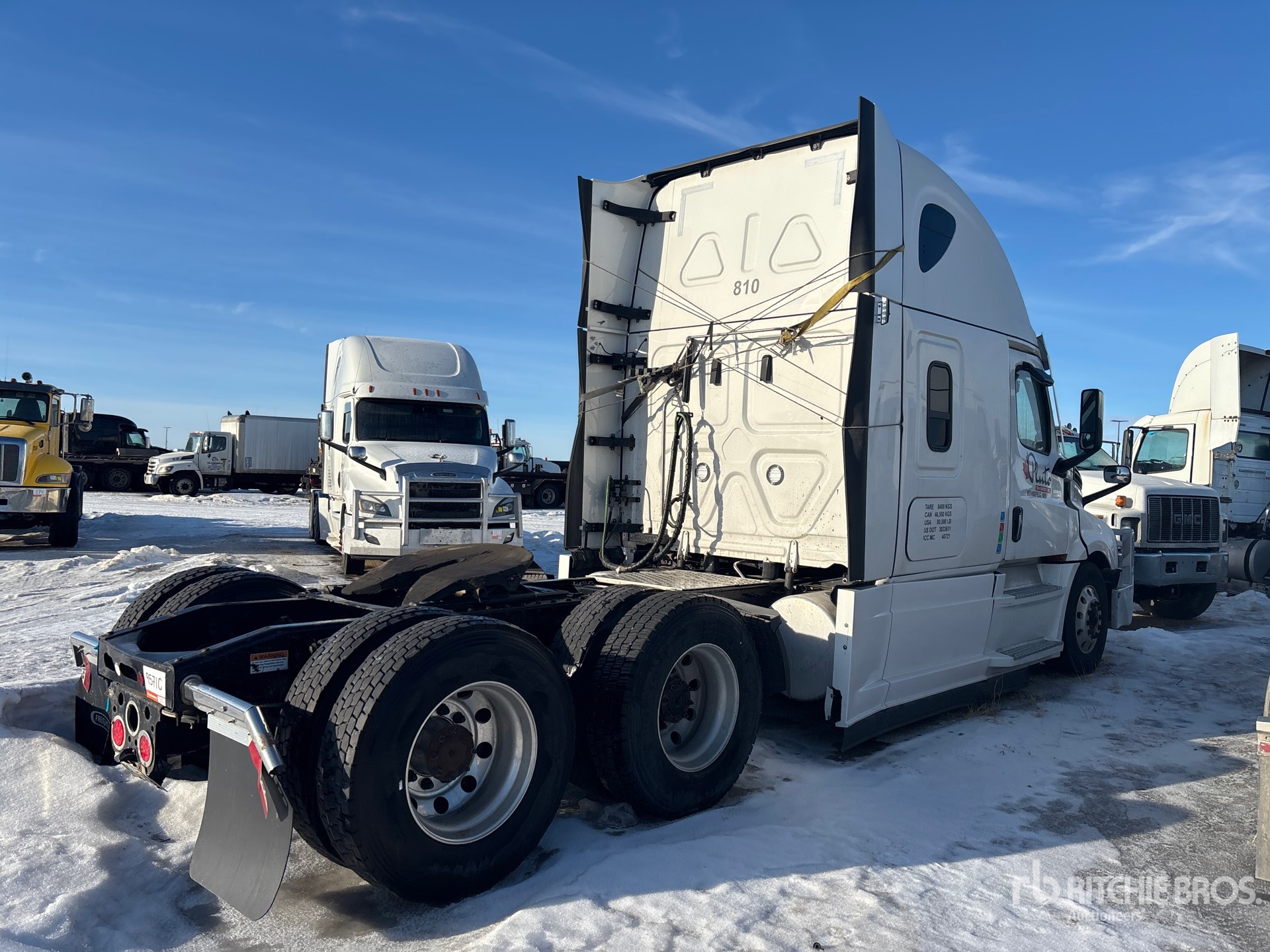 Detroit DD15 505 hp Engine, 2021 US EPA Label, Detroit DT12-1750-OHE 12-Speed Automatic Transmission, 13300 lb Front Axle, Detroit DA-RT-40.0-4S Drive Axles, 2.85:1 Axle Ratio, 40000 lb Rears, 53300 lb GVWR, Engine Brake, Double Differential Locks, 60 in High Rise Sleeper Cab, Bunk Beds, Bunk Heater, 233 in Wheelbase, Air Suspension, Aluminum Wheels, 11R22.5, Air Sliding 5th Wheel, Dual Fuel Tanks