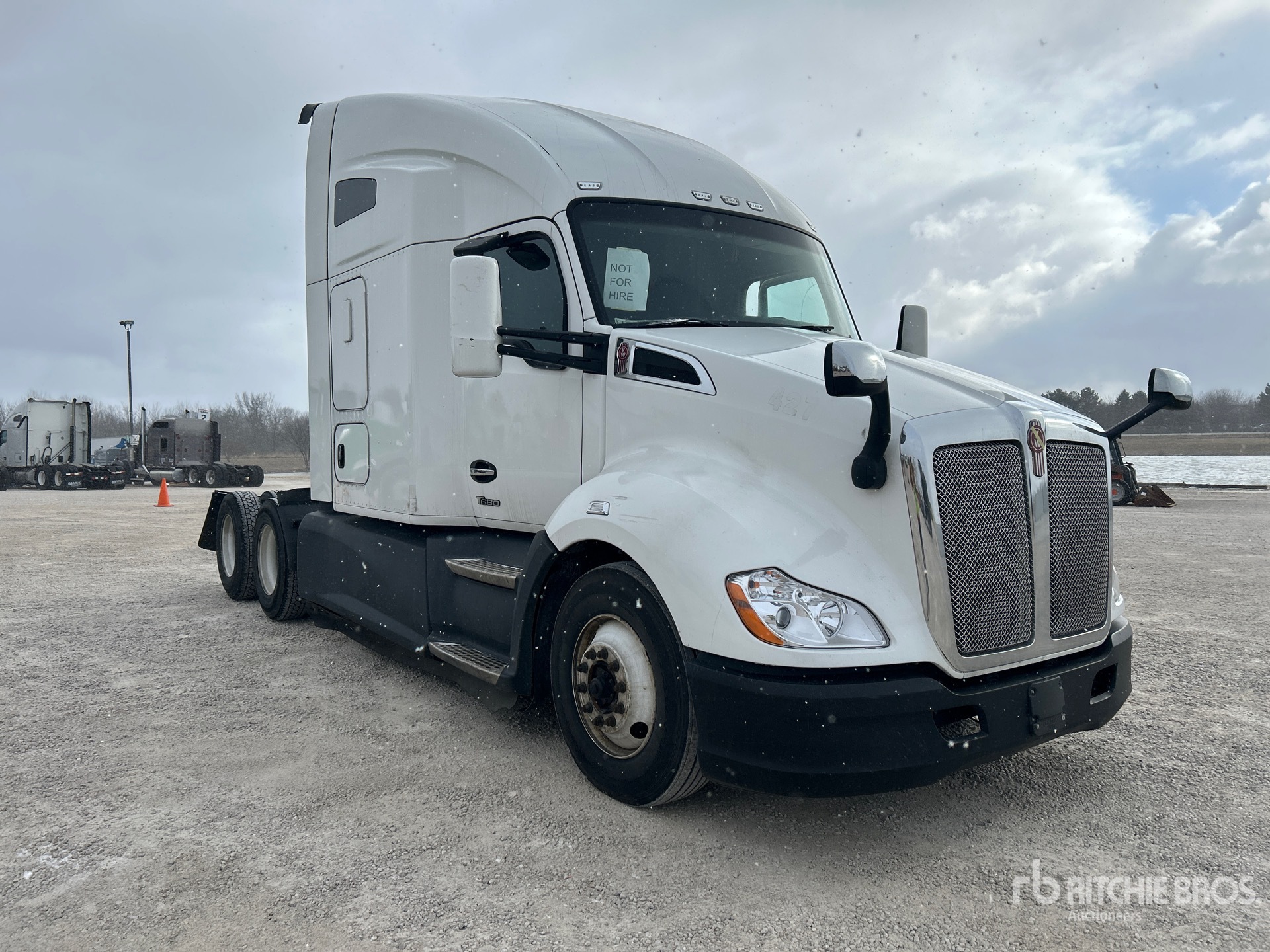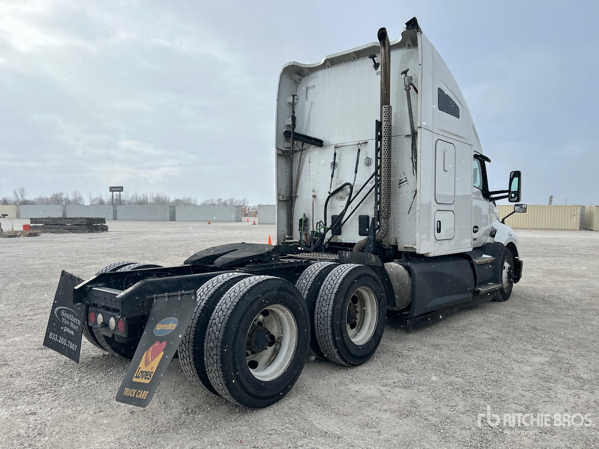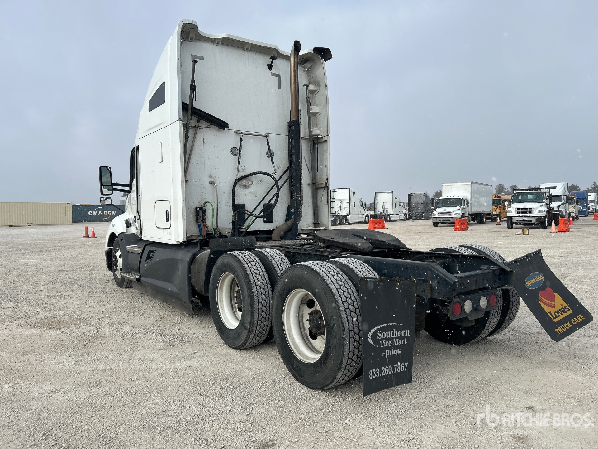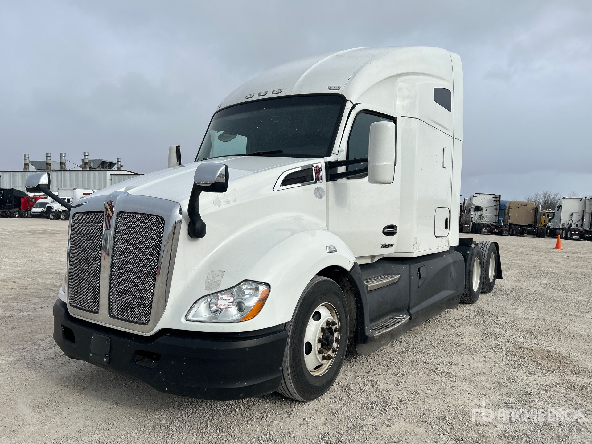 Located in Lane 19 Spot 25, Paccar MX-13 456 hp Engine, 2021 US EPA Label, 18662 Engine hrs, Paccar Automated Transmission, 12350 lb Front Axle, 40000 lb Rears, 52350 lb GVWR, Engine Brake, 52 in High Rise Sleeper Cab, Bunk Beds, 223 in Wheelbase, Air Suspension, Aluminum Wheels, 295/75R22.5 Front Tires, 275/80R22.5 Rear Tires, Air Sliding 5th Wheel, Dual Fuel Tanks