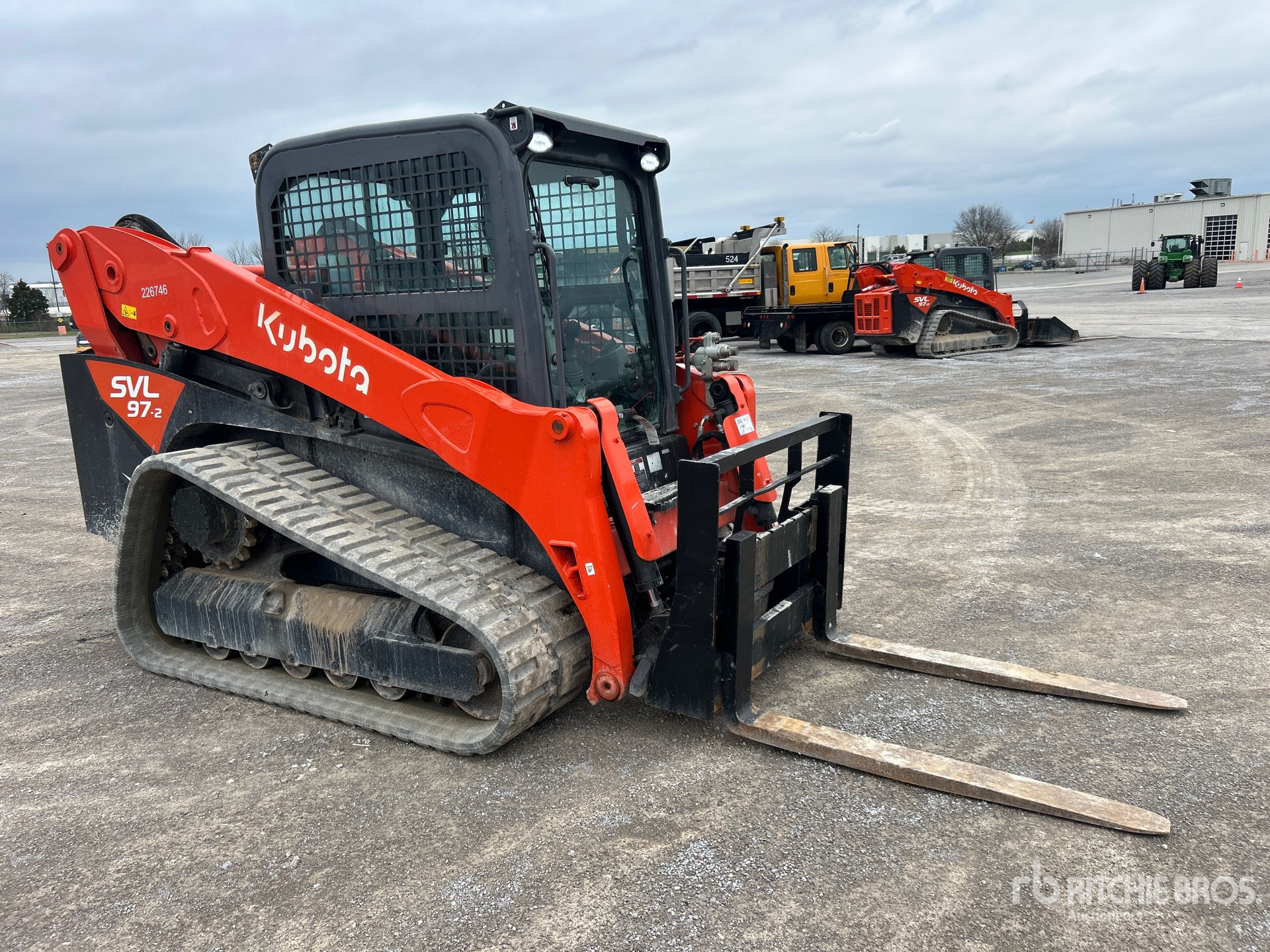 Enclosed Cab, Air Conditioner, Joystick Steering, 18 in Track Belts, 9 Pin Electric Kit, Hydraulic Coupler, Forks