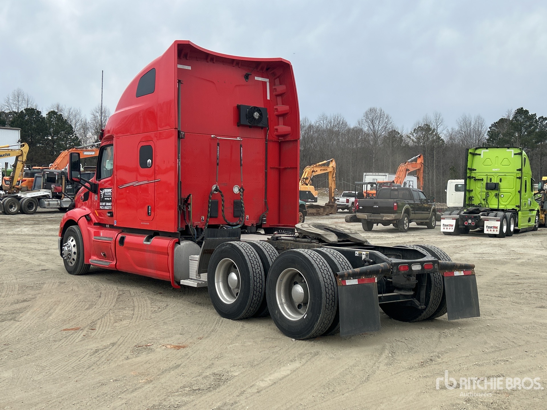 Cummins X15 450 hp Engine, 2021 US EPA Label, 9825.4 Engine hrs, Automated Transmission, 13200 lb Front Axle, 38000 lb Rears, 51200 lb GVWR, Engine Brake, 78 in High Rise Sleeper Cab, Bunk Beds, Thermo King Sleeper Air Conditioner, 242 in Wheelbase, Air Suspension, Aluminum Wheels, 295/75R22.5, Air Sliding 5th Wheel, Dual Fuel Tanks