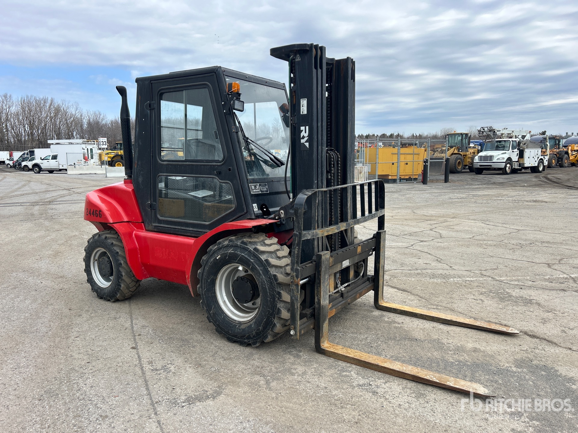Enclosed Cab, 3 Stage Mast, 185 in Max Lift Height, 93 in Lowered Mast Height, 48 in Forks, Side Shift, 2022 US EPA Label, 4 Cylinder 36 kW Diesel Engine