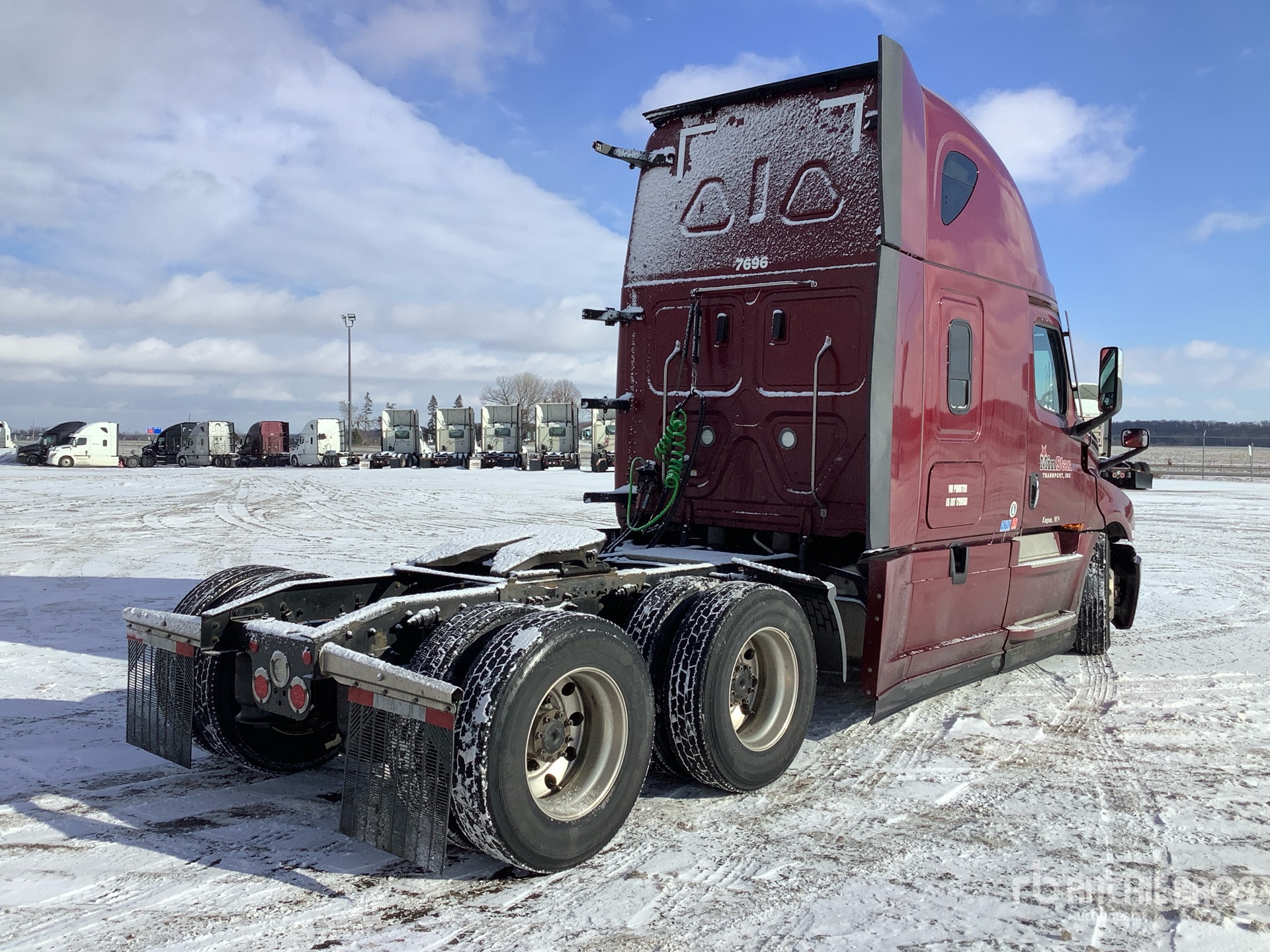 Located in Lane 6 Spot 38, Detroit DD15 475 hp Engine, 2022 US EPA Label, 12184 Engine hrs, Detroit DT12-1650-OHE 12-Speed Automated Transmission, 12500 lb Front Axle, 40000 lb Rears, 52500 lb GVWR, Engine Brake, 70 in High Rise Sleeper Cab, Bunk Beds, Bunk Heater, 223 in Wheelbase, Air Suspension, Aluminum Outer Wheels, 275/80R22.5, Air Sliding 5th Wheel, Dual Fuel Tanks