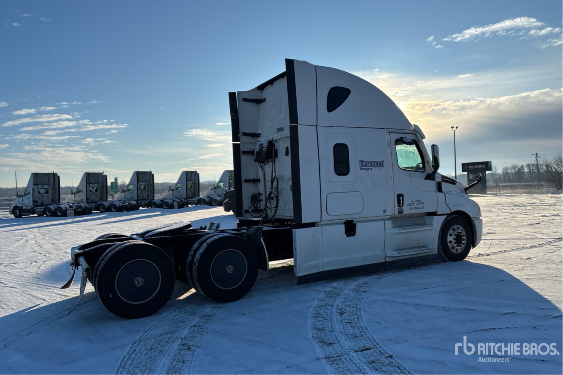 Located in Lane 6 Spot 49, Detroit DD15 505 hp Engine, 2022 US EPA Label, 12051 Engine hrs, Detroit DT12-1650-OHE 12-Speed Automated Transmission, 12500 lb Front Axle, 40000 lb Rears, 52500 lb GVWR, Engine Brake, 70 in High Rise Sleeper Cab, Bunk Beds, 229 in Wheelbase, Air Suspension, Aluminum Wheels, 295/75R22.5, Air Sliding 5th Wheel, Dual Fuel Tanks