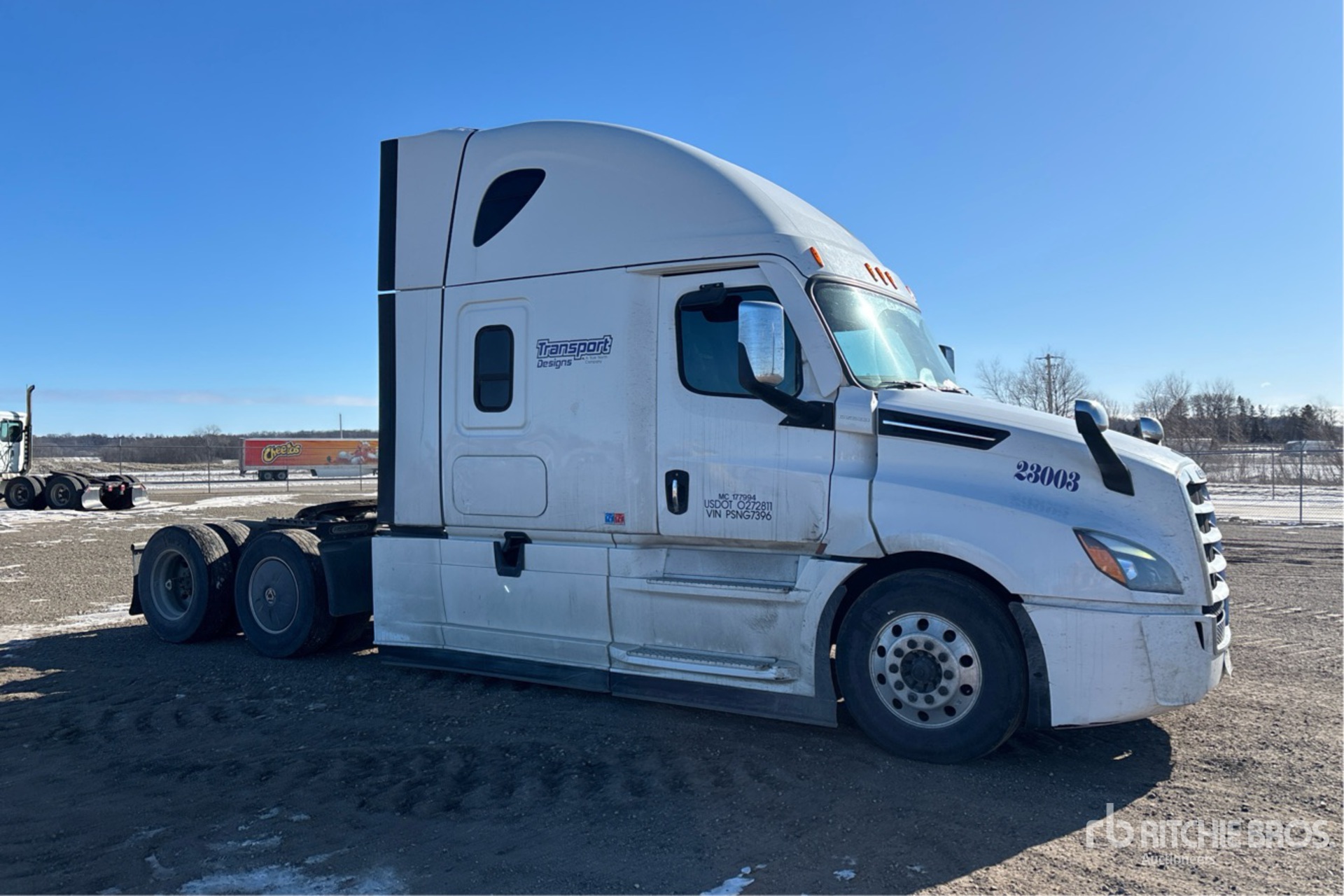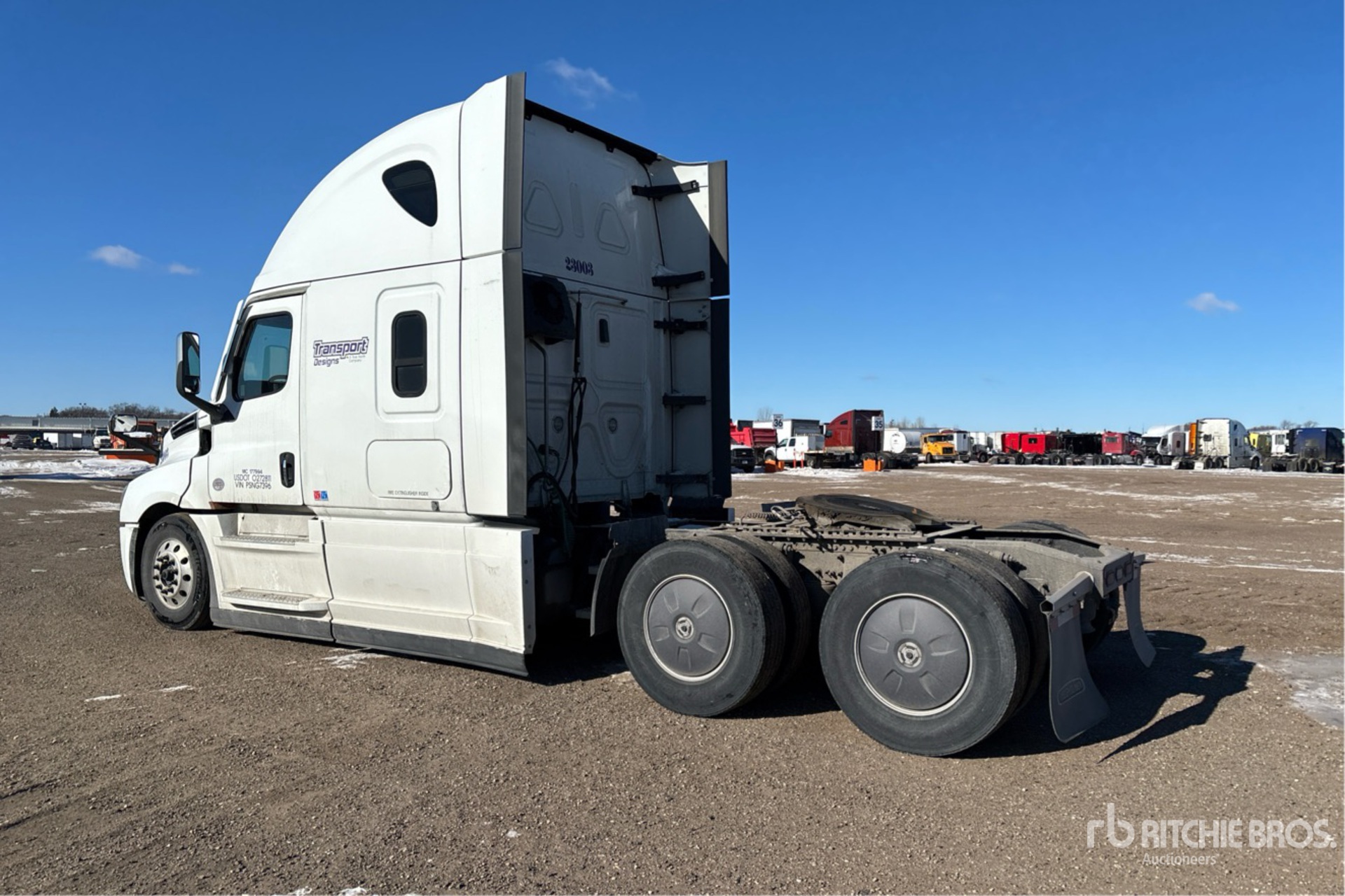 Located in Lane 26 Spot 59, Detroit DD15 505 hp Engine, 2022 US EPA Label, 9069 Engine hrs, Detroit DT12-1650-OHE 12-Speed Automated Transmission, 12500 lb Front Axle, 40000 lb Rears, 52500 lb GVWR, Engine Brake, 70 in High Rise Sleeper Cab, Bunk Beds, Bunk Heater, 223 in Wheelbase, Air Suspension, Aluminum Outer Wheels, 295/75R22.5, Air Sliding 5th Wheel, Dual Fuel Tanks