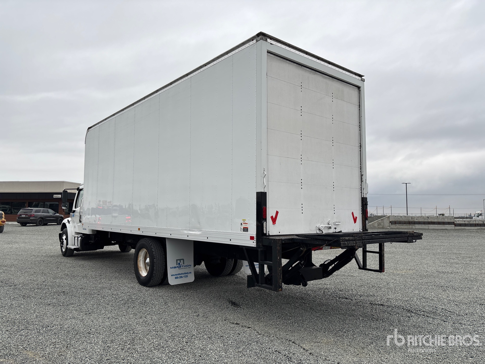 Located in Lane 14 Spot 12, Cummins ISB 6 Cylinder 6.7 L Diesel Engine, 2022 US EPA Label, Requires Diesel Exhaust Fluid, Engine Brake, 10000 lb Front Axle, 19000 lb Rears, 26000 lb GVWR, 34 in Sleeper Cab, Aluminum Wheels, 11R22.5, Air Ride Suspension, 262 in Wheelbase, Marathon 24 ft x 96 in Wide x 108 in High Body, Liftgate