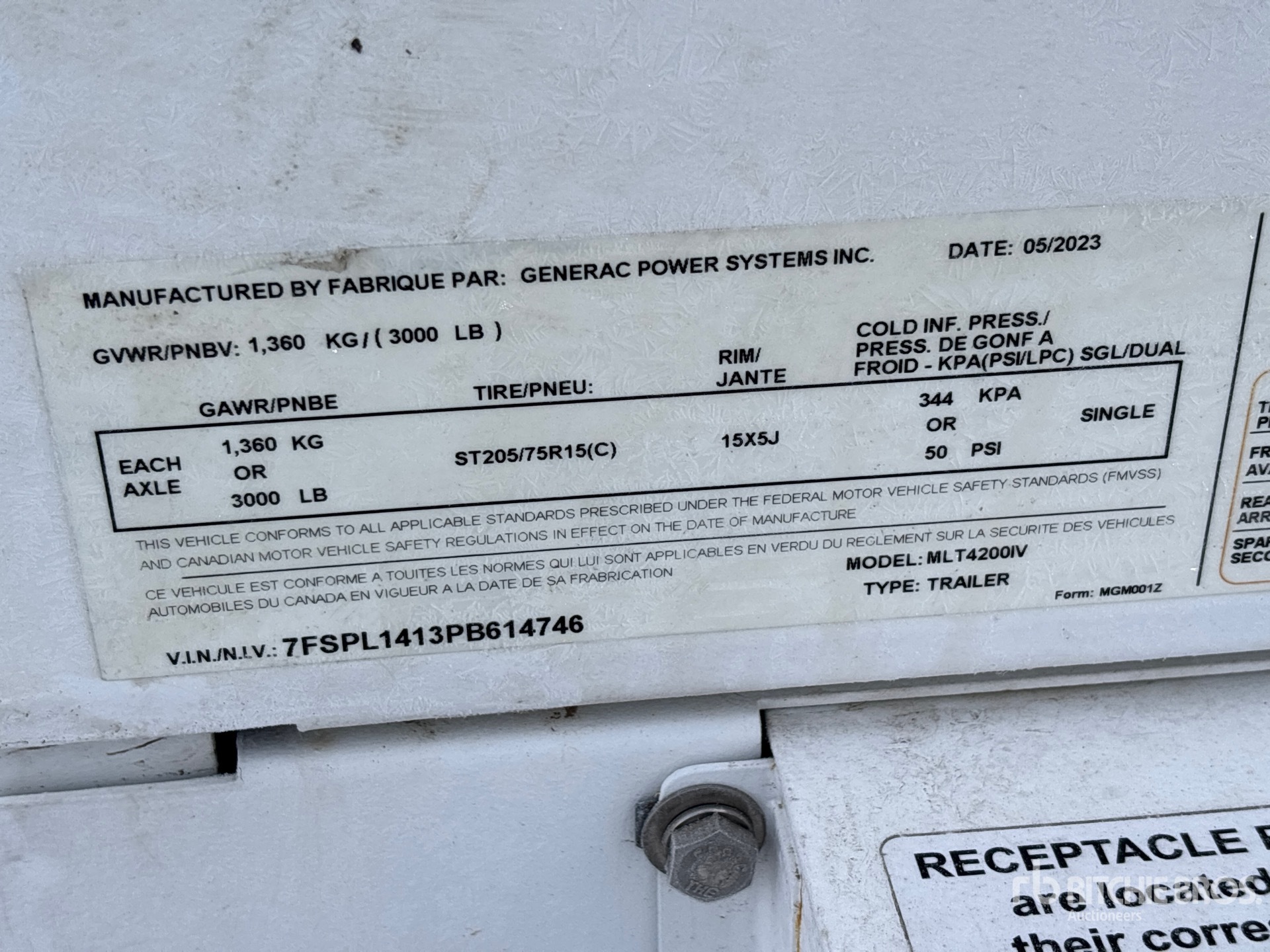 US EPA Label, Isuzu 4 Cylinder Diesel Engine, 4 Lamps, LED Lighting, Power Receptacles, Electric Winch Raise and Lower, Lunette Ring Carrier Trailer