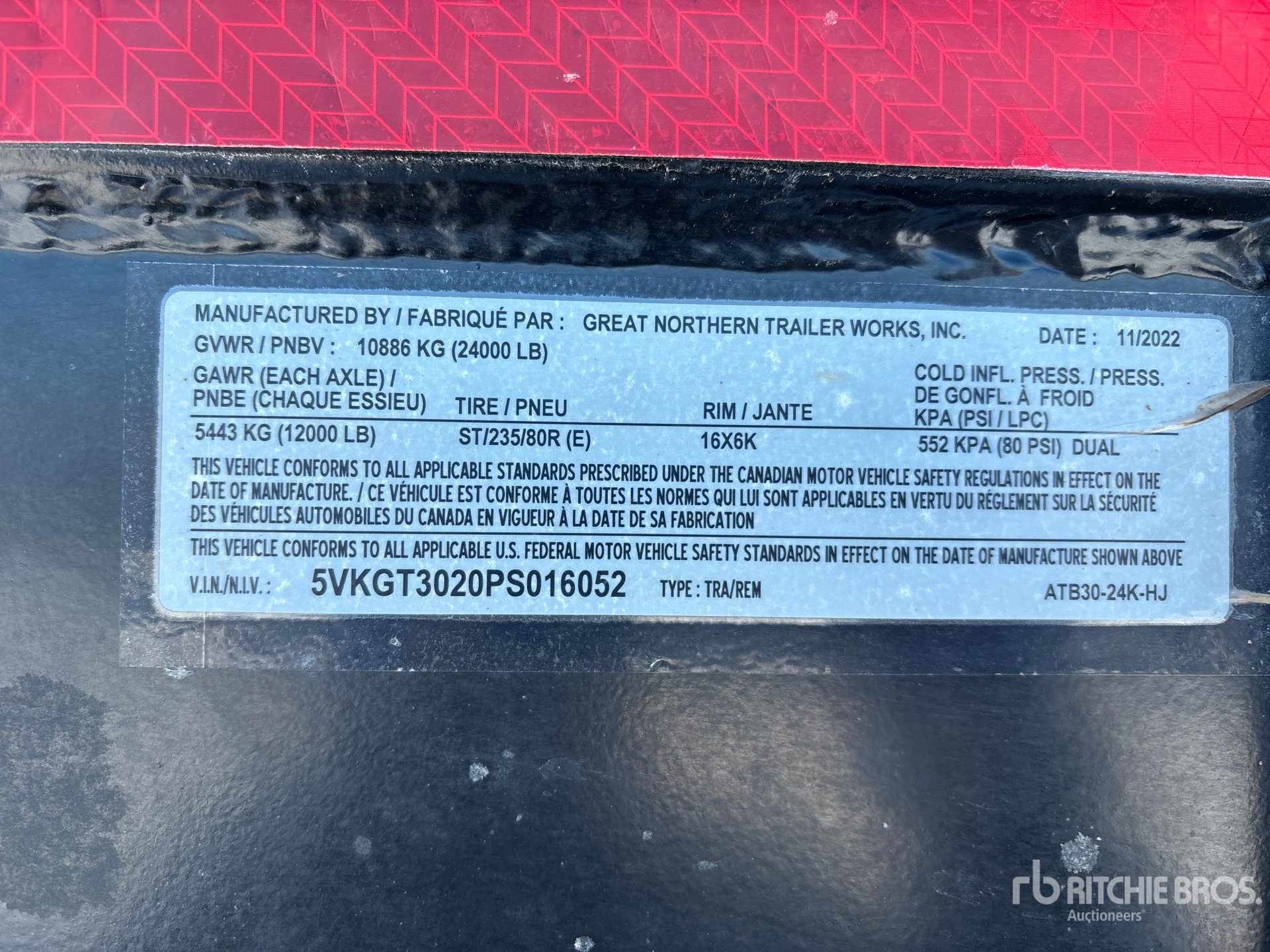 Spring Suspension, Electric Brakes, Storage Compartments, Winch, Deck Over Tires, 30 ft Deck Tilting Length, 97 in Deck Width, 235/85R16 Tires, 24000 lb GVWR, Complete-Retirement-Dispersal-for-Mur-Cal-Services-Ltd