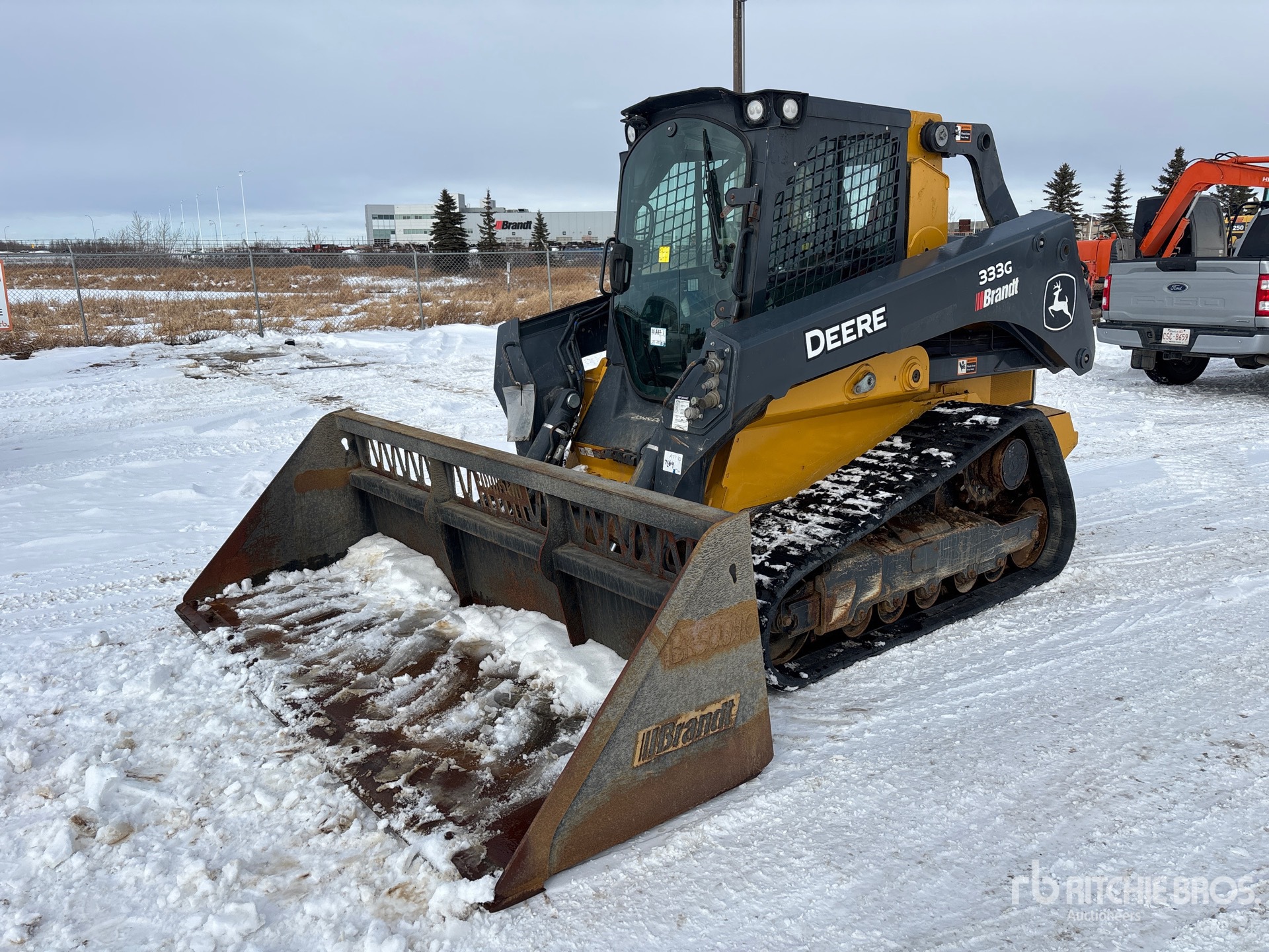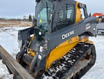 Located in Lane 61 Spot 4, Enclosed Cab, Air Conditioner, Ride Control, Joystick Steering, Control Pattern Changer, Rear View Camera, Requires Diesel Exhaust Fluid, 17.75 in Track Belts, Electric Coupler, 108 in Bucket