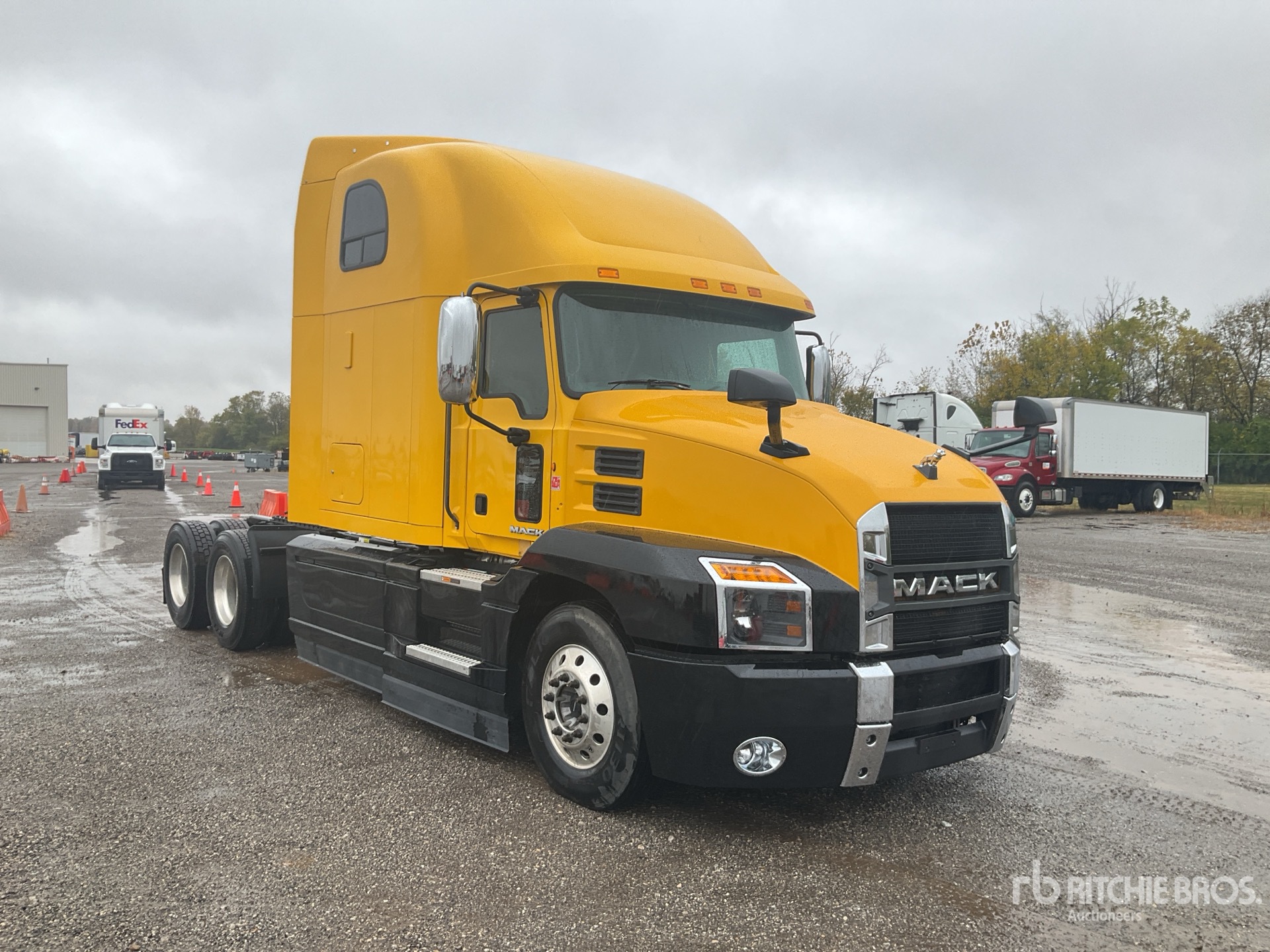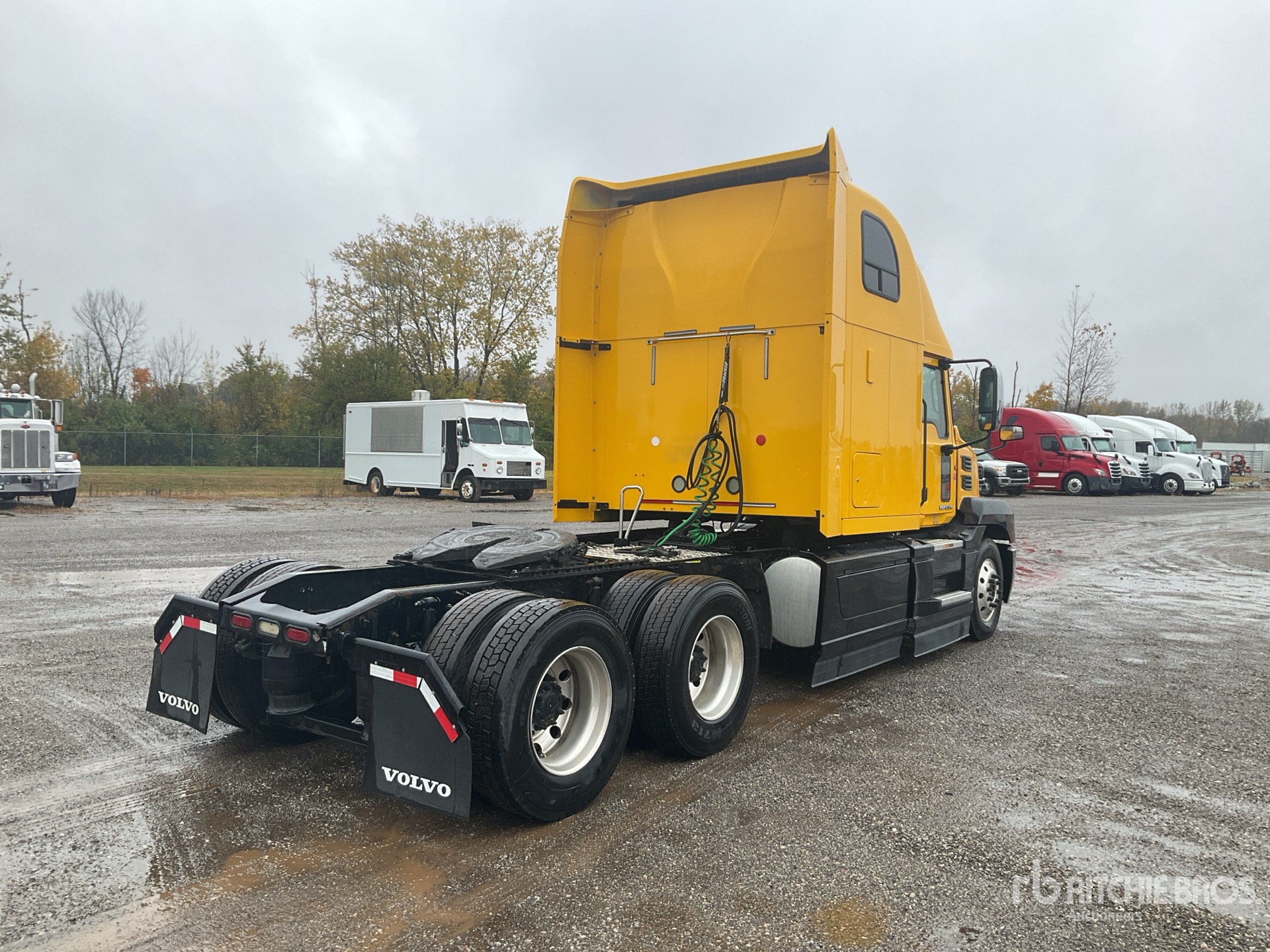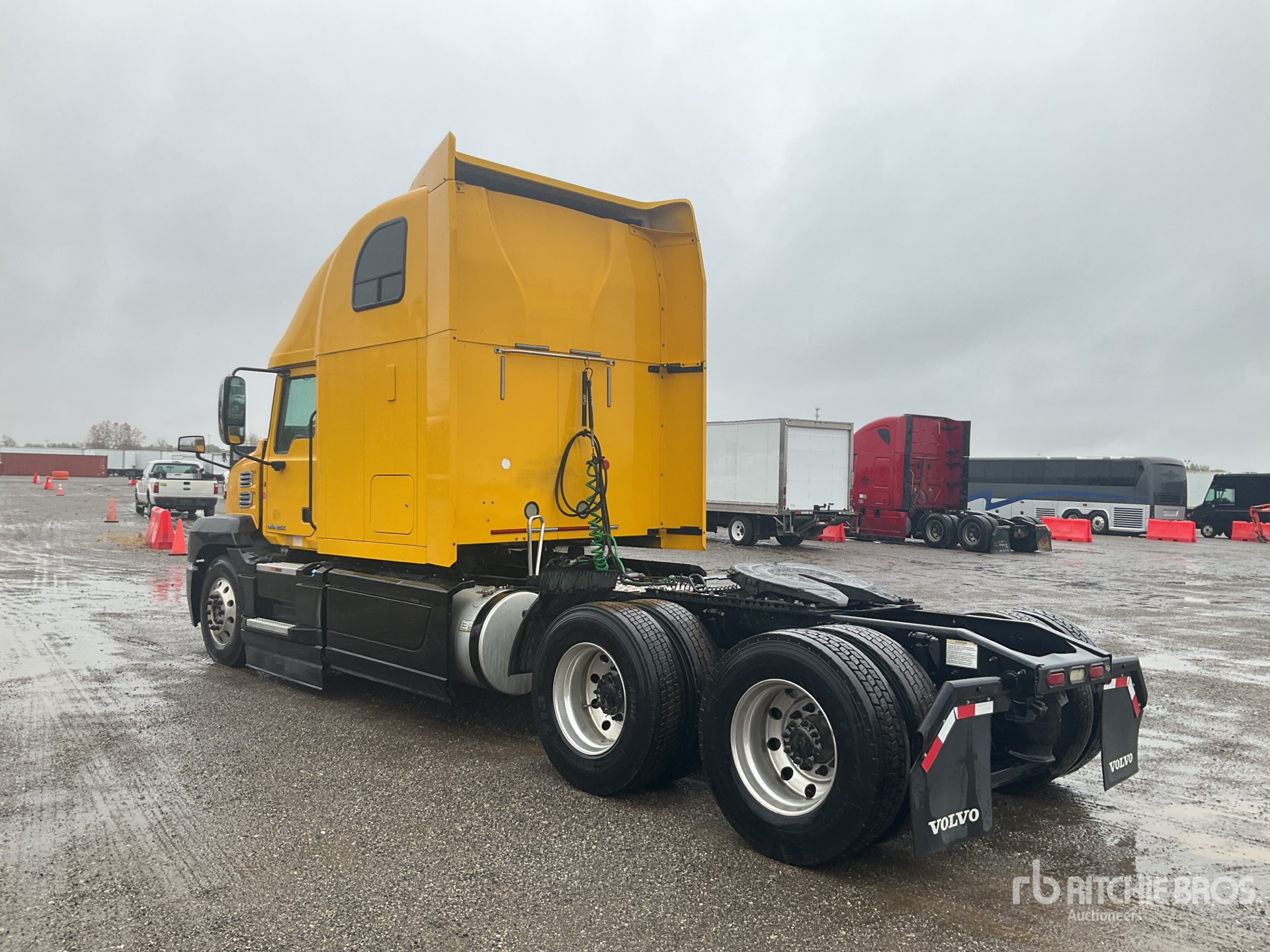 Mack MP8 445 hp Engine, 2819 Engine hrs, Mack mDRIVE Automated Transmission, 13200 lb Front Axle, 40000 lb Rears, 53200 lb GVWR, Engine Brake, 70 in High Rise Sleeper Cab, Bunk Beds, 222 in Wheelbase, Air Suspension, Aluminum Wheels, 295/75R22.5, Air Sliding 5th Wheel, Dual Fuel Tanks