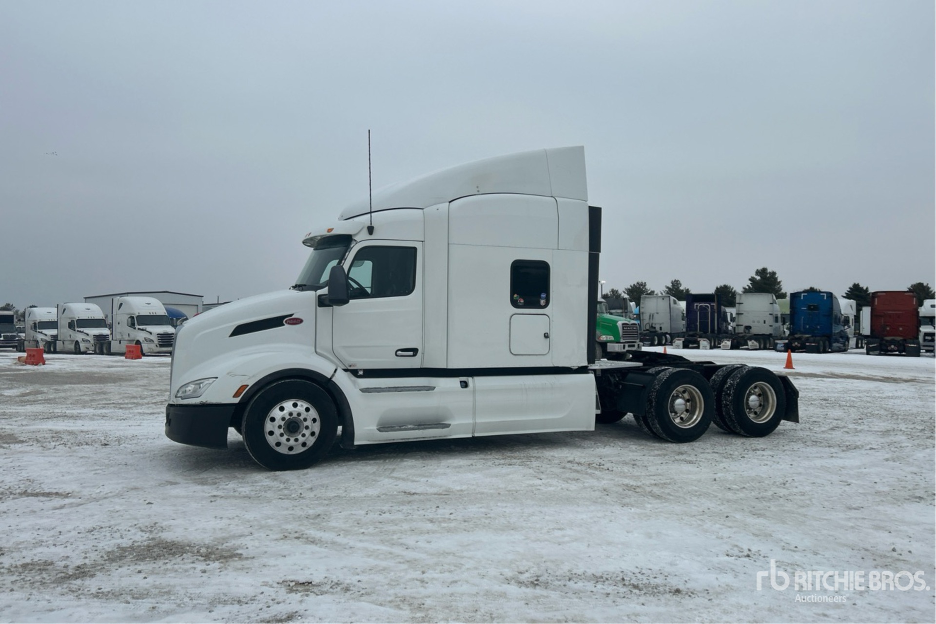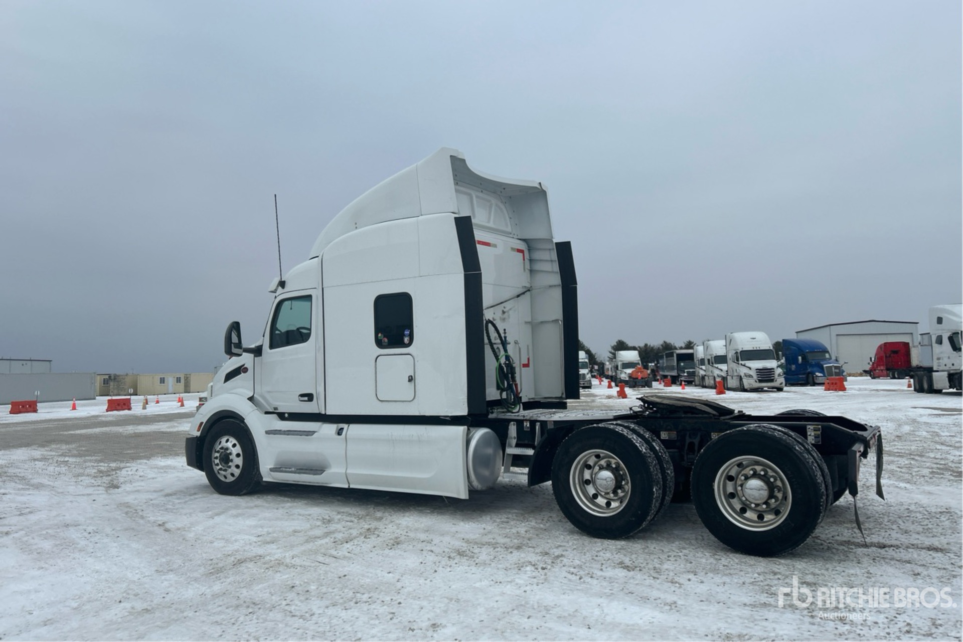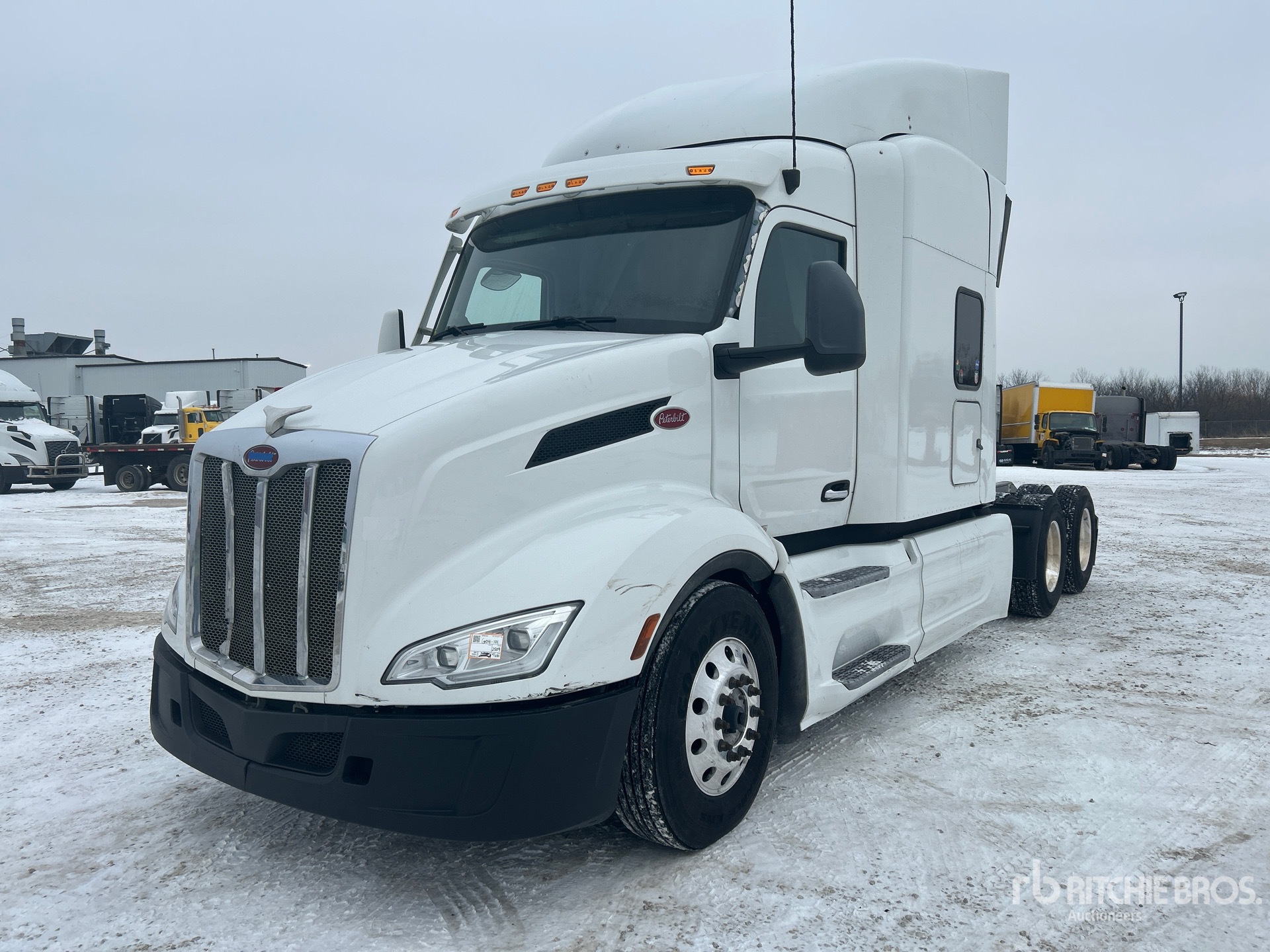 Located in Lane 18 Spot 47, Paccar MX-13 456 hp Engine, 2022 US EPA Label, 12292 Engine hrs, Automated Transmission, 12350 lb Front Axle, 40000 lb Rears, 52350 lb GVWR, Engine Brake, 72 in High Rise Sleeper Cab, Bunk Beds, 234 in Wheelbase, Air Suspension, Aluminum Outer Wheels, 295/75R22.5, Air Sliding 5th Wheel, Dual Fuel Tanks